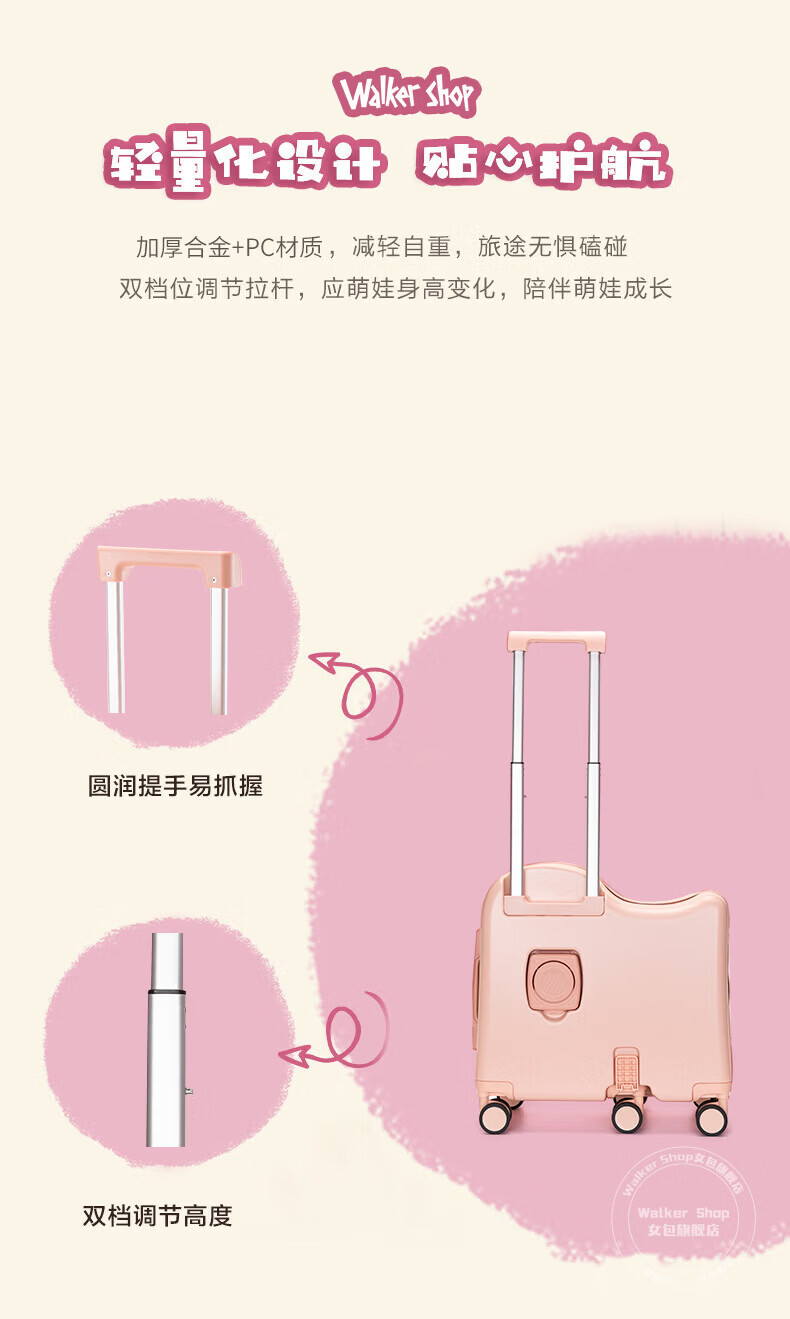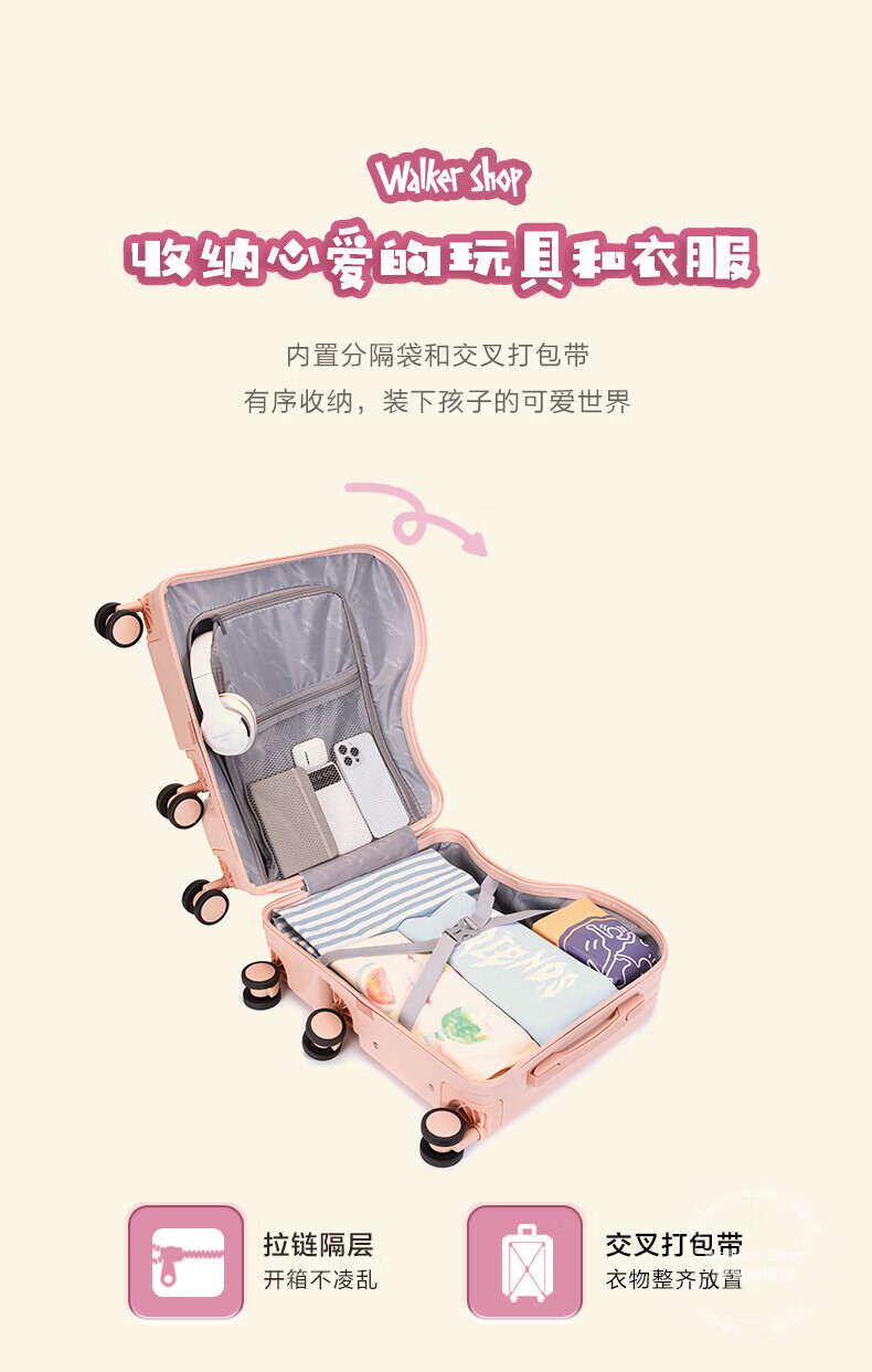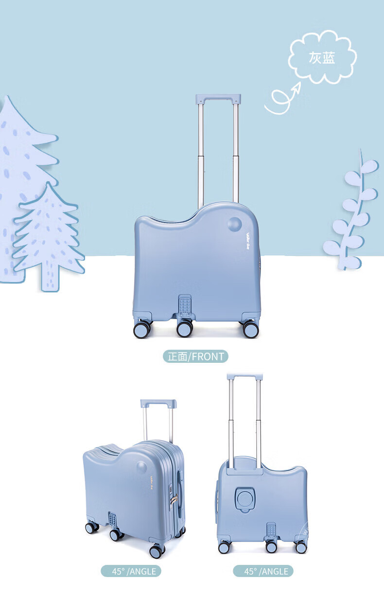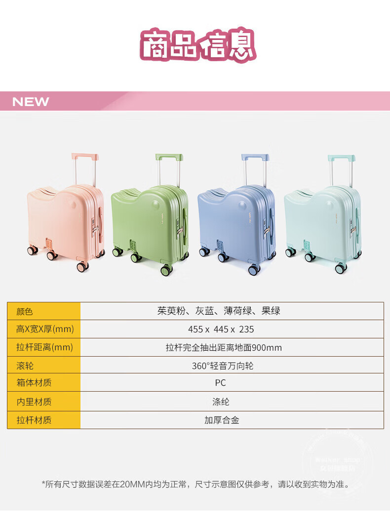 Walker Shop品牌儿童行李箱可坐可骑6-12岁轻便小型登机箱拉杆箱男女旅行箱 果绿 18英寸 【可登机】