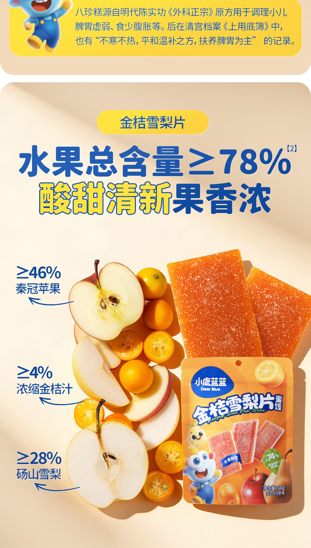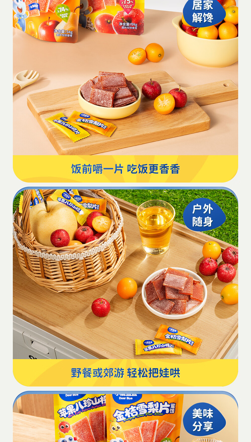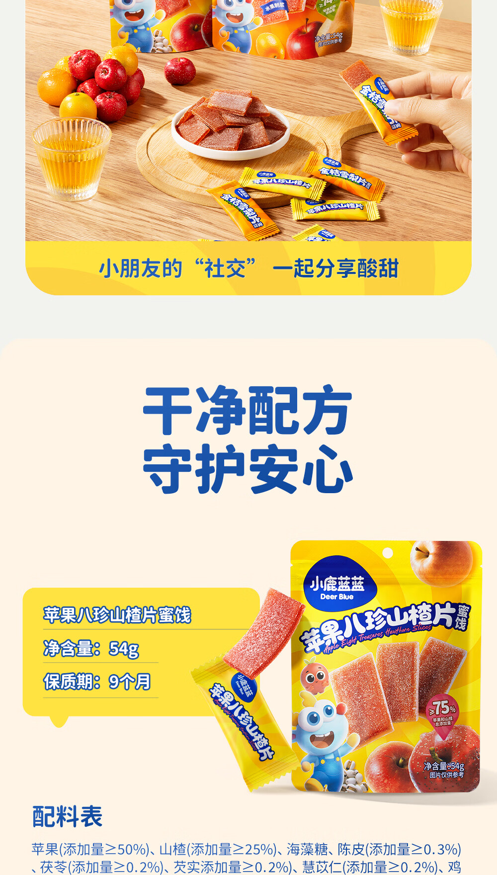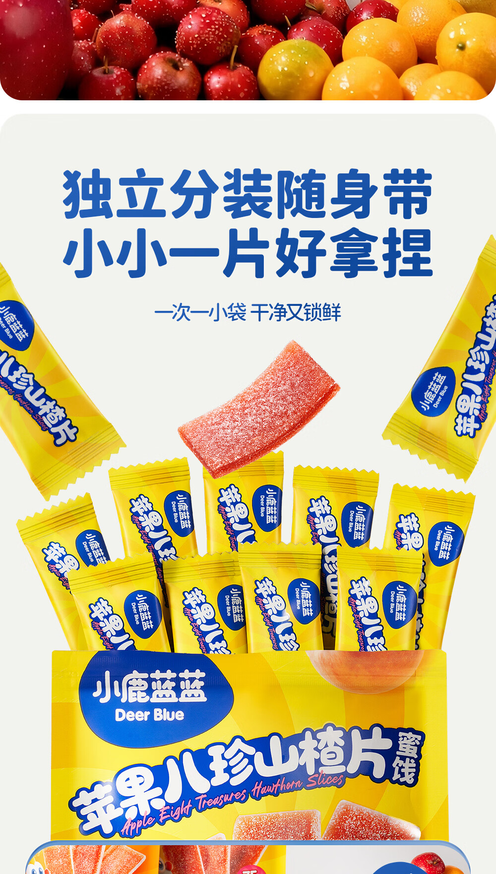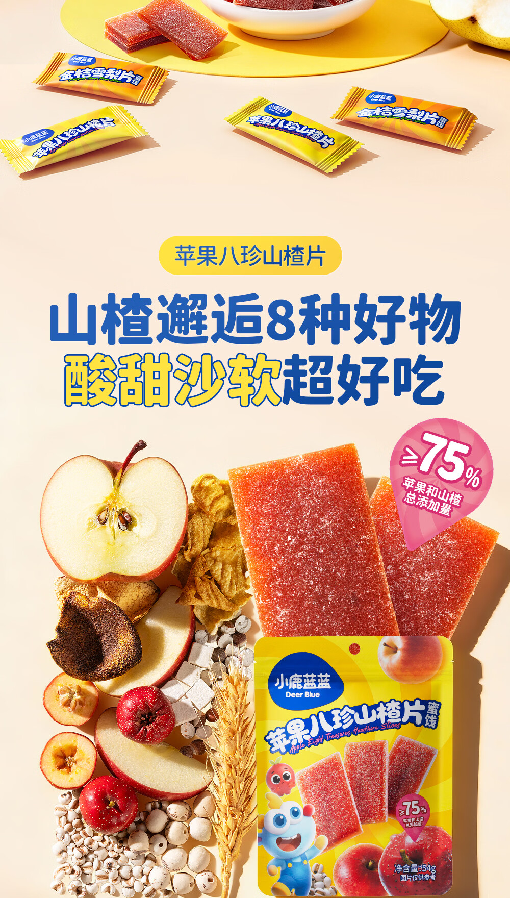 小鹿蓝蓝 宝宝零食 山楂水果条小袋 0添加白砂糖 山楂八珍金桔雪梨片 【1袋体验装】苹果山楂八珍片/54g
