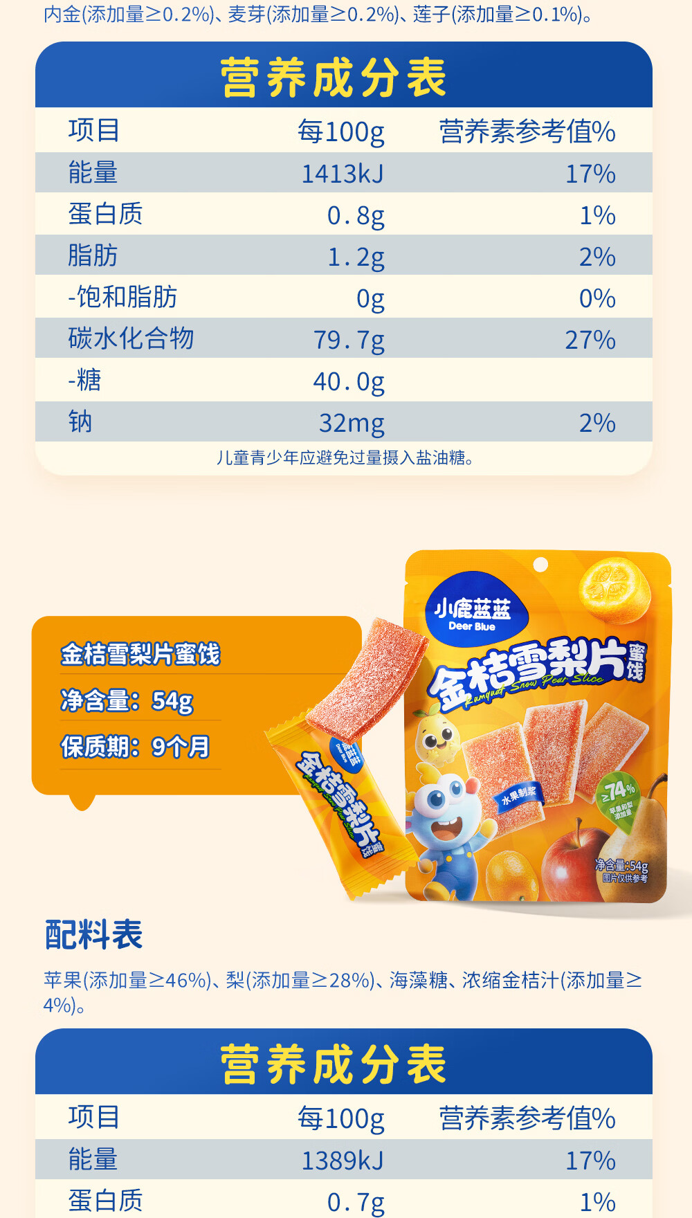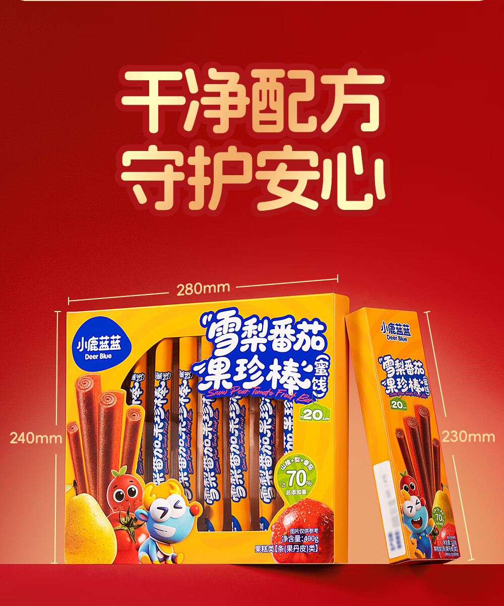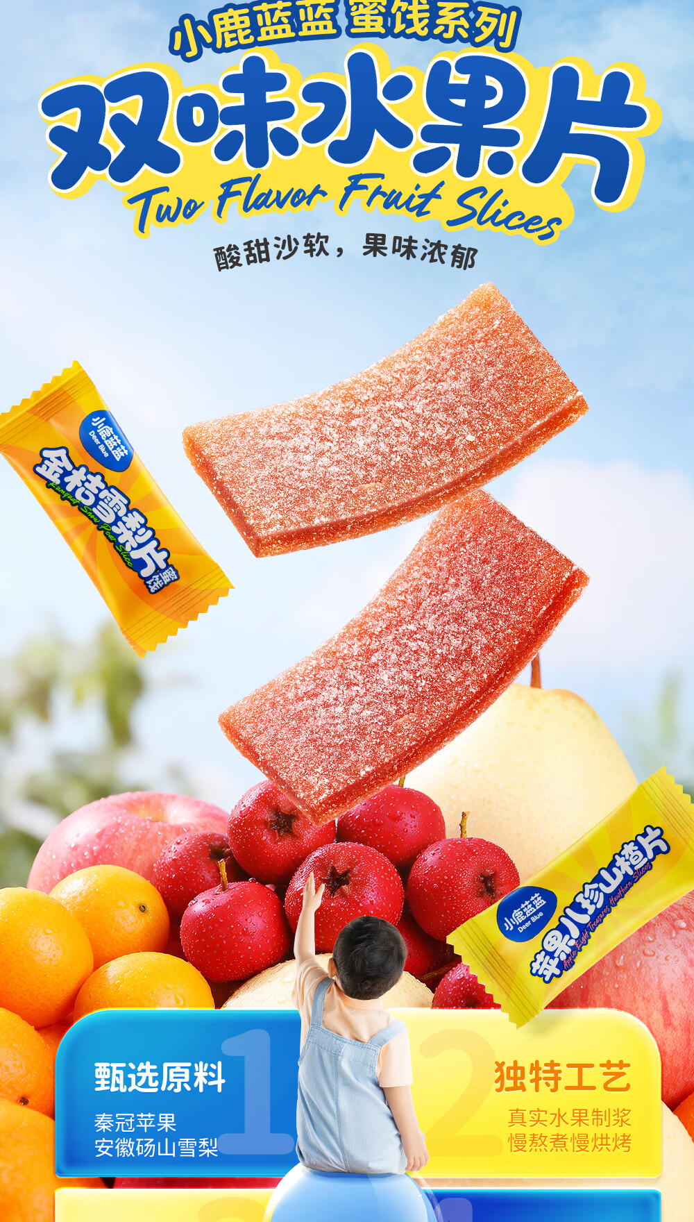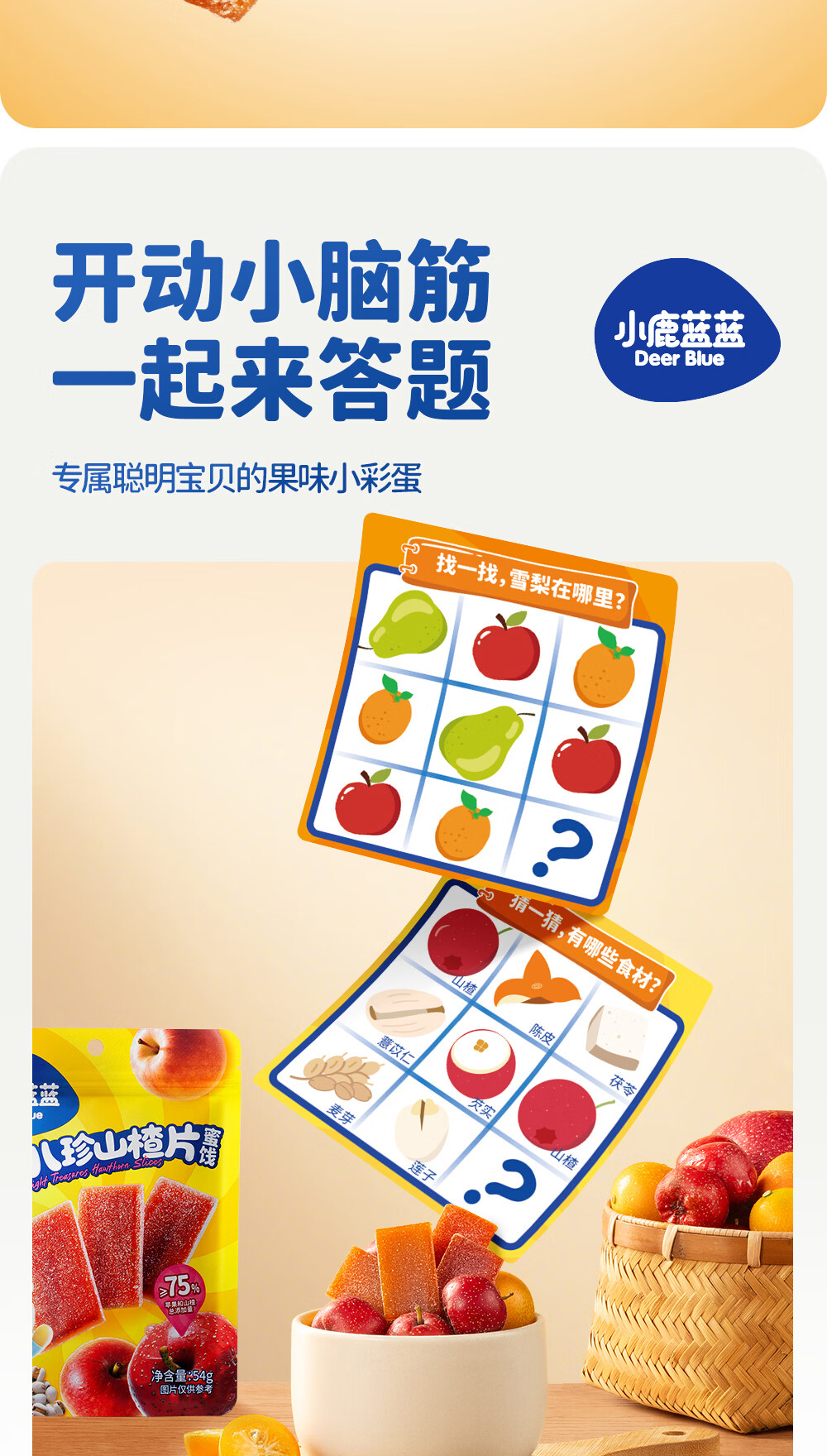 小鹿蓝蓝 宝宝零食 山楂水果条小袋 0添加白砂糖 山楂八珍金桔雪梨片 【1袋体验装】苹果山楂八珍片/54g