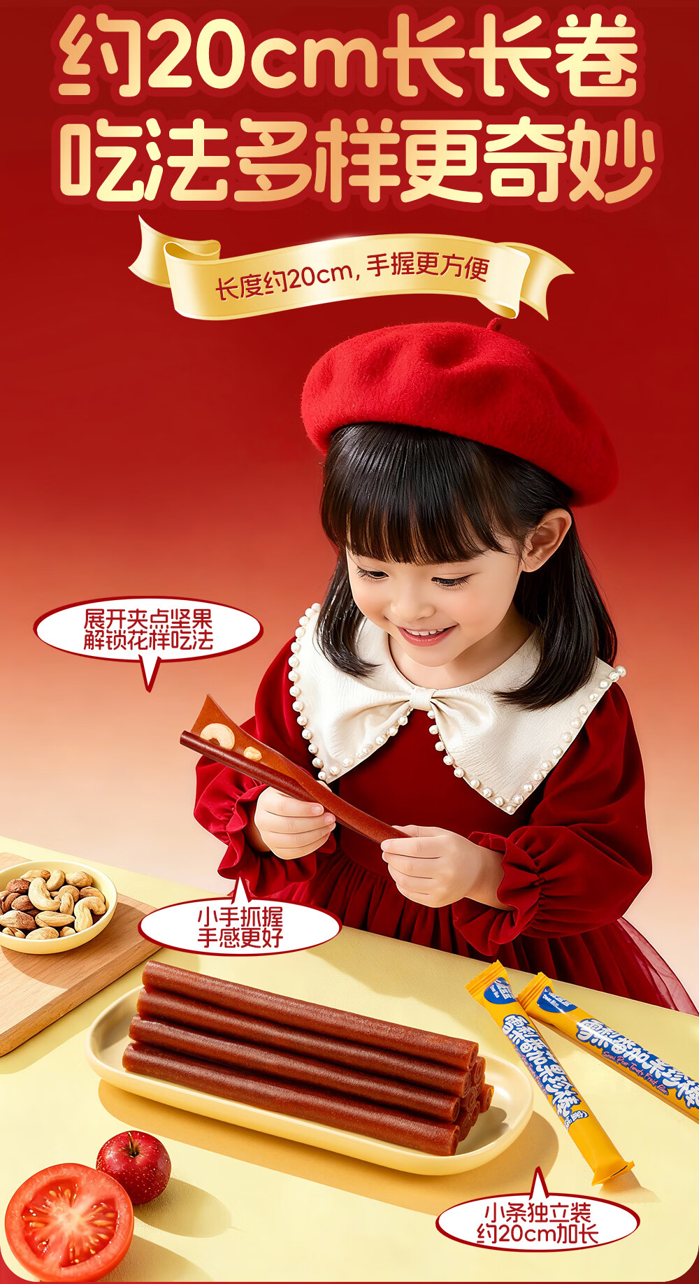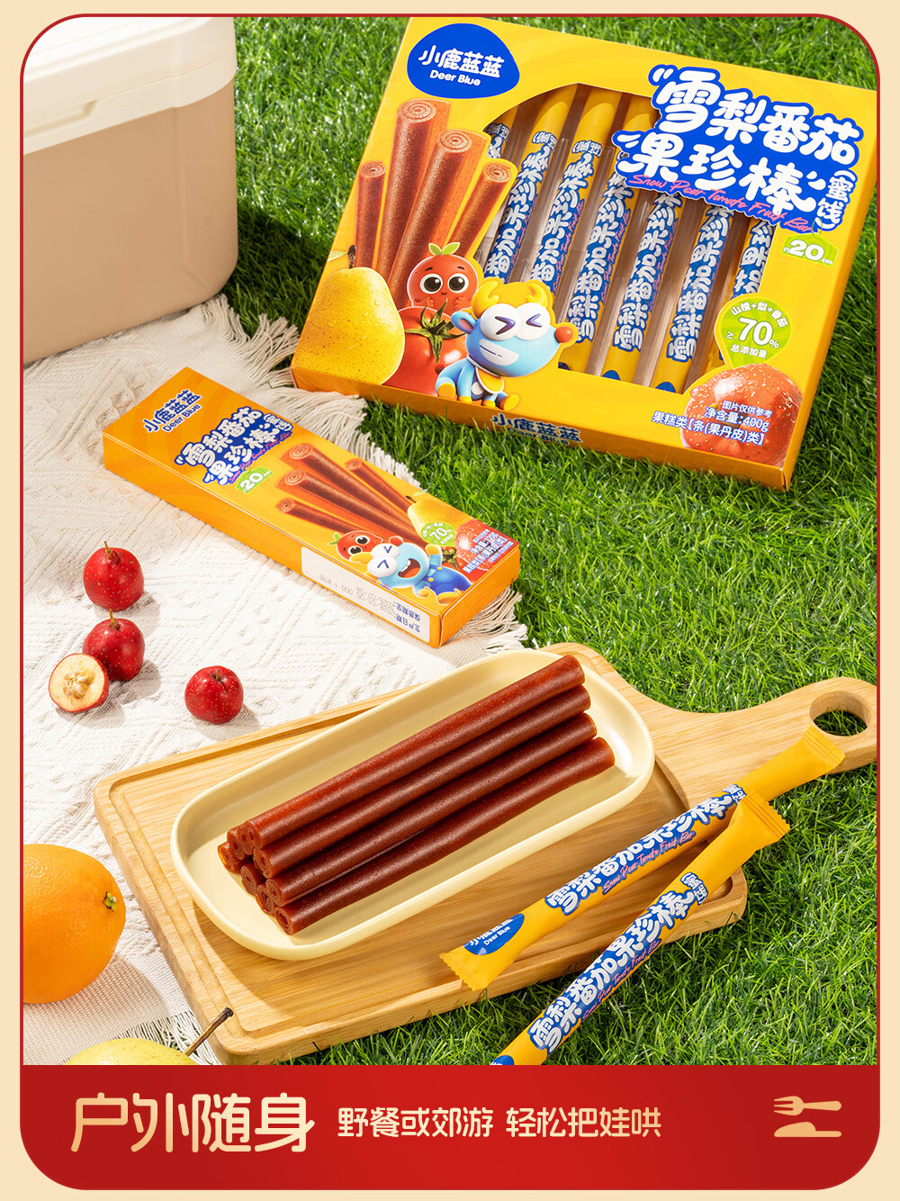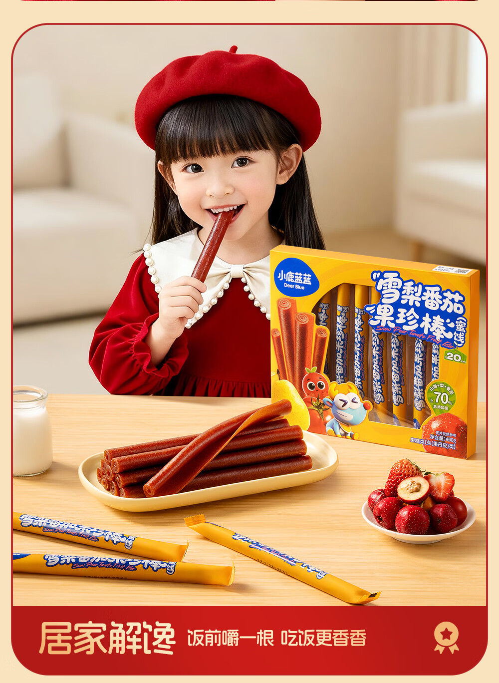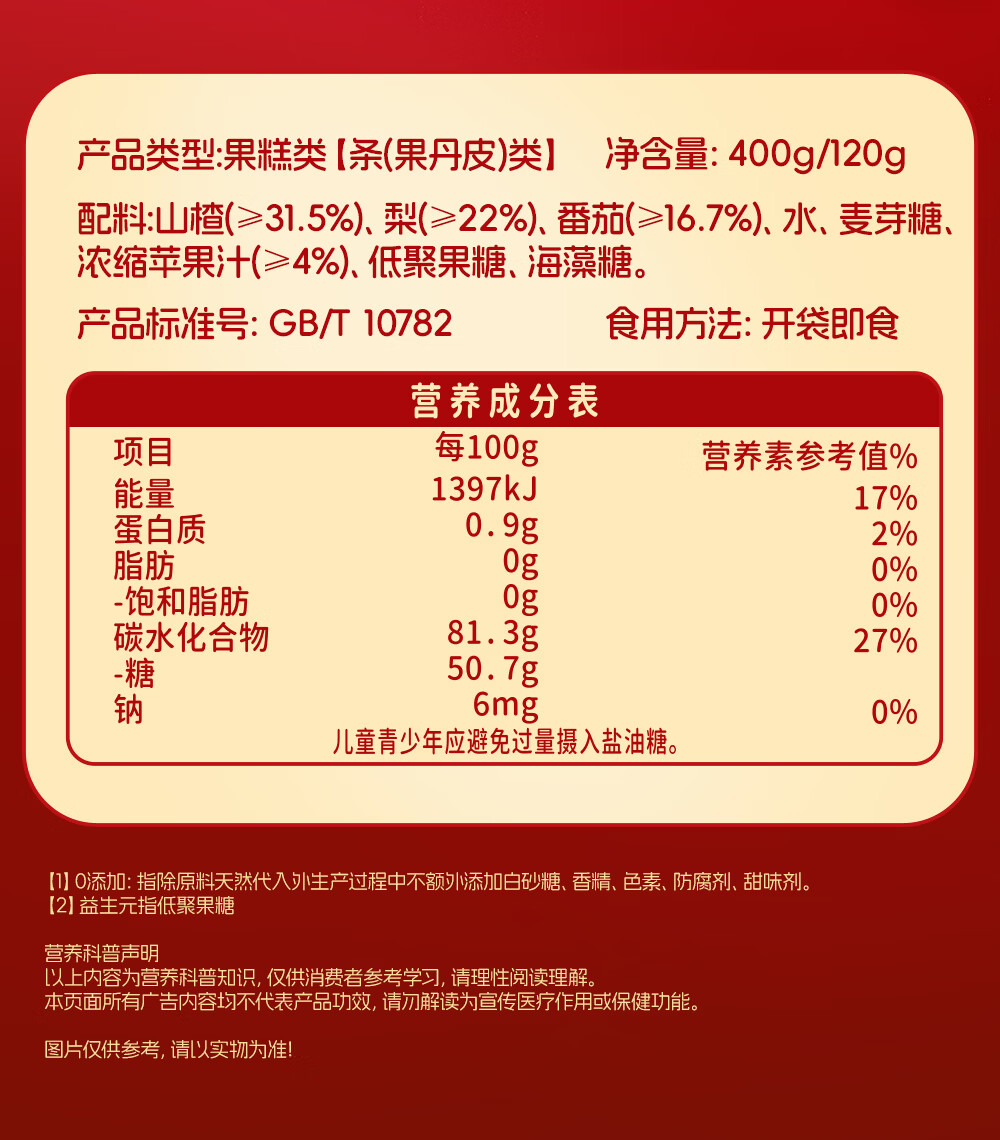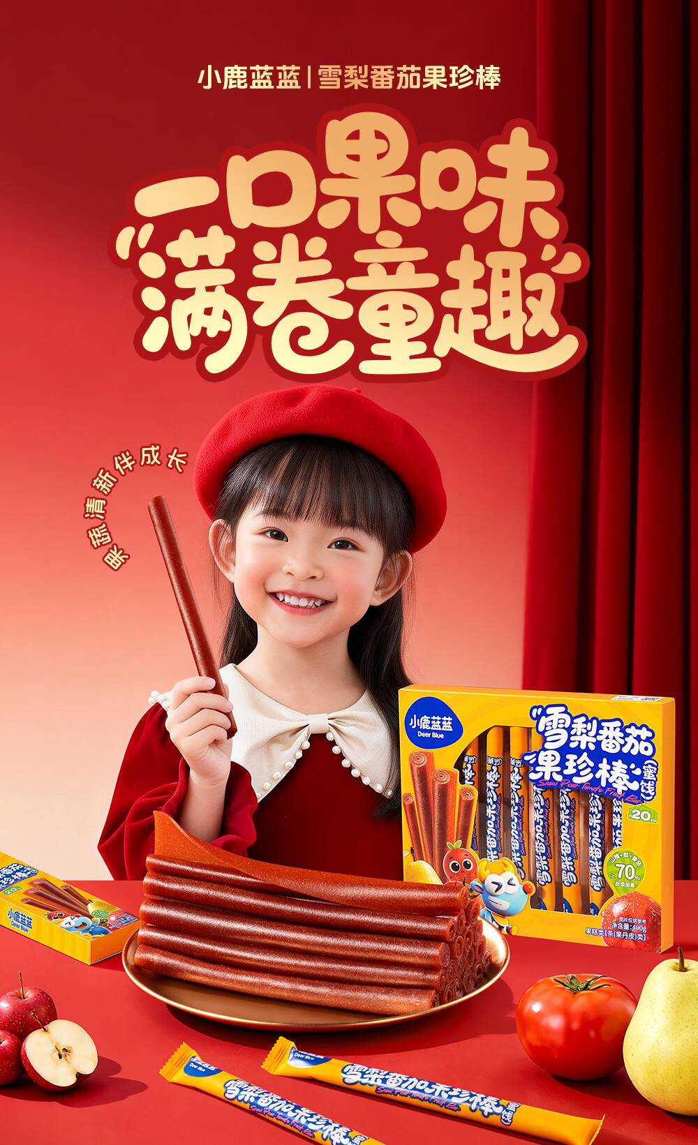 小鹿蓝蓝 宝宝零食 山楂水果条小袋 0添加白砂糖 山楂八珍金桔雪梨片 【1袋体验装】苹果山楂八珍片/54g