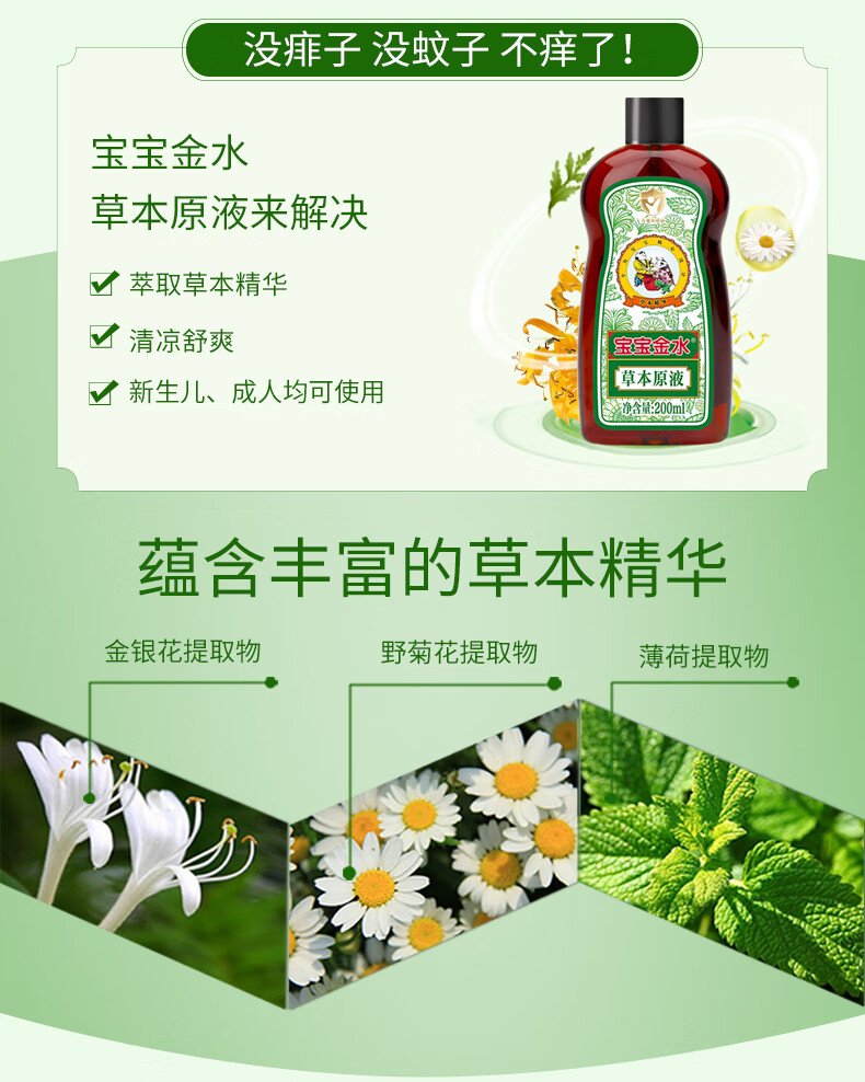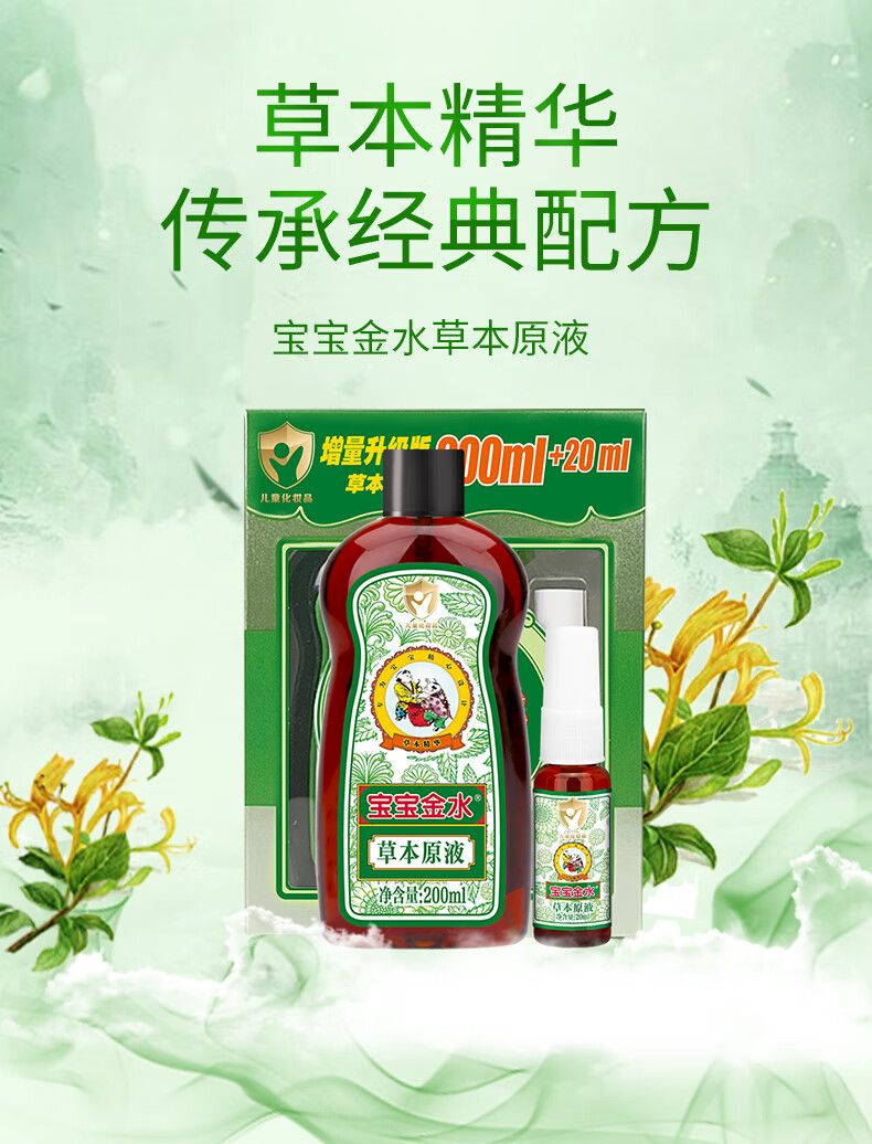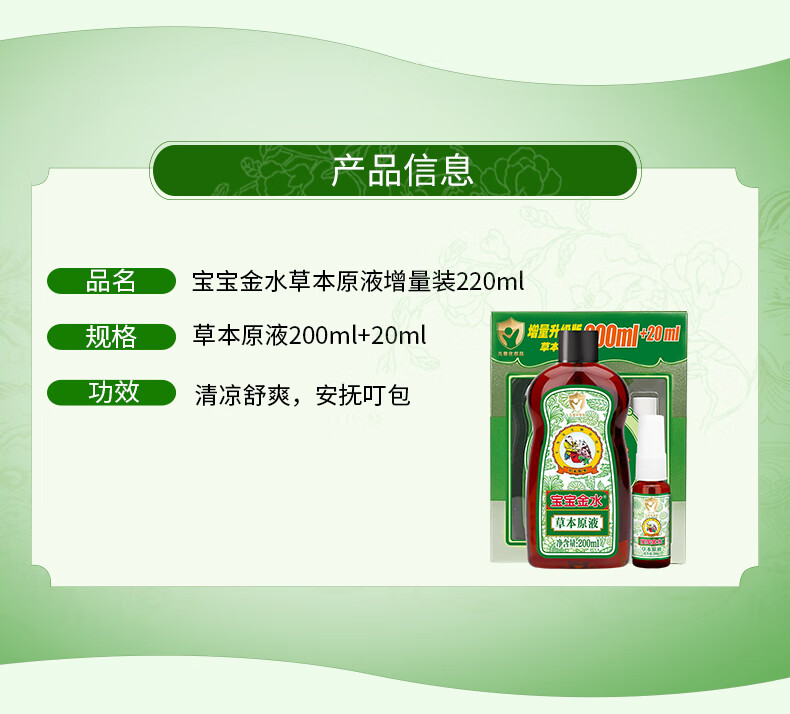 宝宝金水草本原液200ml+20ml 儿童花露水 宝宝液体痱子粉 清凉防痱