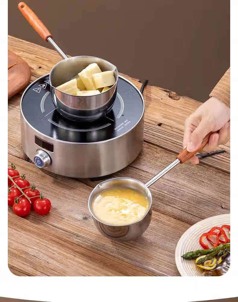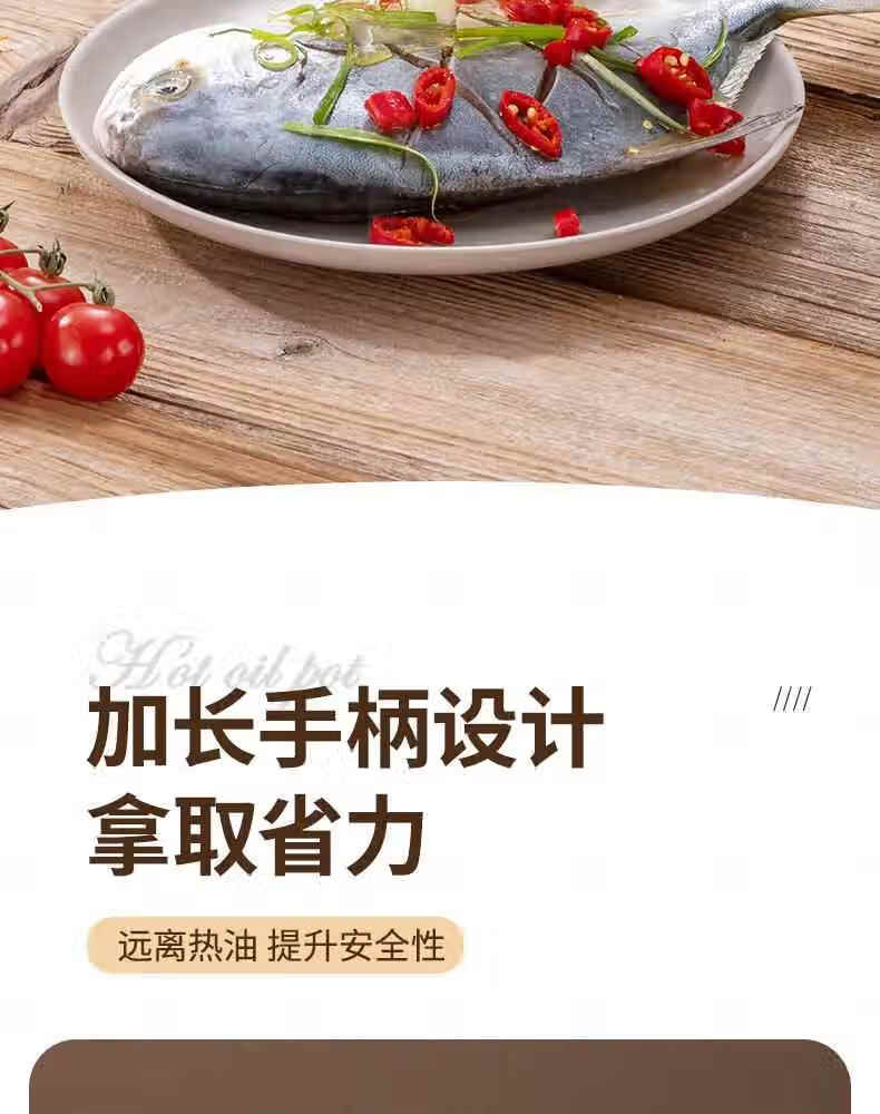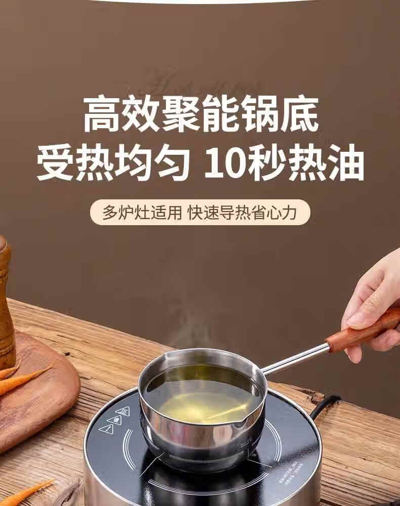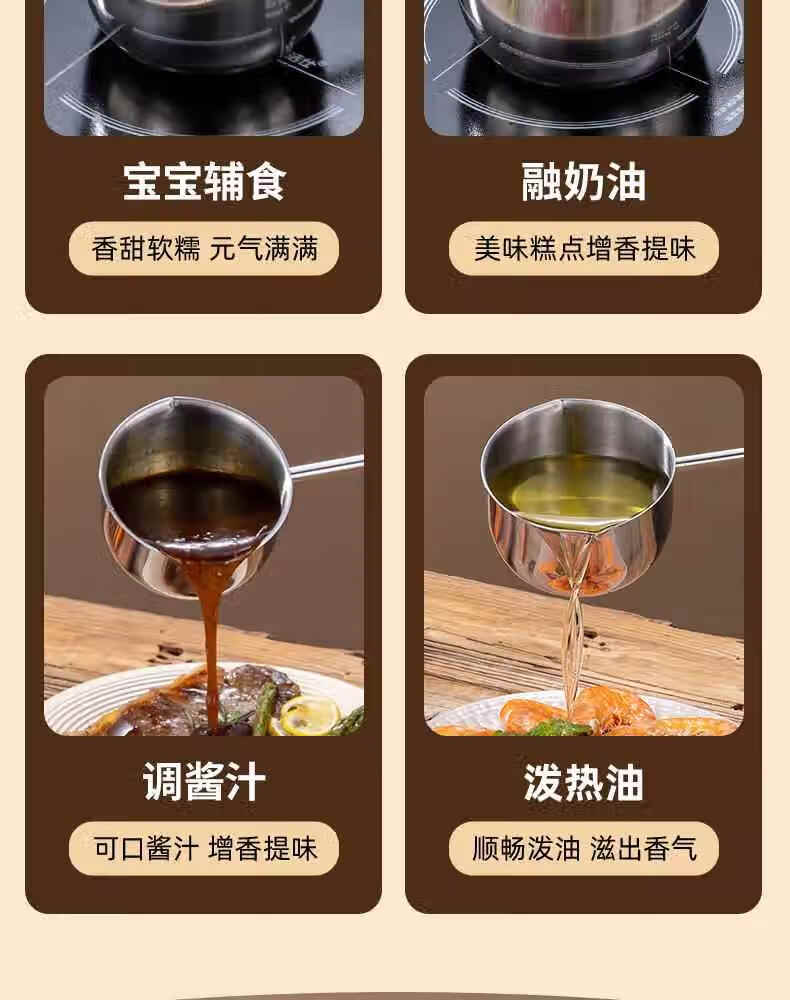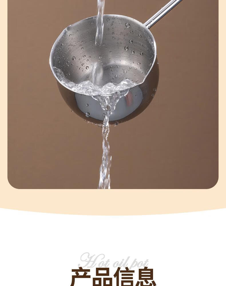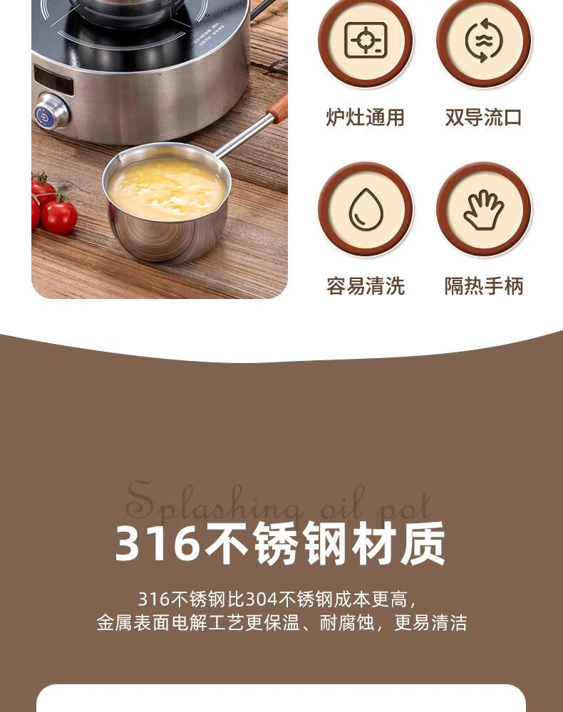 胖东来同款泼油锅316不锈钢加长柄热油专用神器厨房浇油烧油家用 316钢L带刻度梨花木柄 300cm