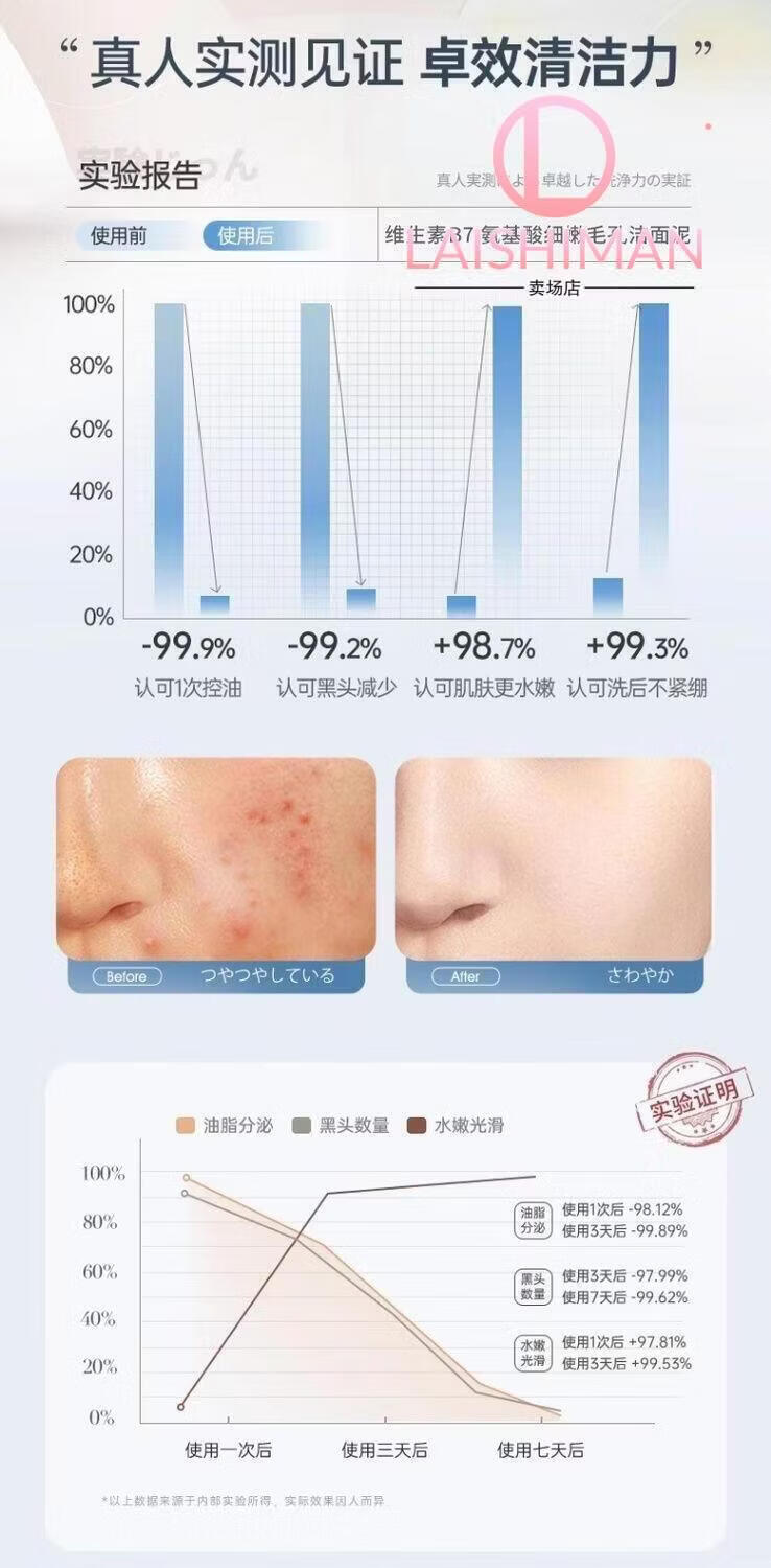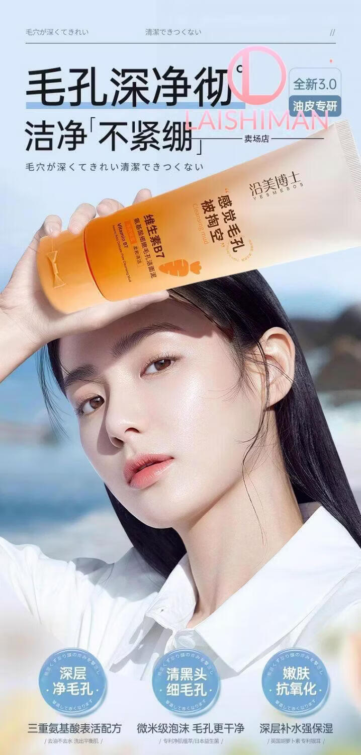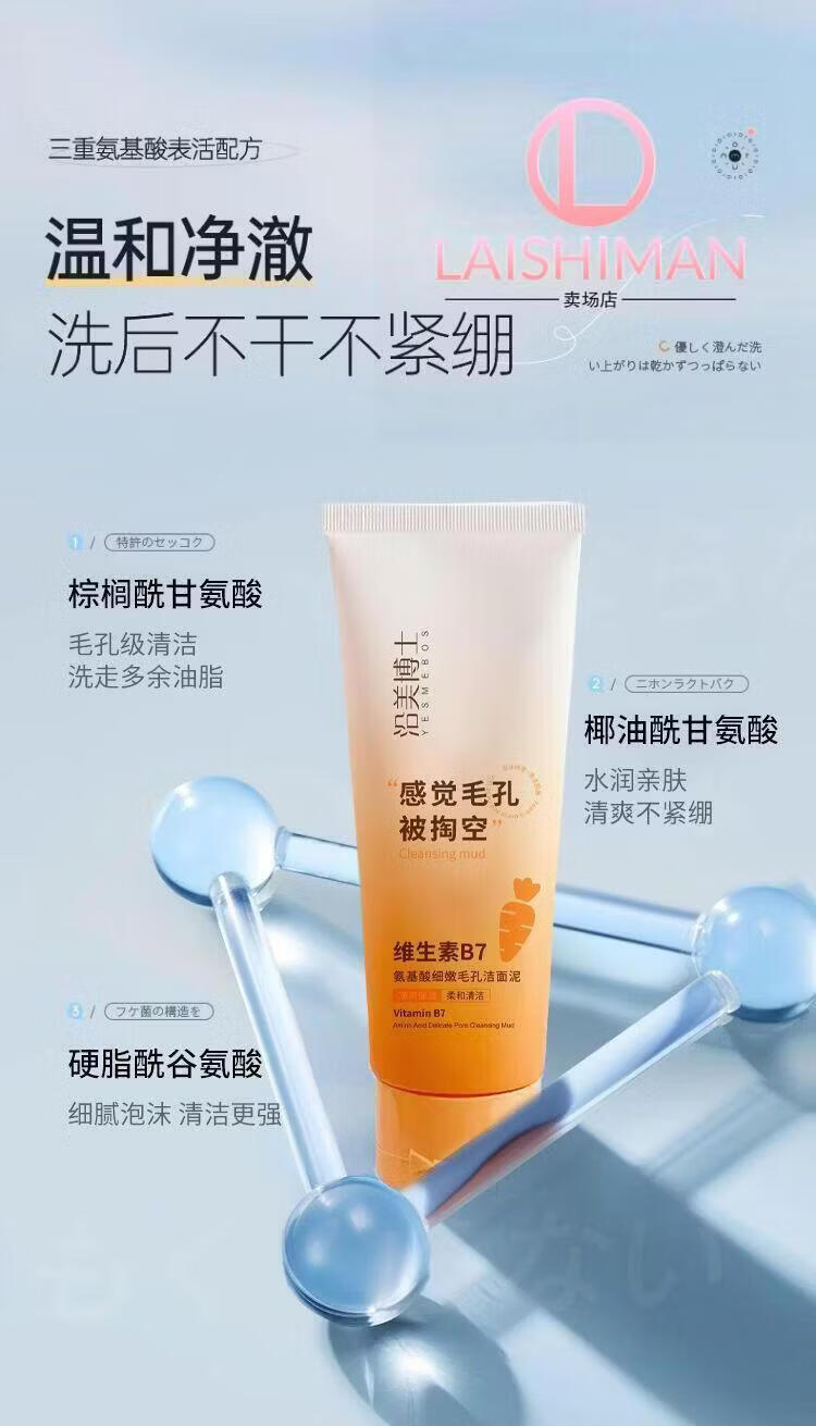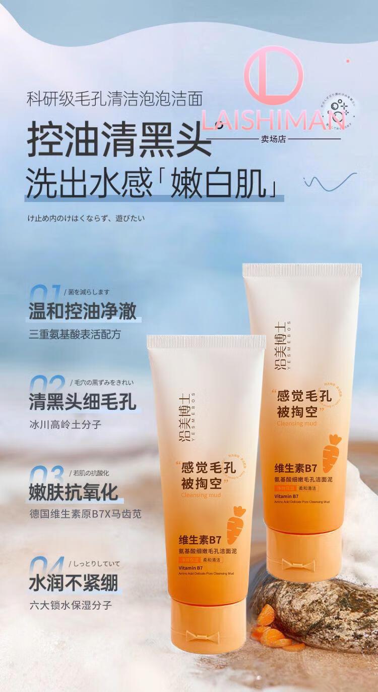 沐刻洗面奶维生素B7氨基酸去深层清洁黑头控油洁面泥润肤乳 5支 清爽控油 不拔干 官方直售