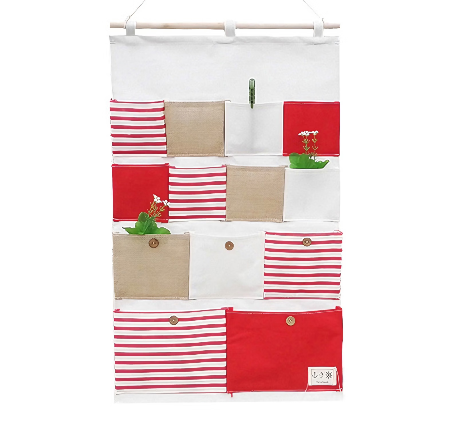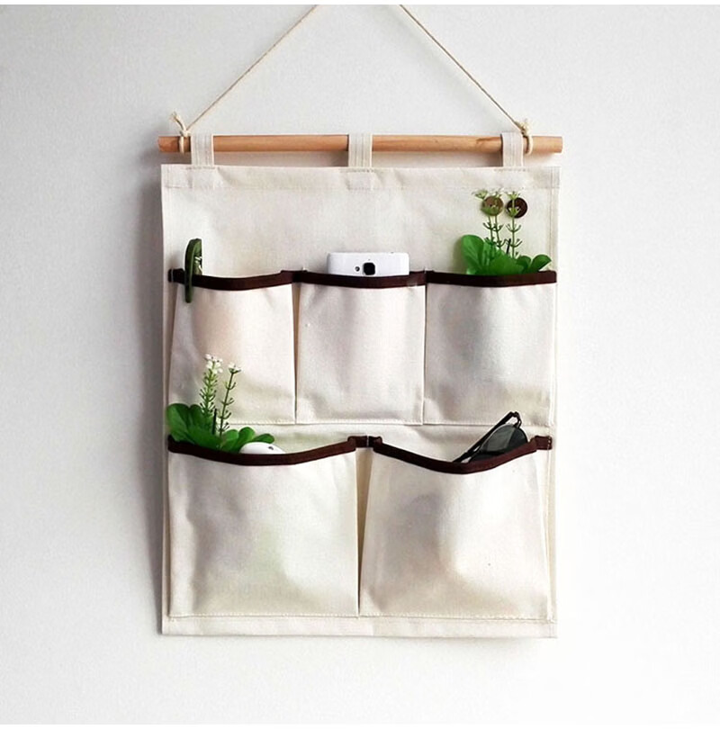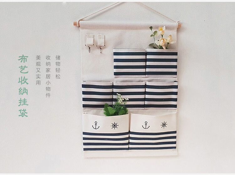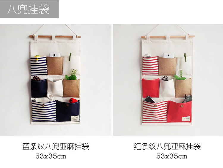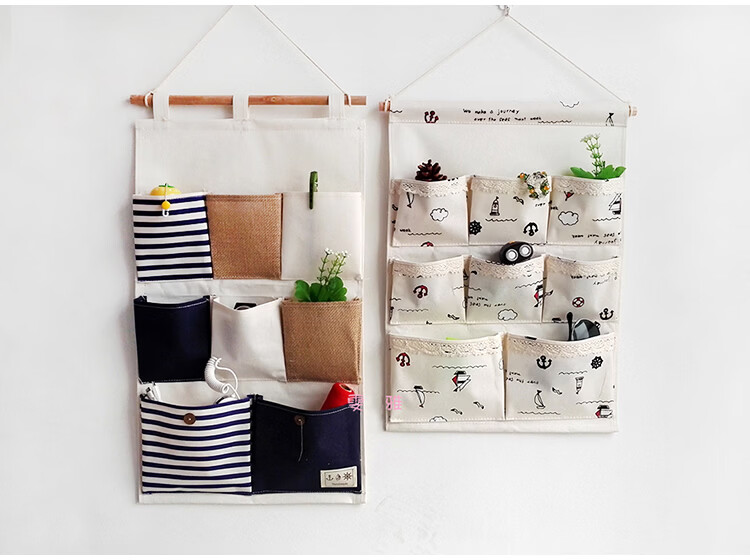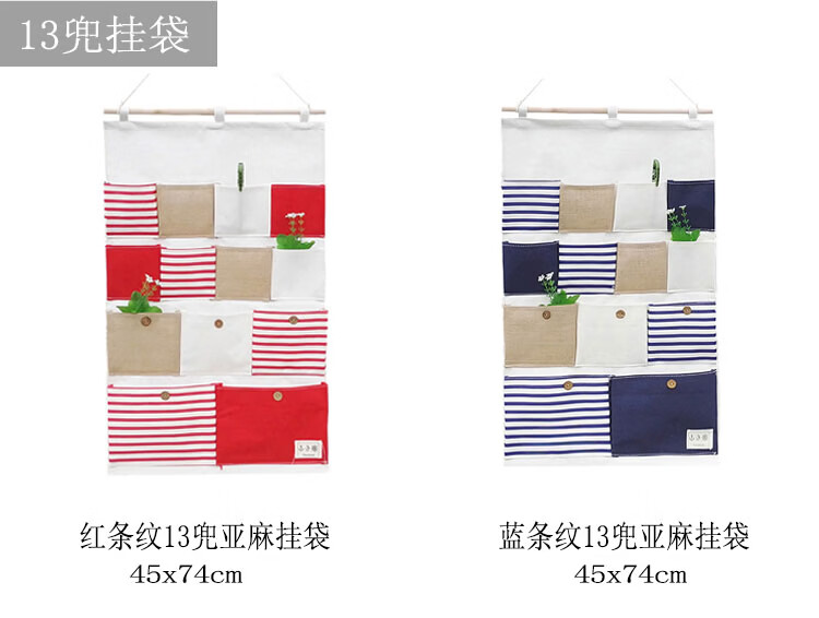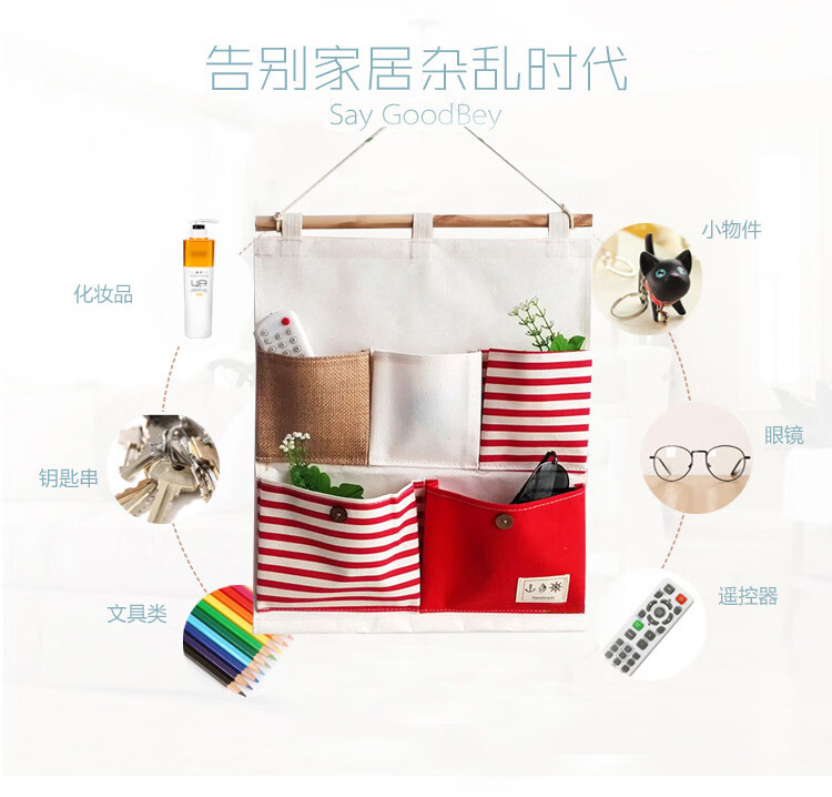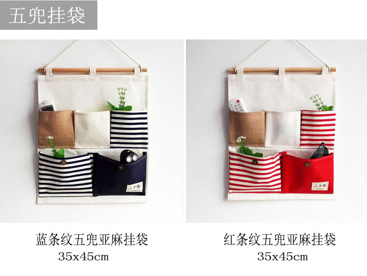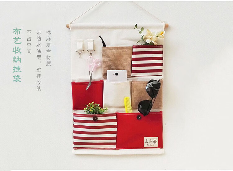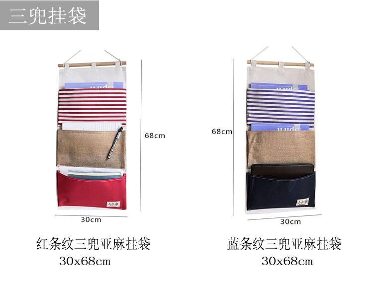 居家布艺多层收纳袋宿舍门后床头墙挂式储物袋学生寝室衣柜壁挂袋 拼红大三兜
