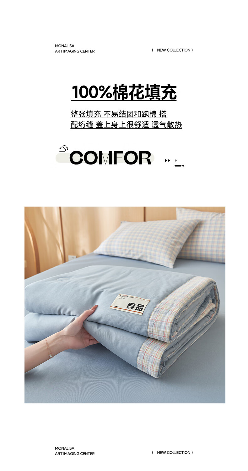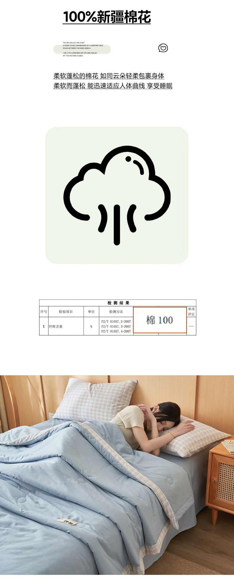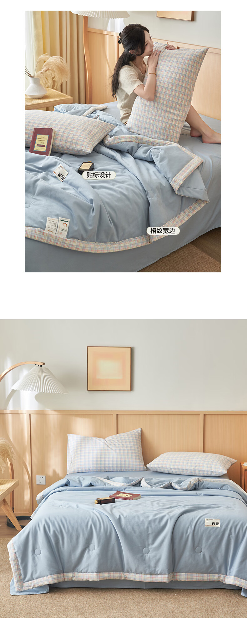 恒源祥被子空调被A类100棉被夏凉被新疆里外全棉学生宿舍可机洗夏季薄被 全棉水洗棉包边夏被-艾草绿 150*200cm 【夏被单件】