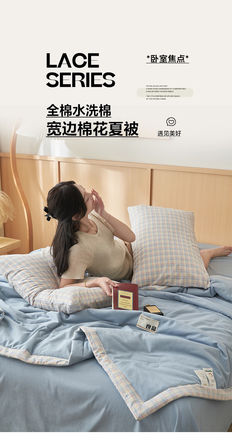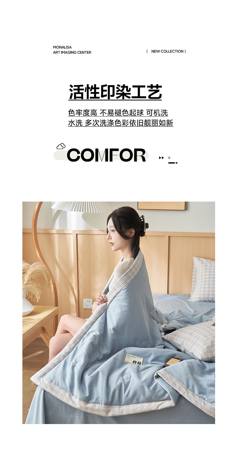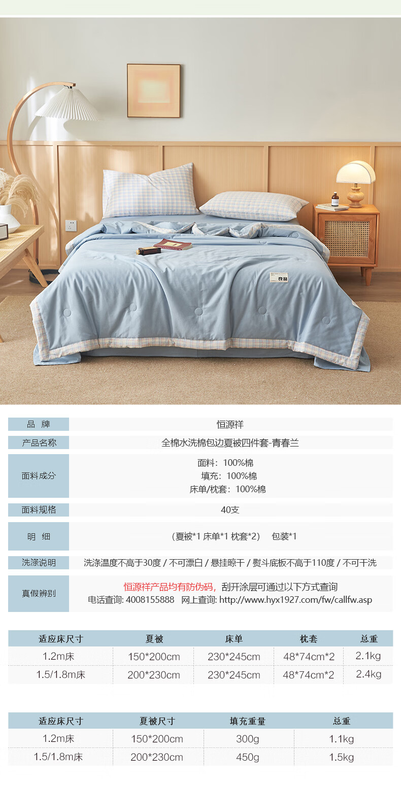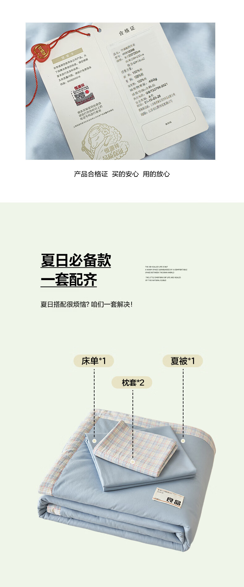 恒源祥被子空调被A类100棉被夏凉被新疆里外全棉学生宿舍可机洗夏季薄被 全棉水洗棉包边夏被-艾草绿 150*200cm 【夏被单件】