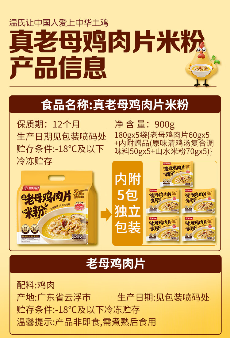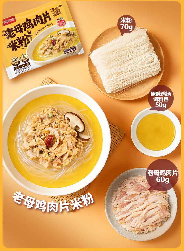 温氏老母鸡肉片米粉900g(180g*5包)散养土鸡 冷冻 3分钟速食