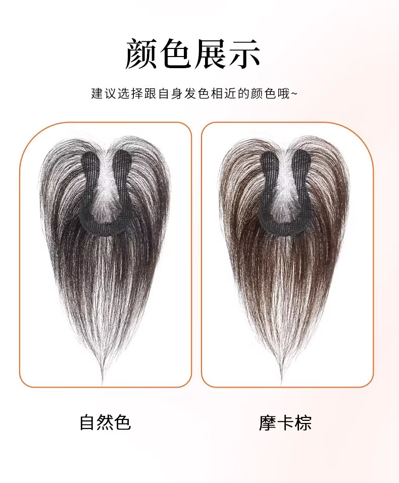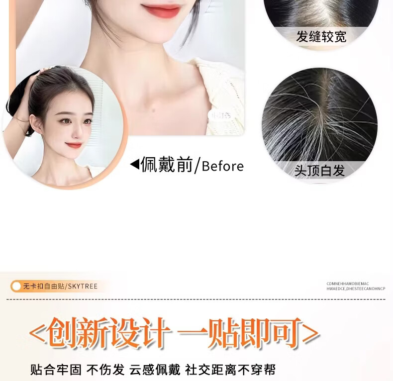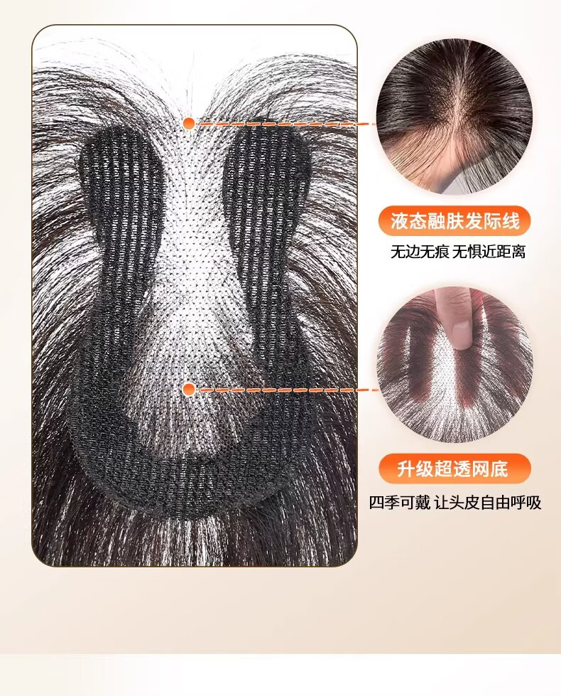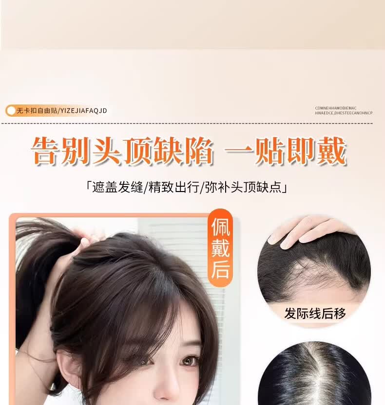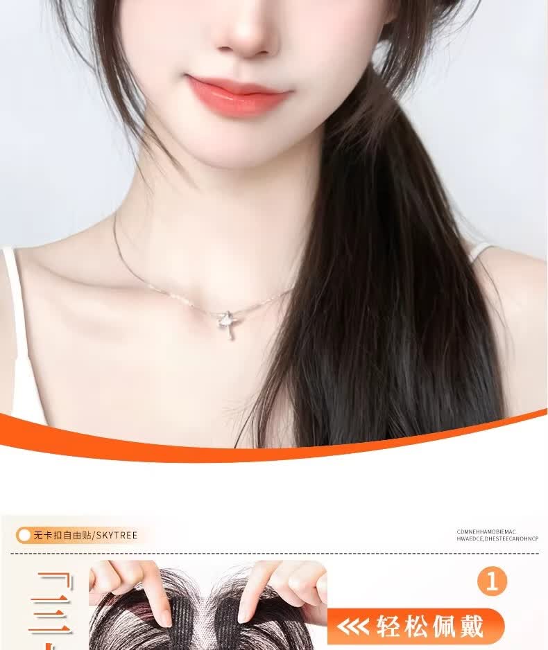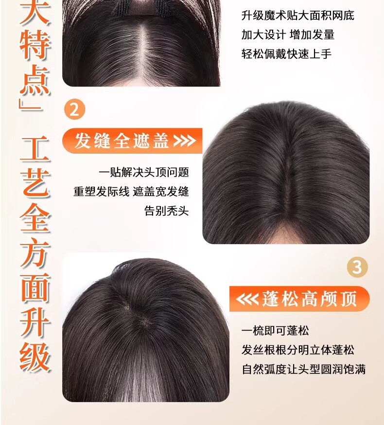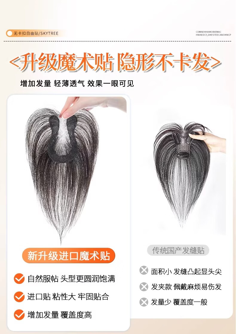 天空树免发卡假发女片头顶补发蓬松真发遮白发增发量液态无边发缝魔术贴 免发卡-八字款【7*11自然色】遮全头25CM