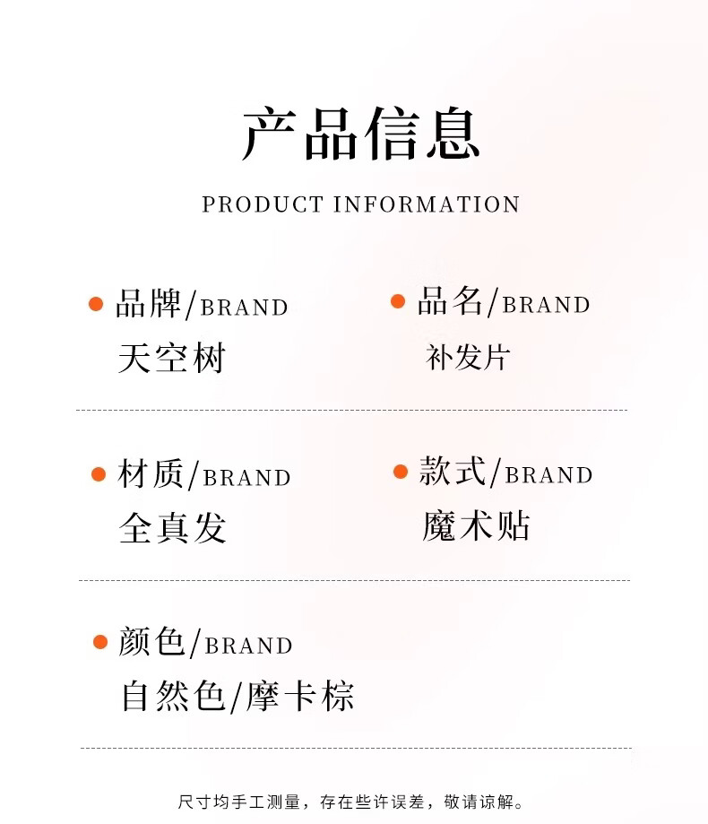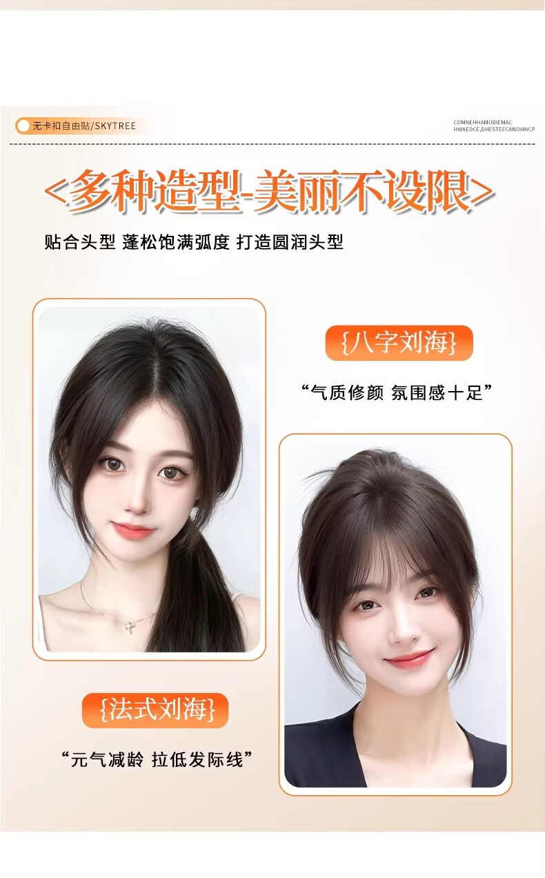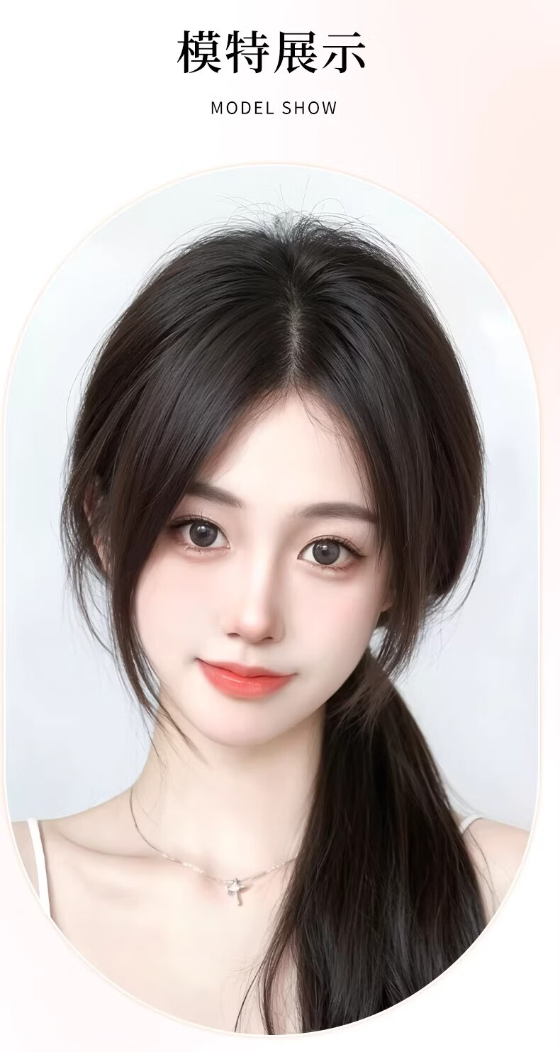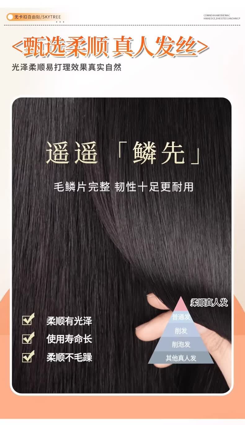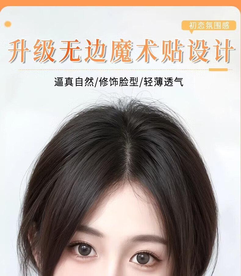 天空树免发卡假发女片头顶补发蓬松真发遮白发增发量液态无边发缝魔术贴 免发卡-八字款【7*11自然色】遮全头25CM
