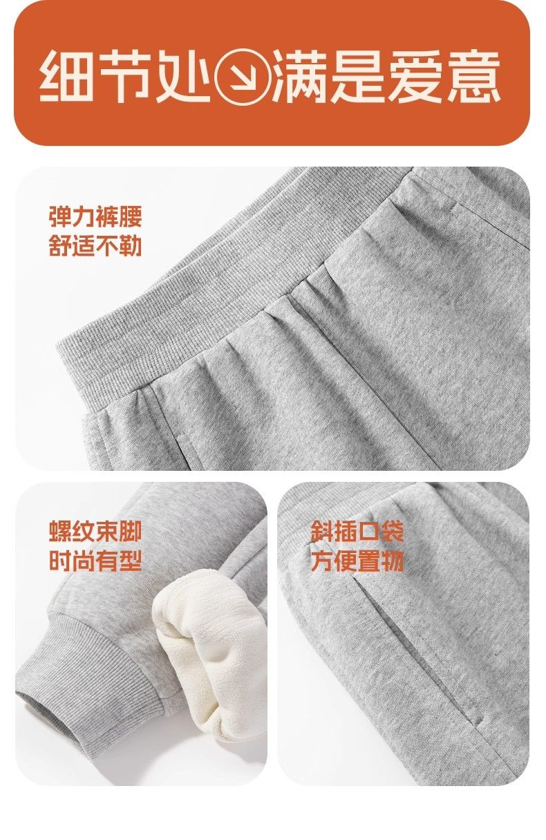 唐狮(TonLion)儿童羊羔绒裤子新年裤子马年装加绒加厚冬季运动裤中大童运动年服 【羊羔绒】黑色醒狮 160