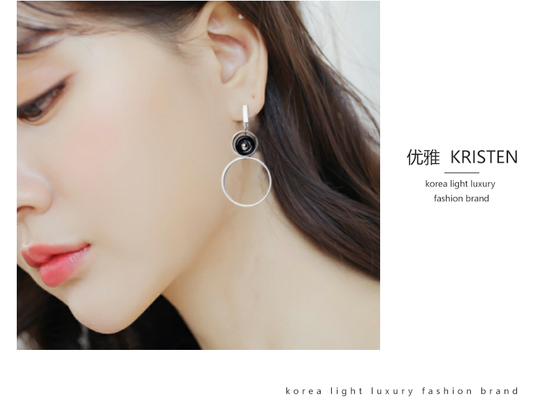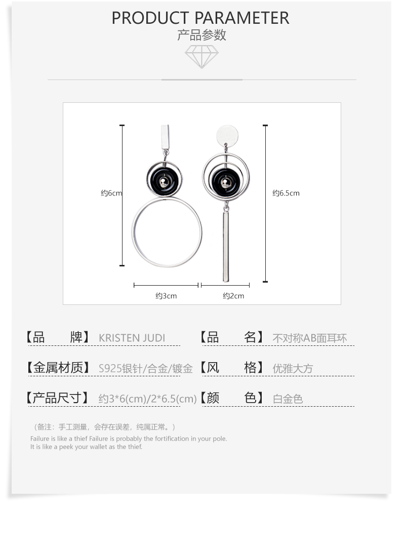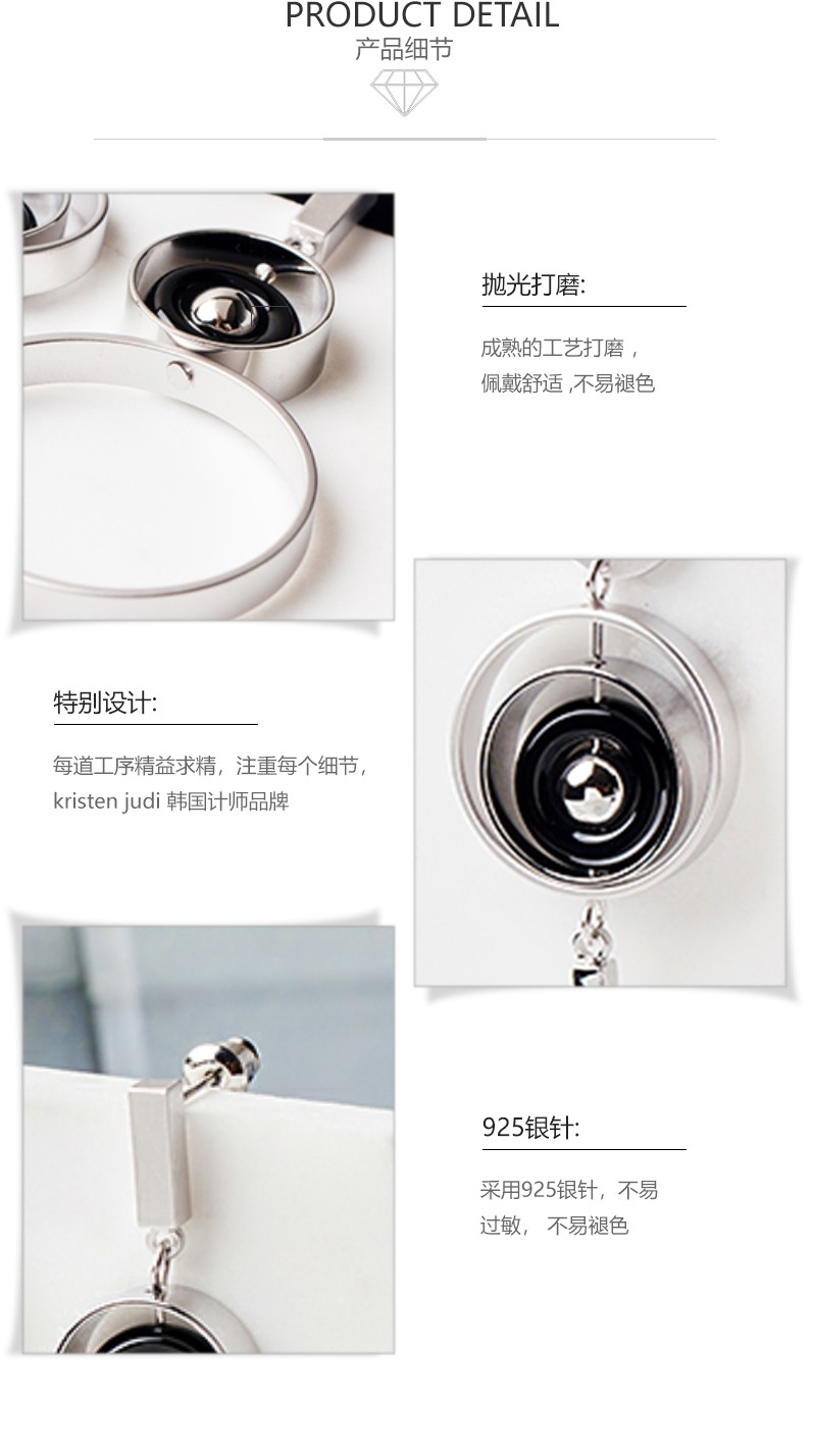 KRISTEN JUDI大圈圈耳环女银针不对称圆环耳钉几何时尚长款耳饰品个性夸张耳坠 白金色送女友老婆闺蜜生日礼物