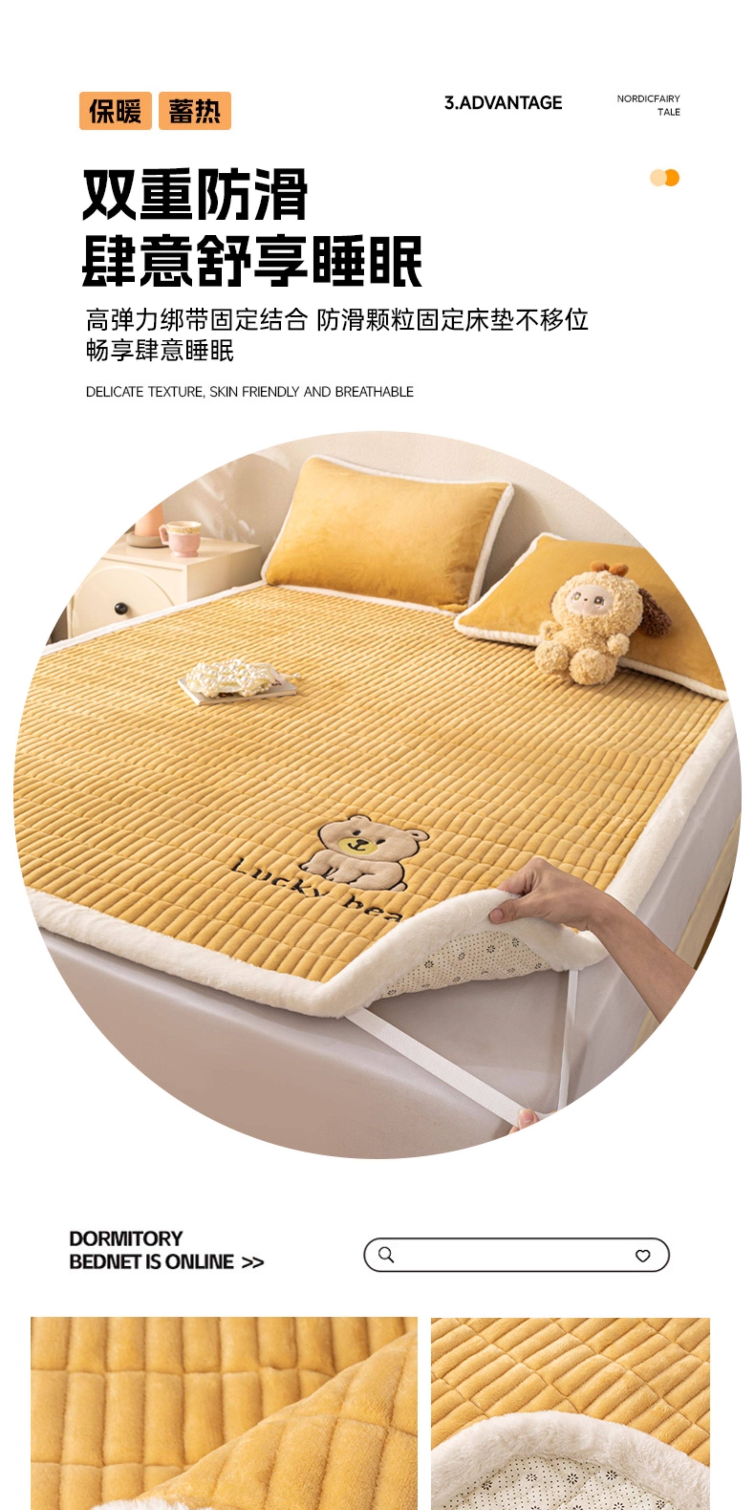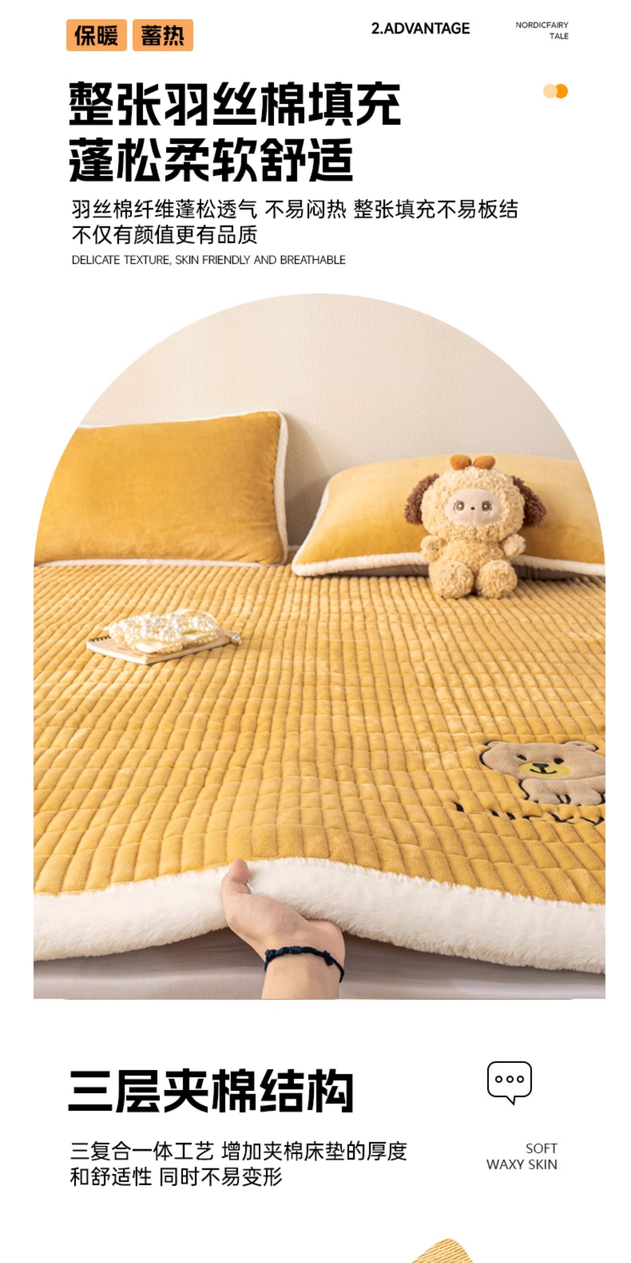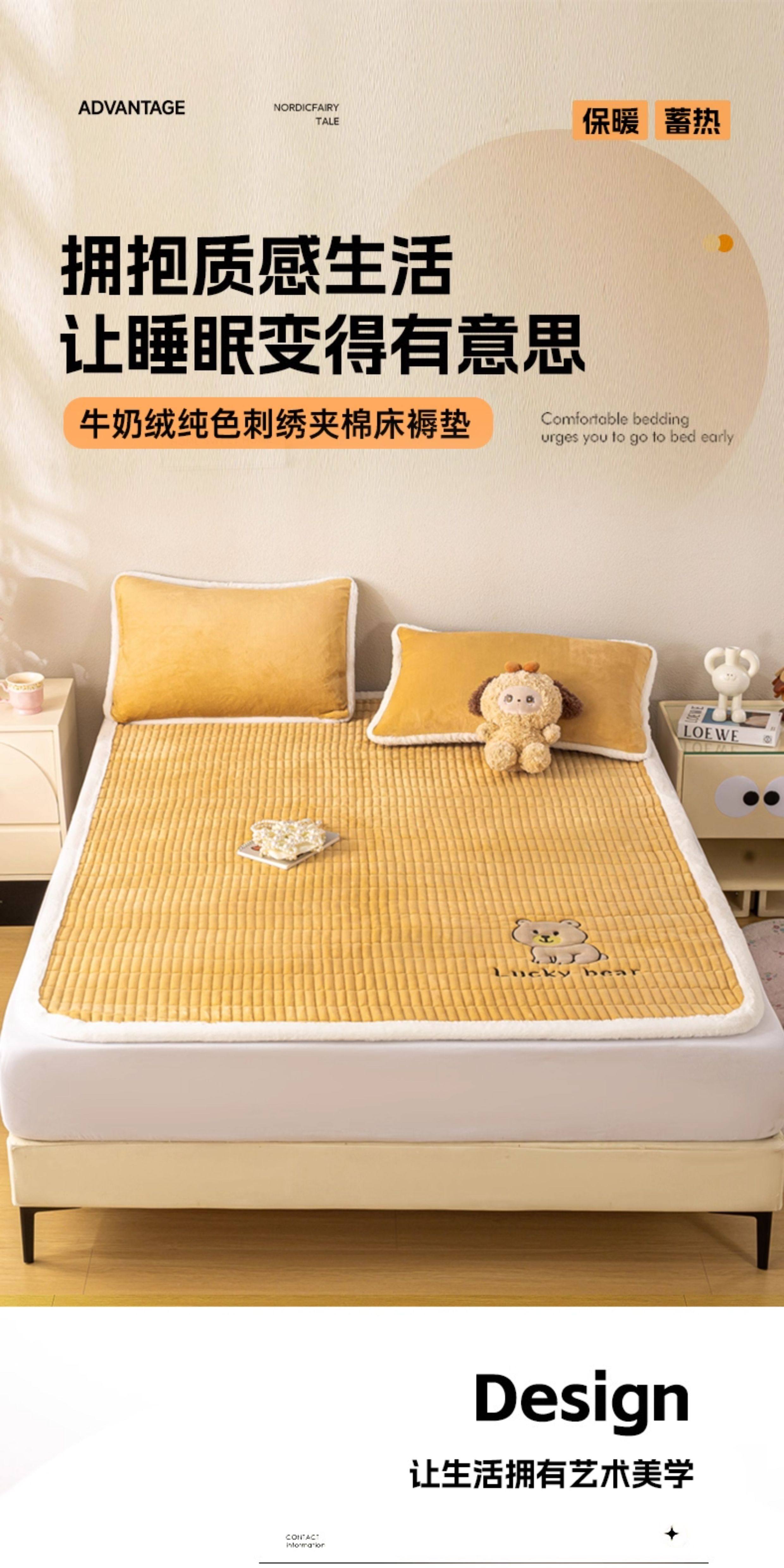 阿尔皮纳袋鼠牛奶绒刺绣床垫遮盖物家用学生宿舍软垫子冬季加厚榻榻米床褥子 维尼-棕【高克重牛奶绒 保暖不掉绒】 学生床:90*200cm床护垫单件