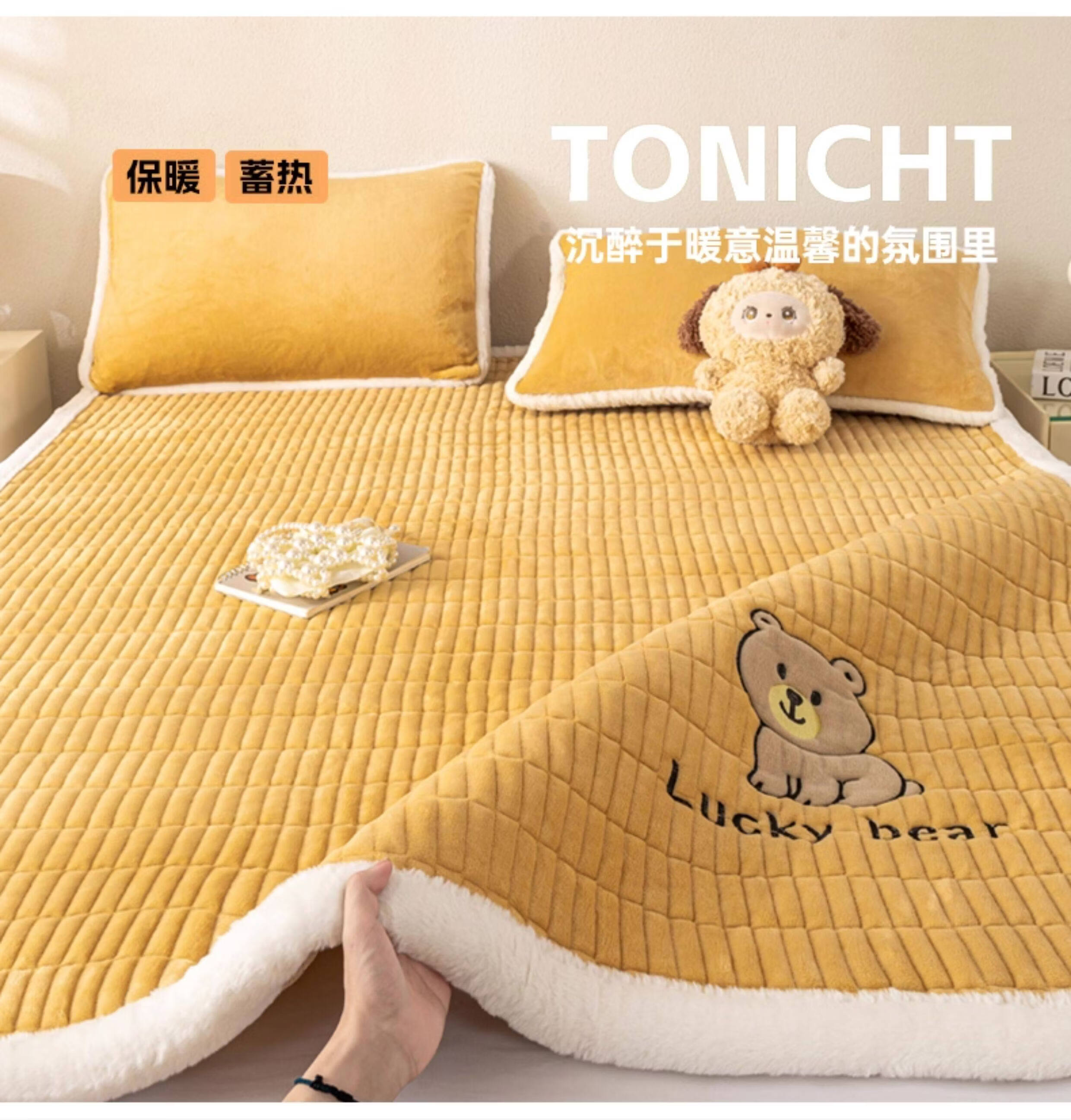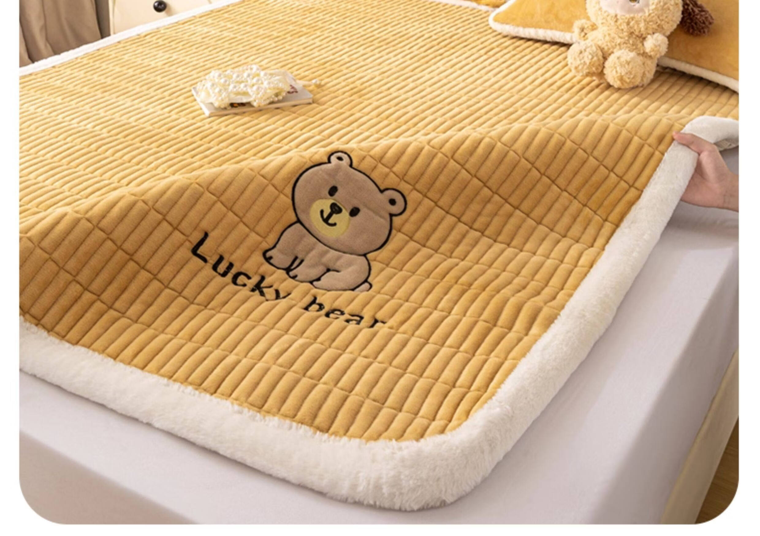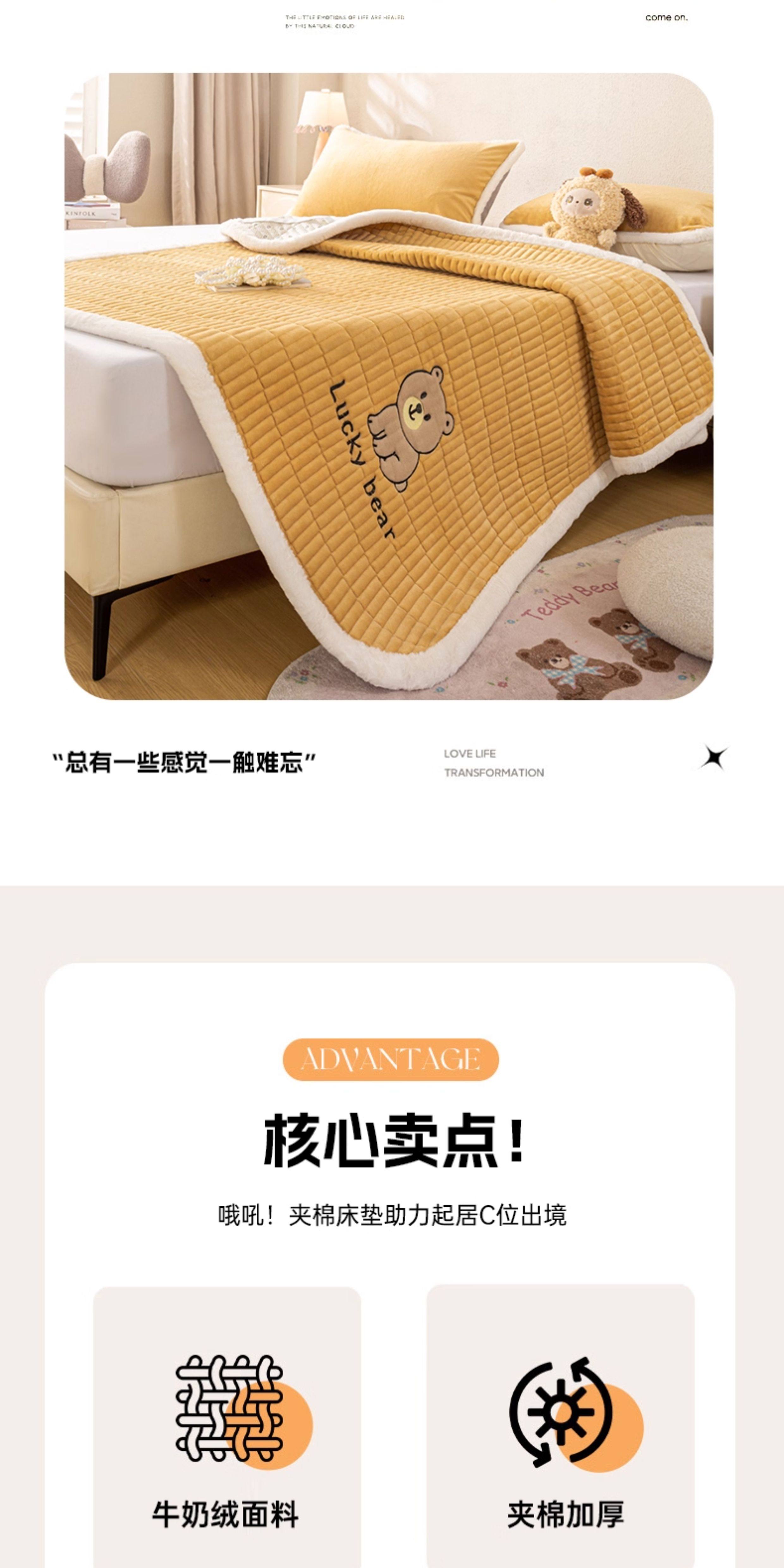阿尔皮纳袋鼠牛奶绒刺绣床垫遮盖物家用学生宿舍软垫子冬季加厚榻榻米床褥子 维尼-棕【高克重牛奶绒 保暖不掉绒】 学生床:90*200cm床护垫单件