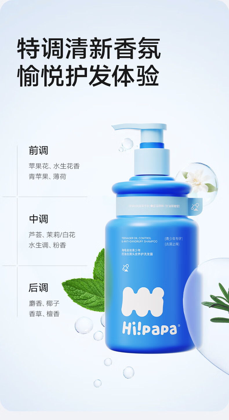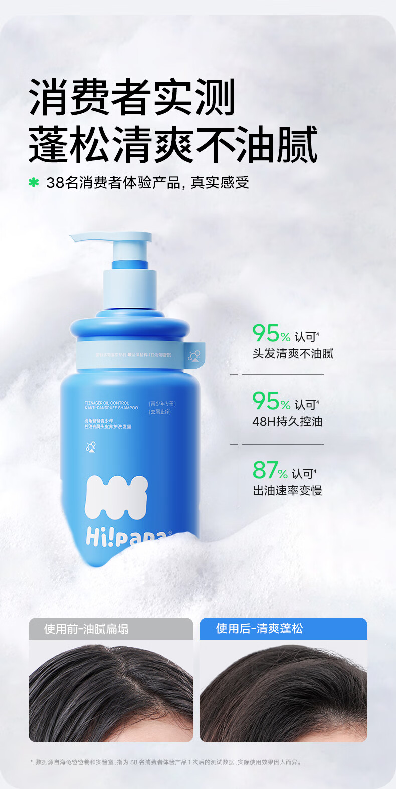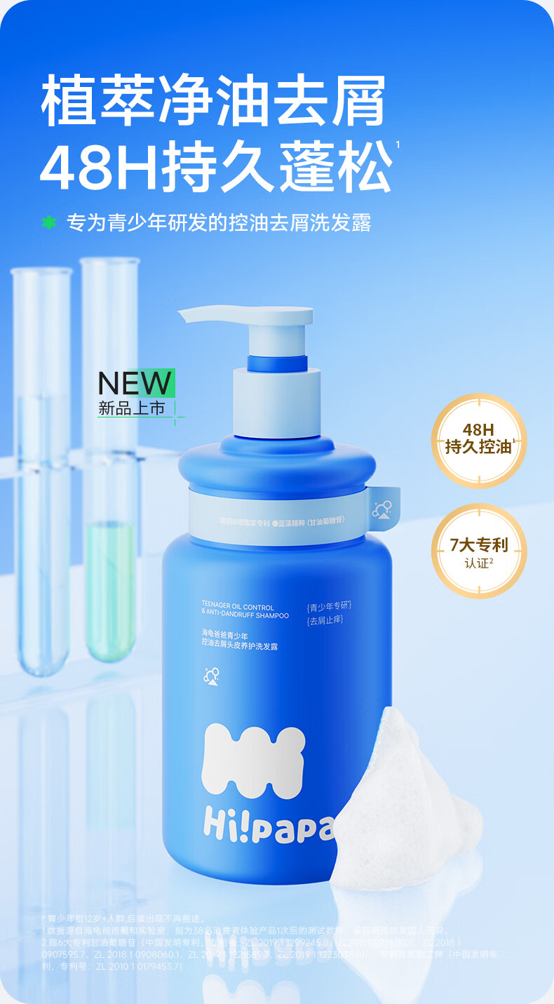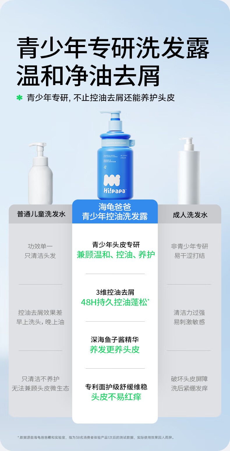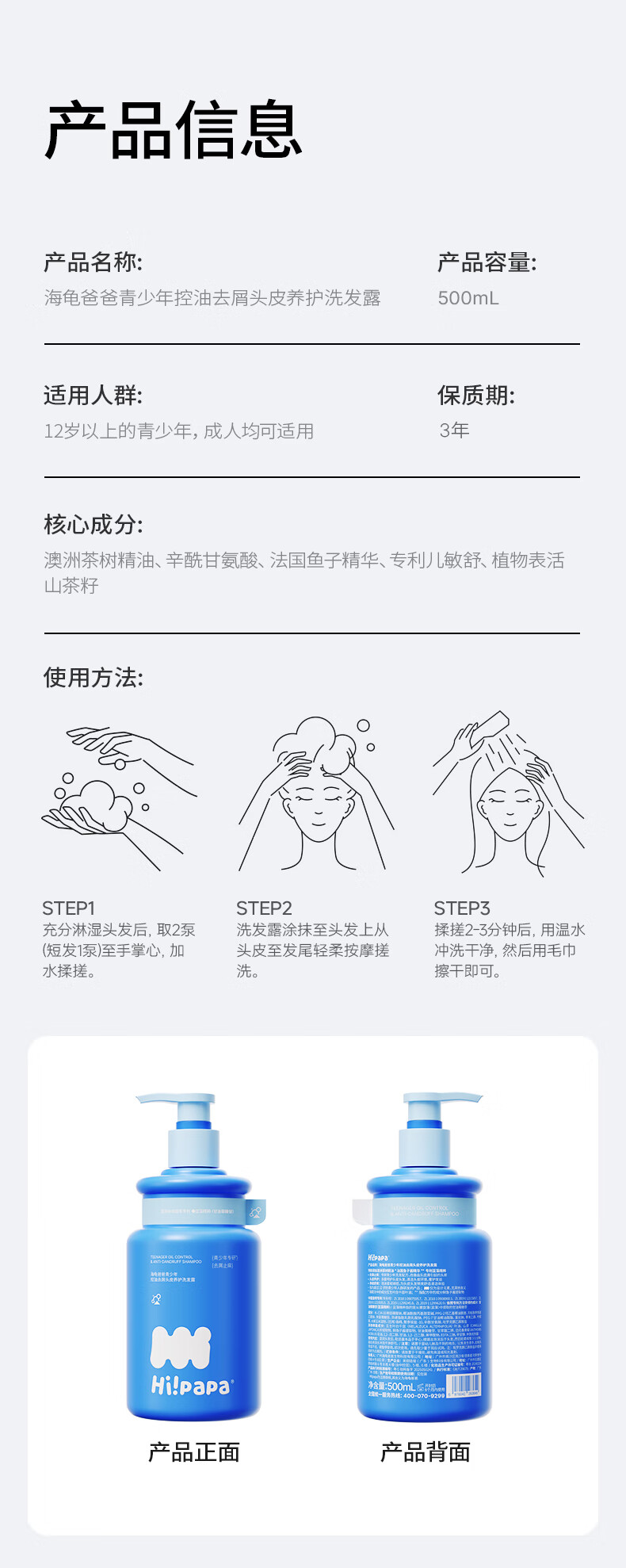 海龟爸爸海龟爸爸青少年控油洗发水500ml 植萃净油去屑蓬松温和青少年专研