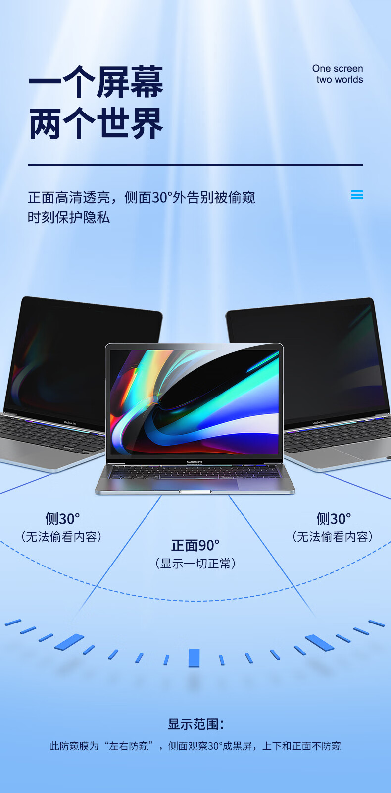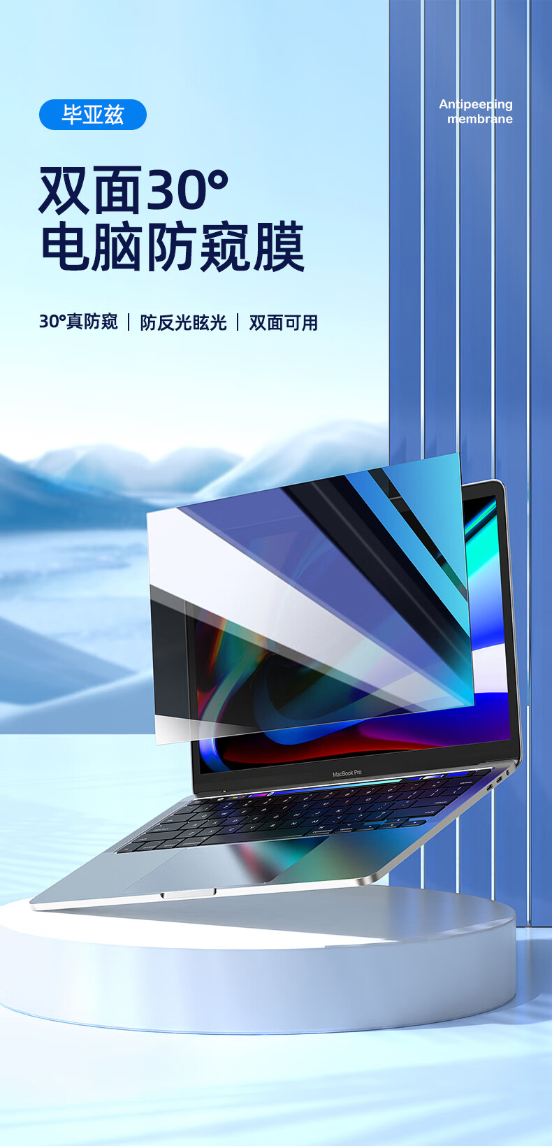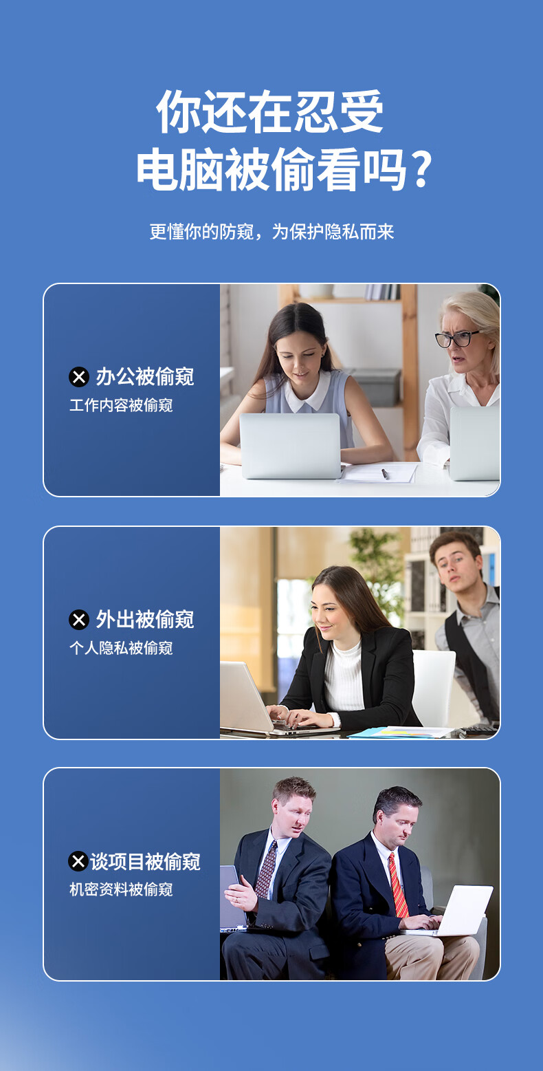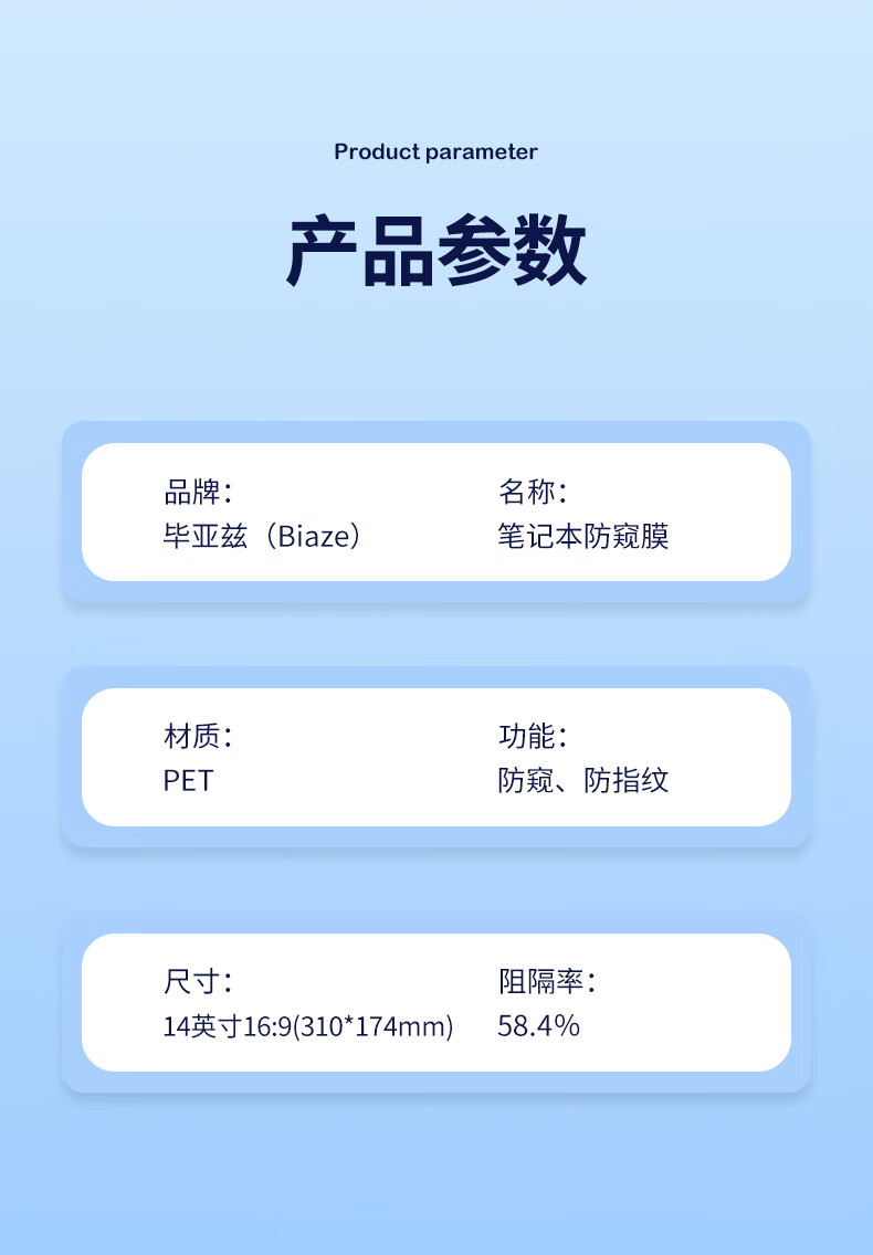毕亚兹 电脑防窥膜 显示器屏幕防窥片 通用笔记本台式电脑可拆卸 隐私屏幕保护膜14英寸(16:9)
