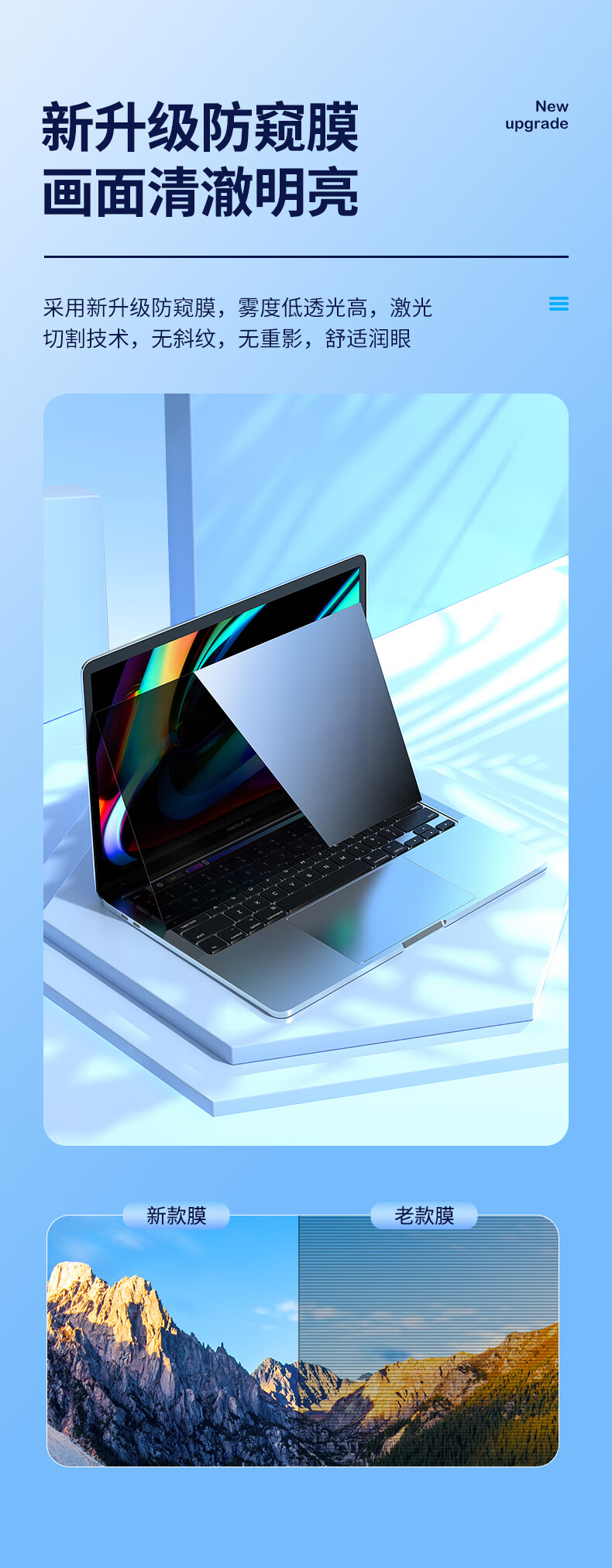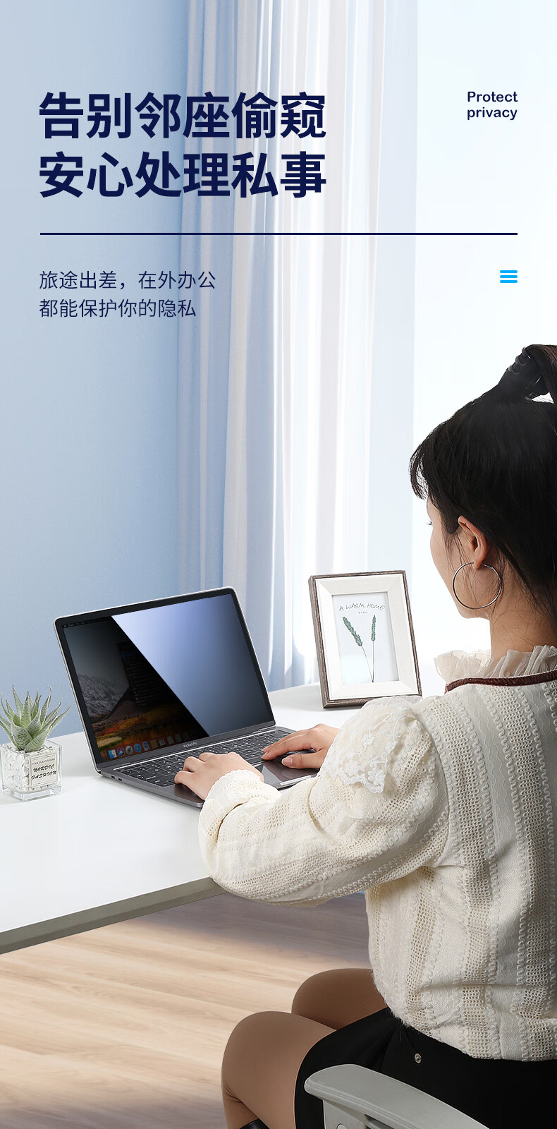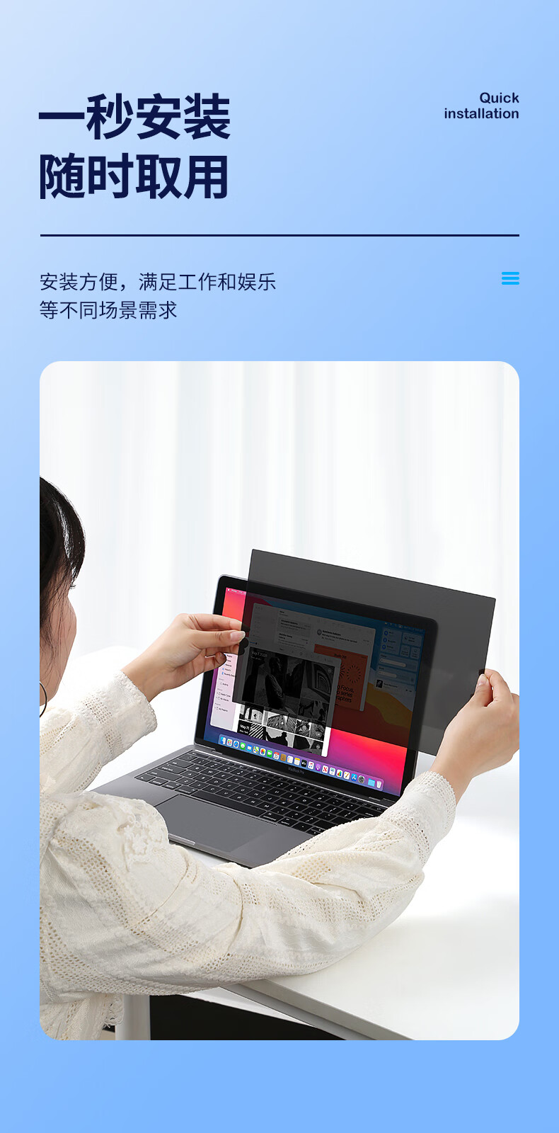 毕亚兹 电脑防窥膜 显示器屏幕防窥片 通用笔记本台式电脑可拆卸 隐私屏幕保护膜14英寸(16:9)