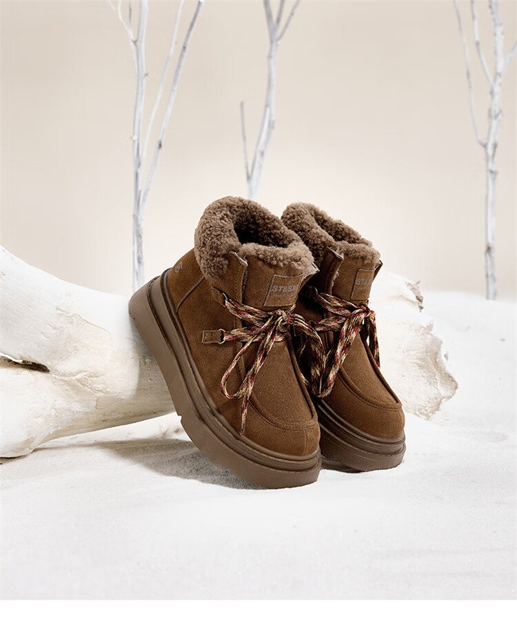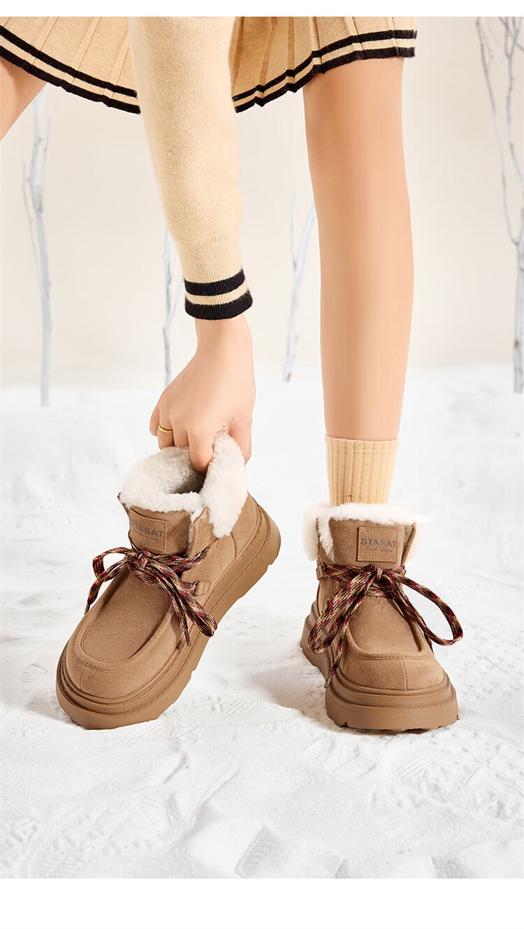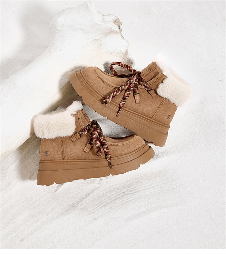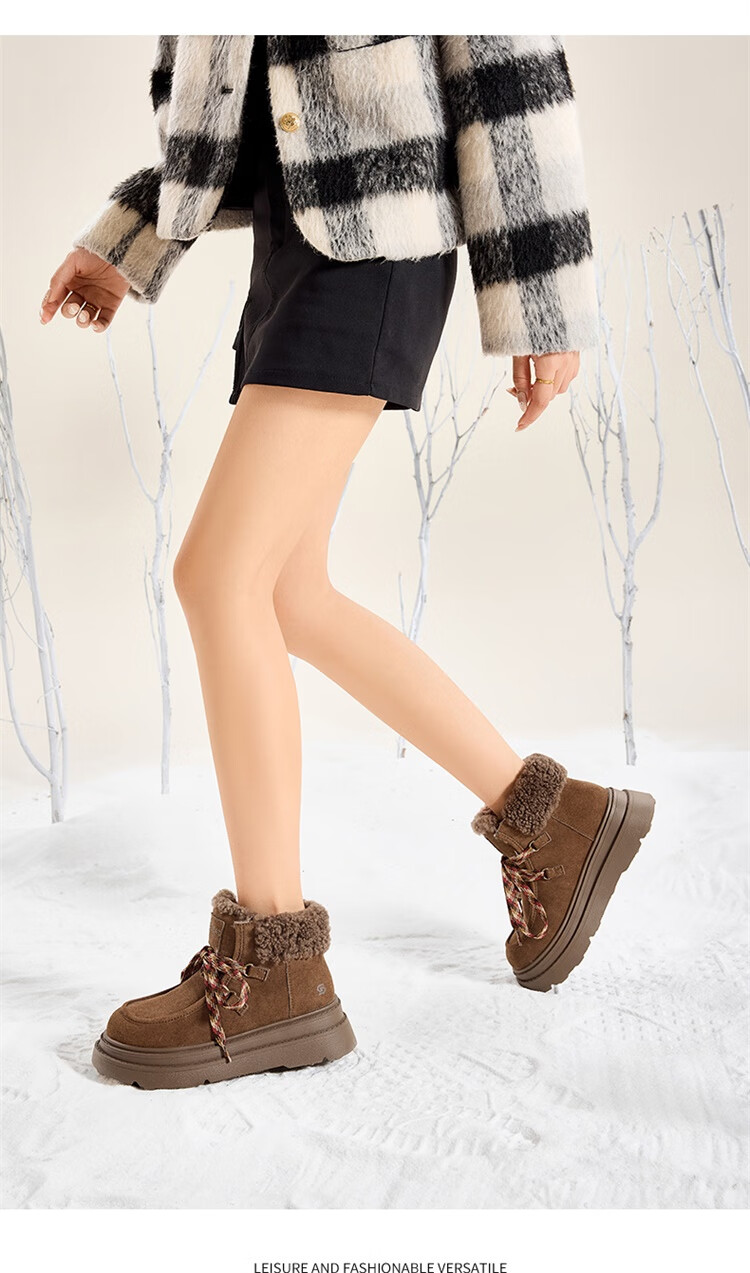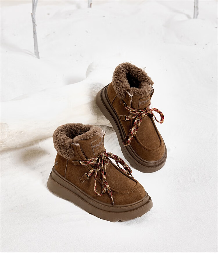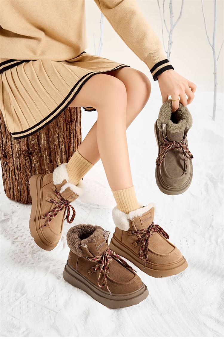 星期六厚底羊毛雪地靴女2025新款冬季复古短靴外穿防滑加绒加厚保暖棉鞋 驼色 【厚底羊毛】跟高5cm 38