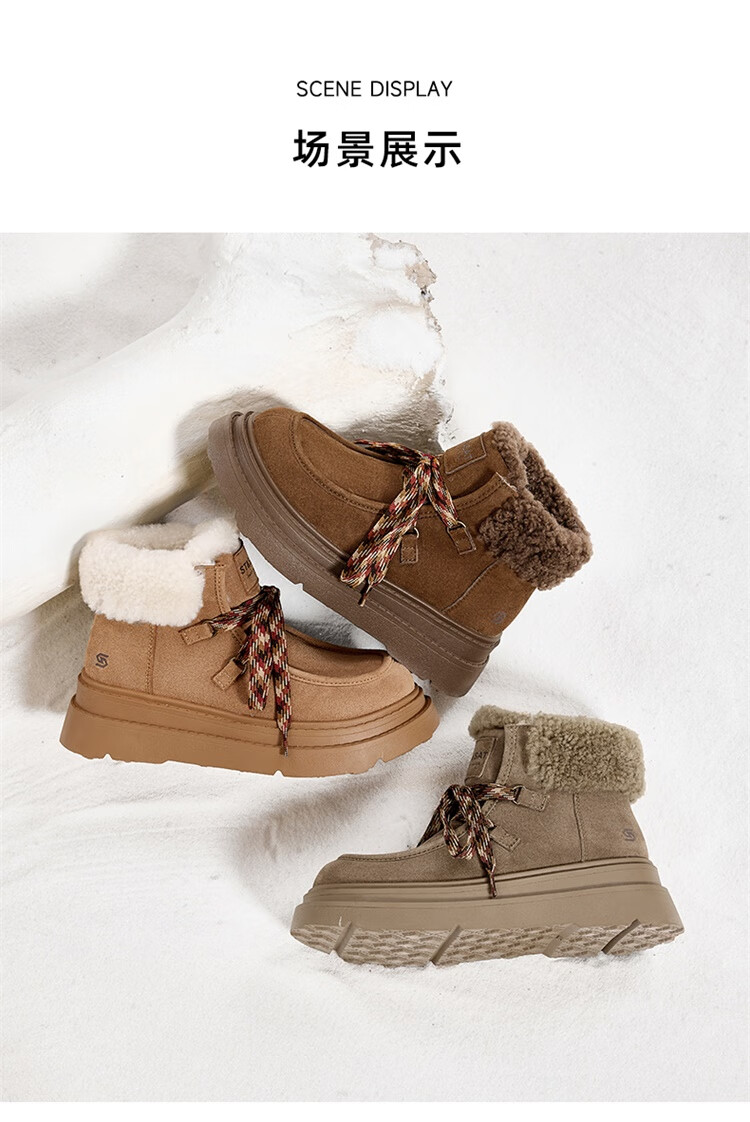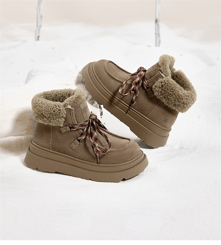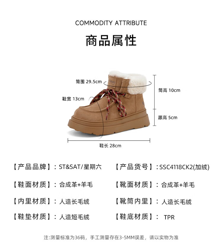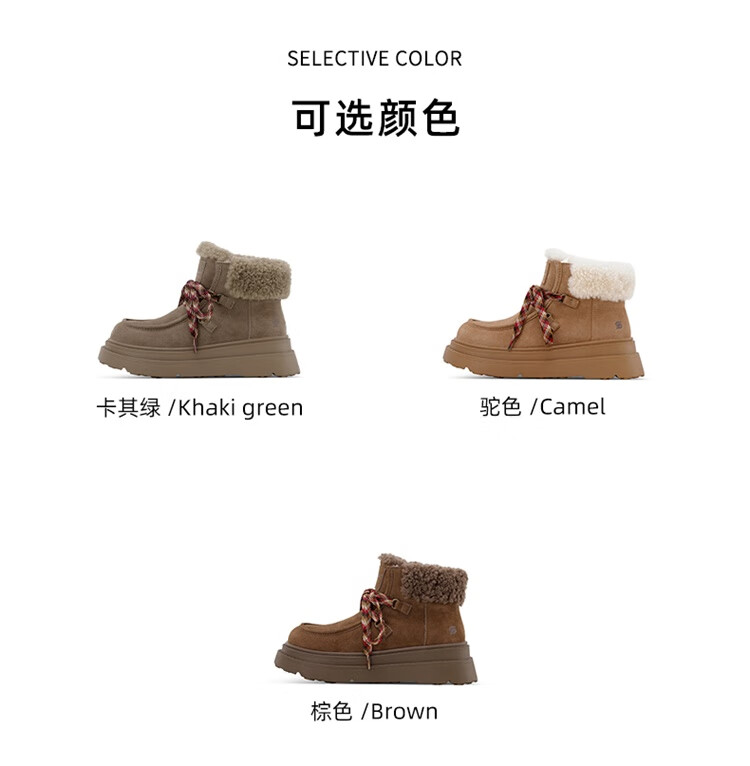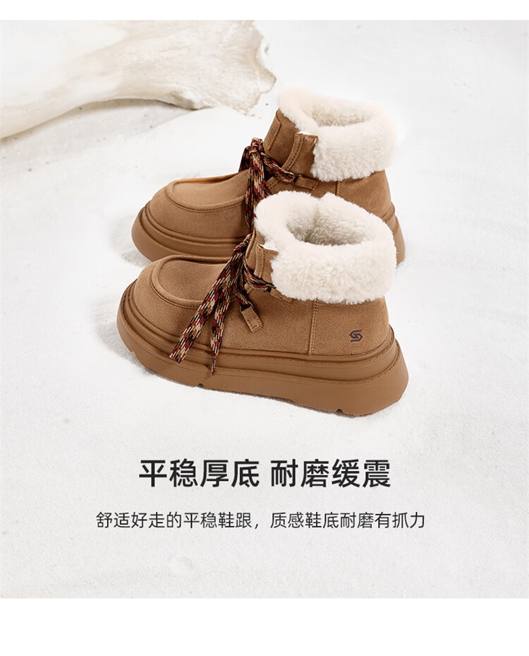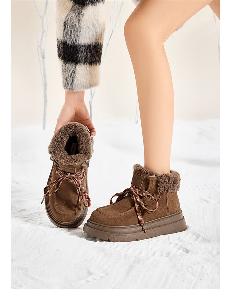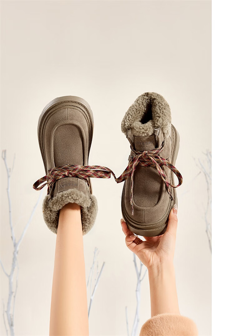 星期六厚底羊毛雪地靴女2025新款冬季复古短靴外穿防滑加绒加厚保暖棉鞋 驼色 【厚底羊毛】跟高5cm 38