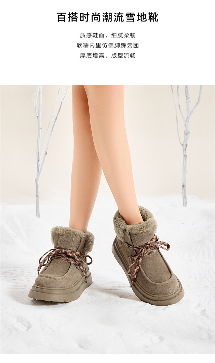 星期六加绒保暖雪地靴2025冬新款厚底百搭女靴短筒毛毛鞋东北棉鞋 卡其色 【加绒保暖】 37