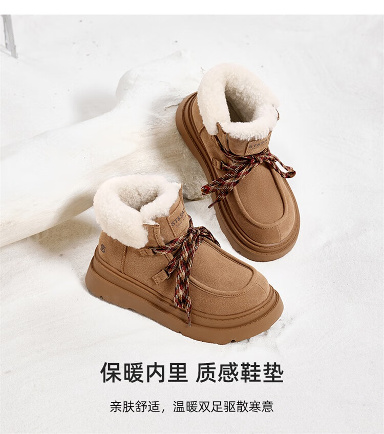 星期六加绒保暖雪地靴2025冬新款厚底百搭女靴短筒毛毛鞋东北棉鞋 驼色 【加绒保暖】 37