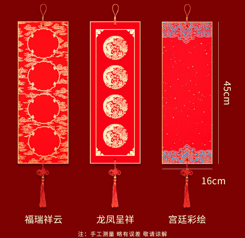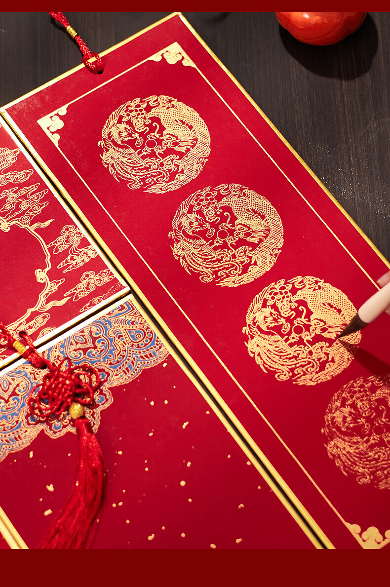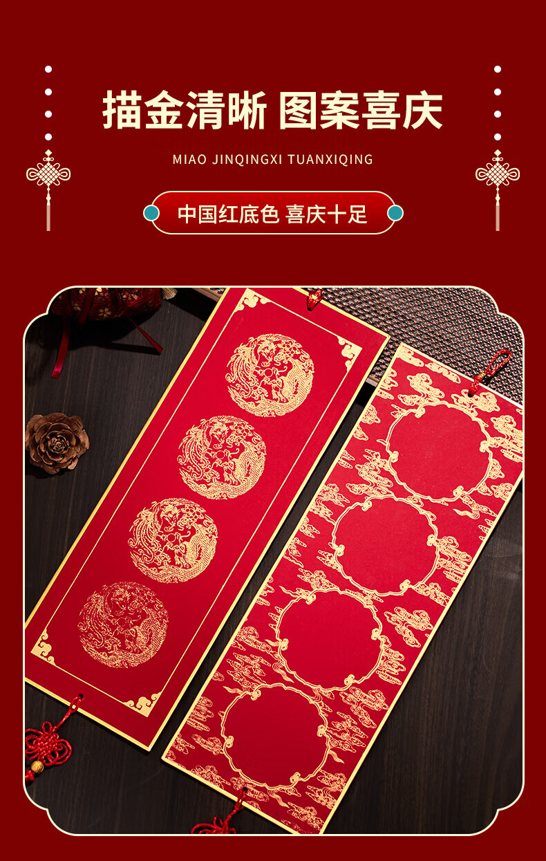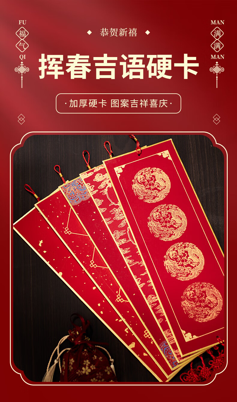 玉水湖福字斗方硬卡加厚蜡染空白斗方书法毛笔新年中国结挂饰写福字卡纸2026新款福卡挂件 龙凤呈祥10个