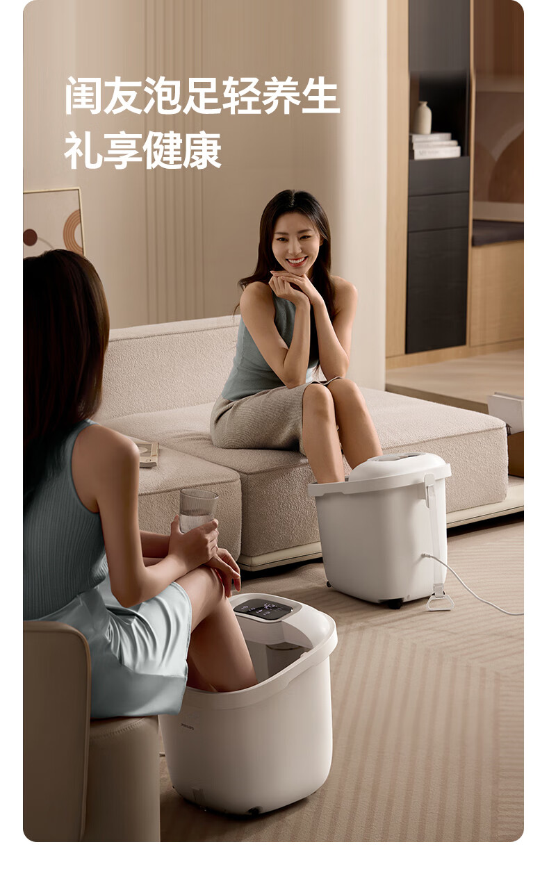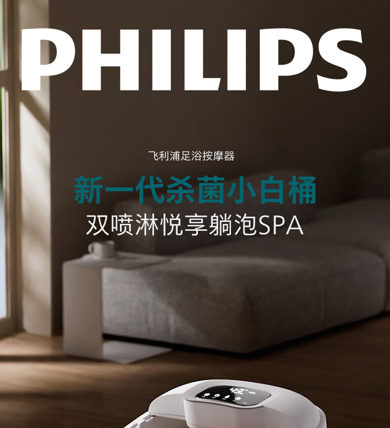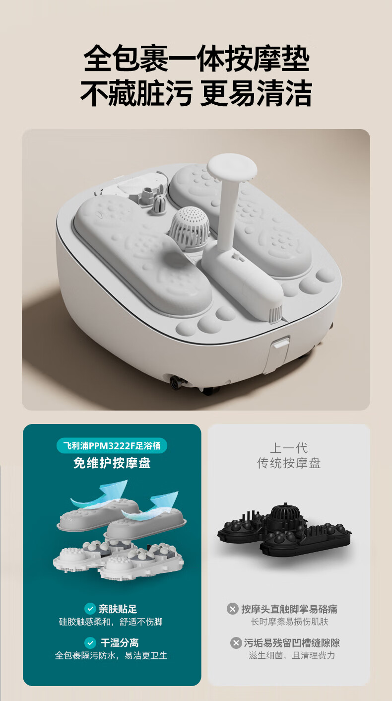 飞利浦(PHILIPS)泡脚桶躺泡免洗电动按摩足浴盆UV杀菌小白桶智能恒温加热软胶泡脚盆3222F 新年礼物实用生日礼物
