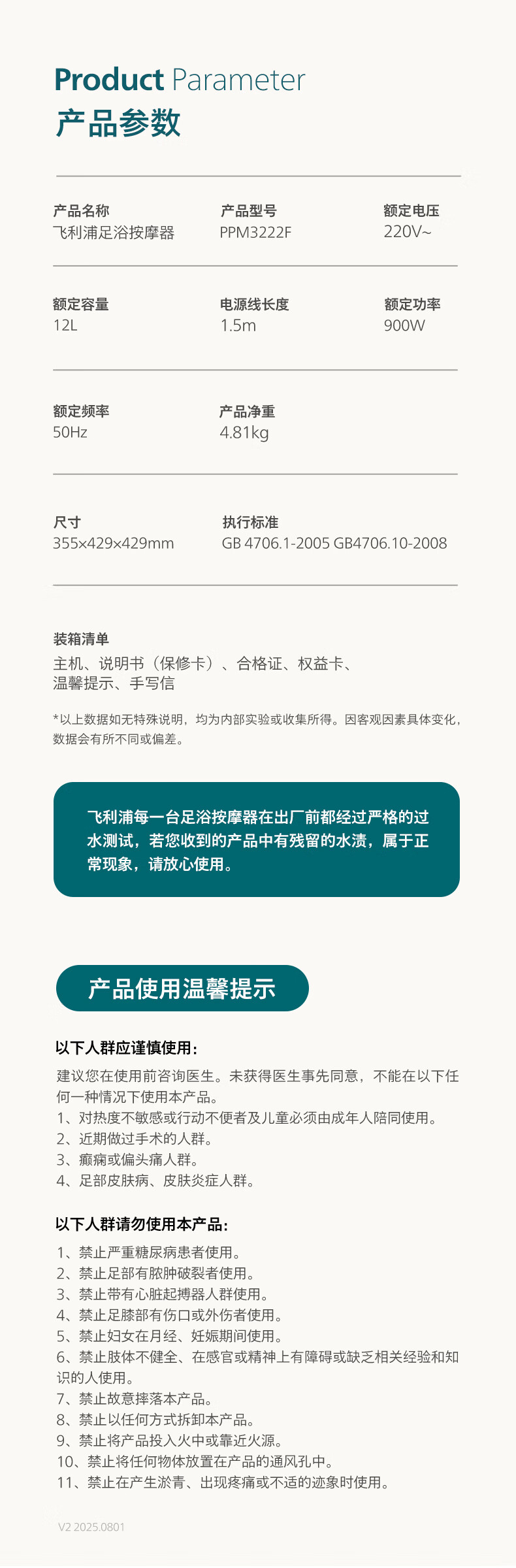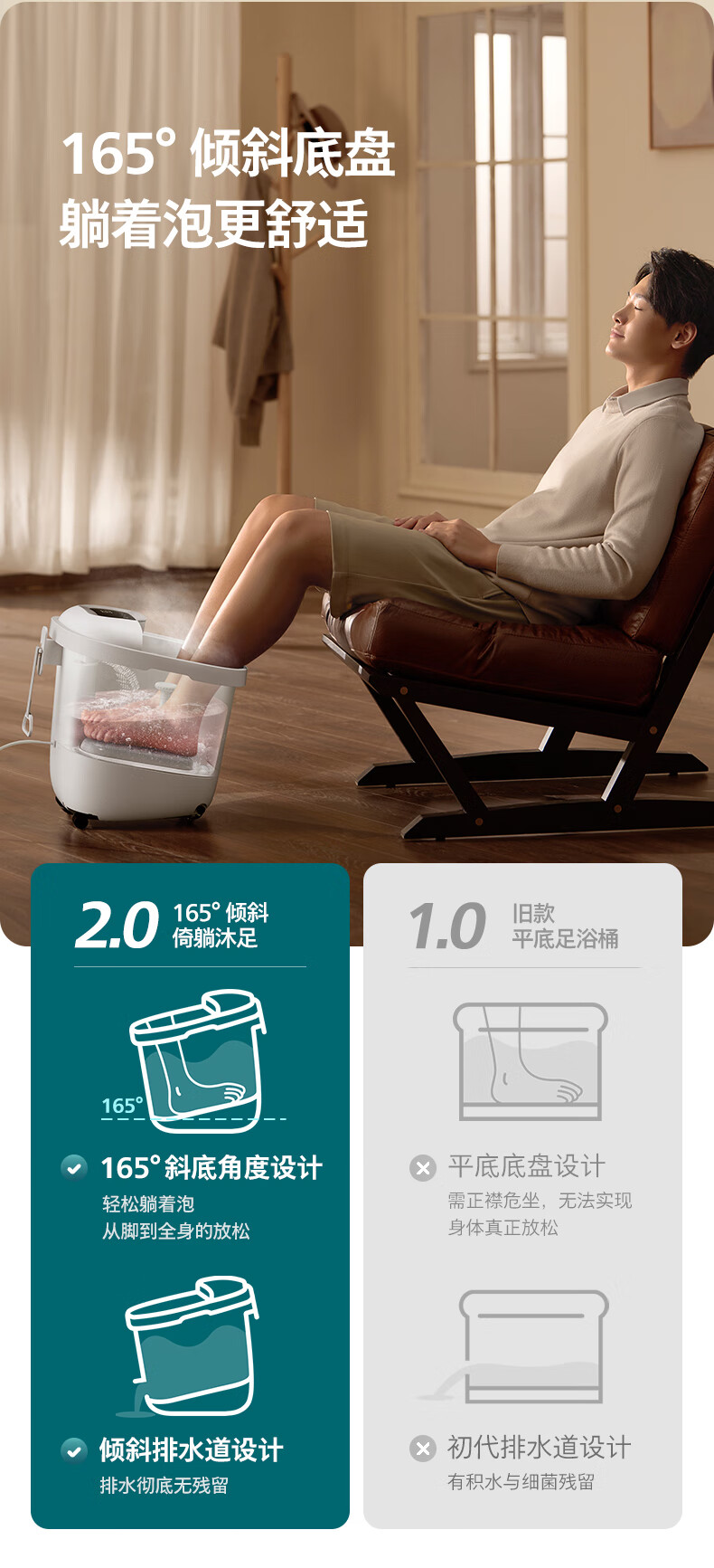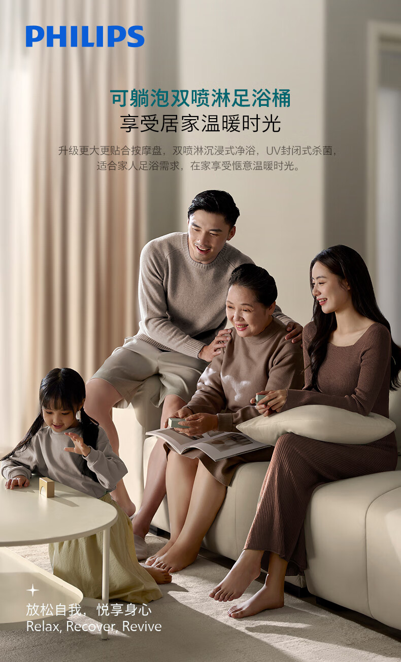 飞利浦(PHILIPS)泡脚桶躺泡免洗电动按摩足浴盆UV杀菌小白桶智能恒温加热软胶泡脚盆3222F 新年礼物实用生日礼物