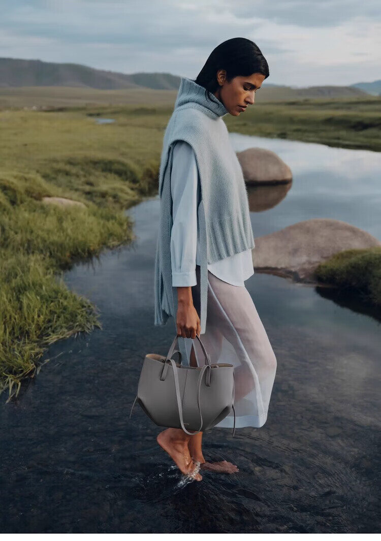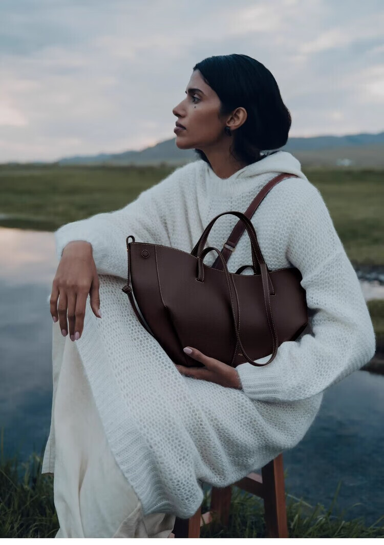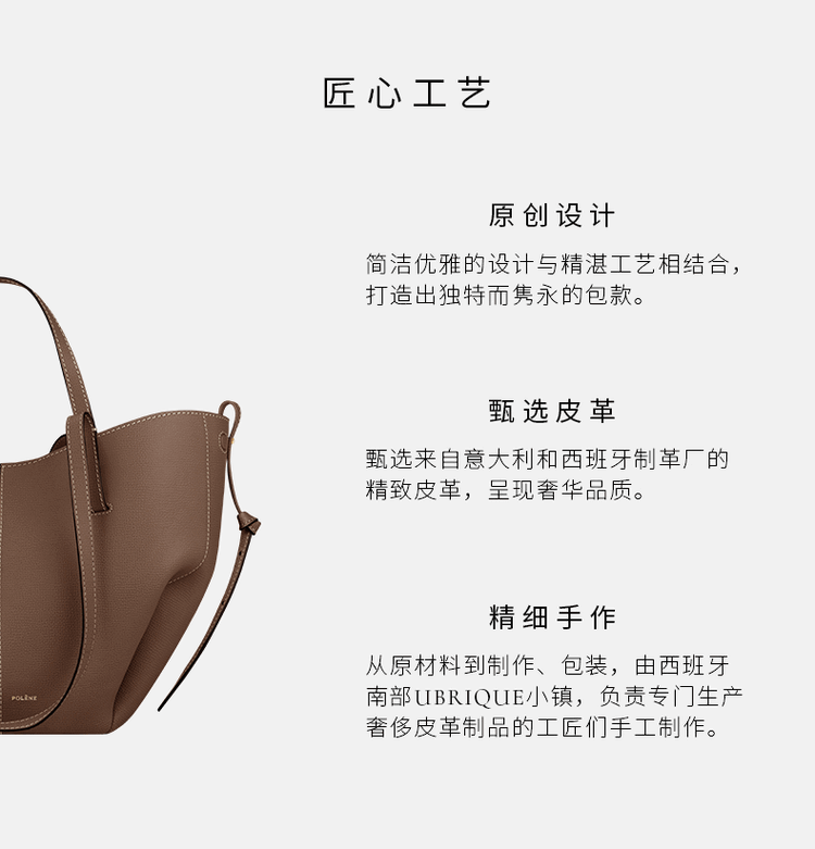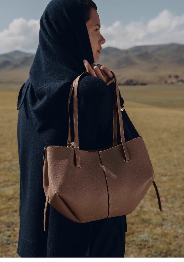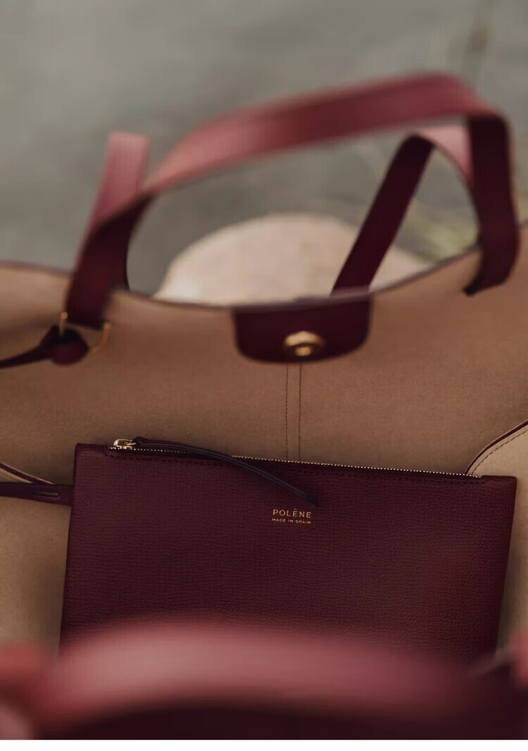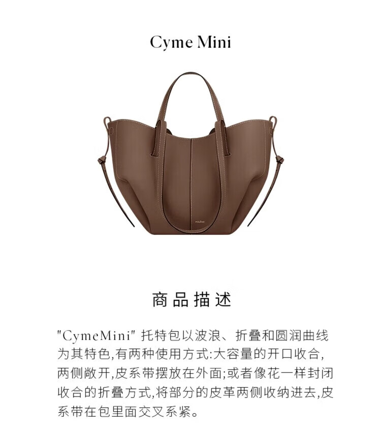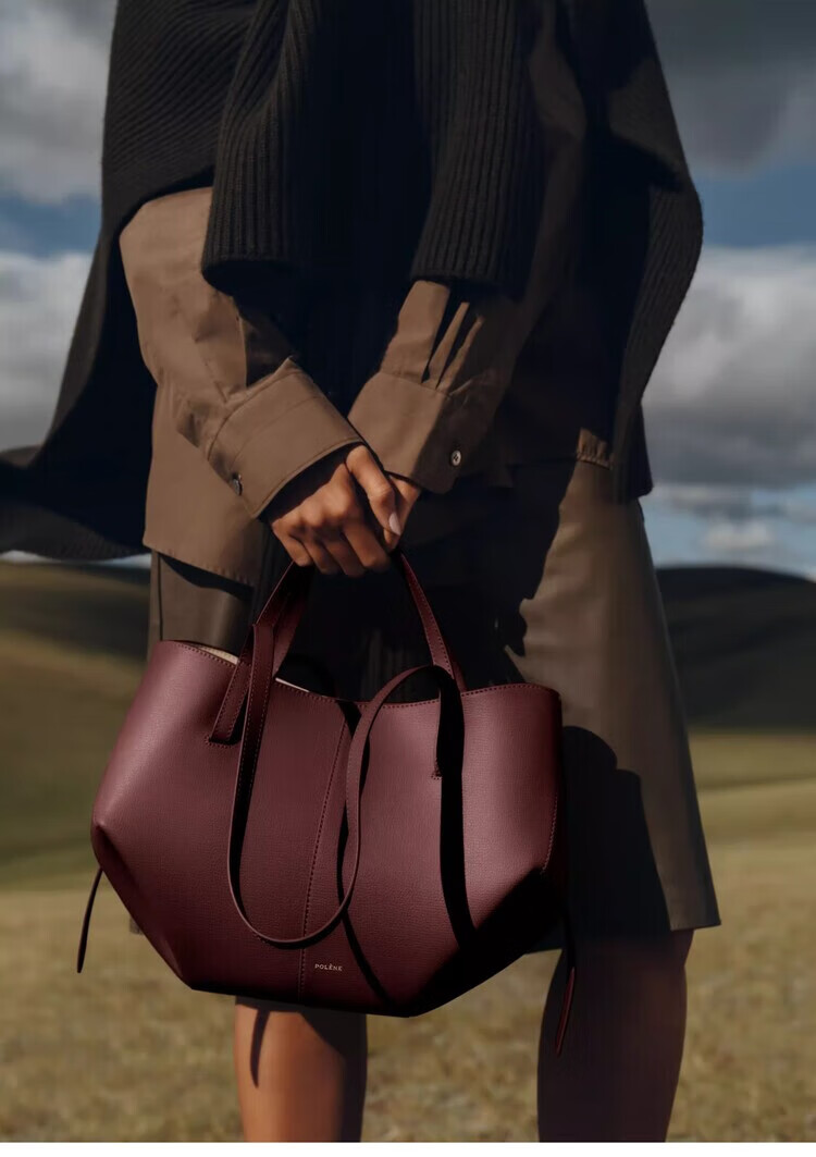 Polene波灵恩【新品】Cyme Mini 荔枝牛皮手提单肩托特包 栗色