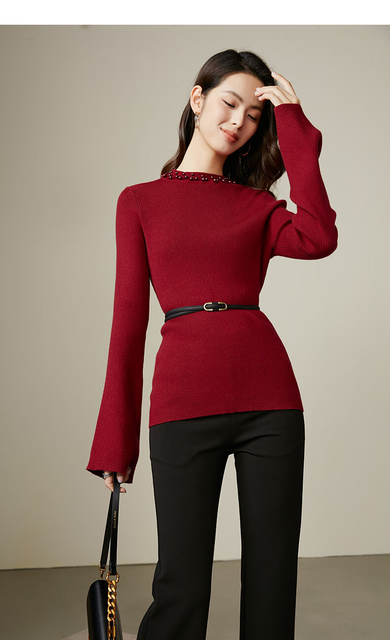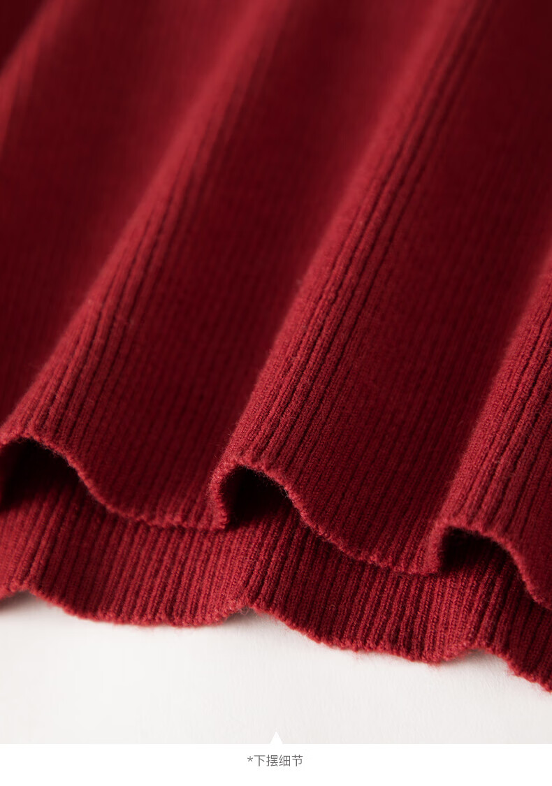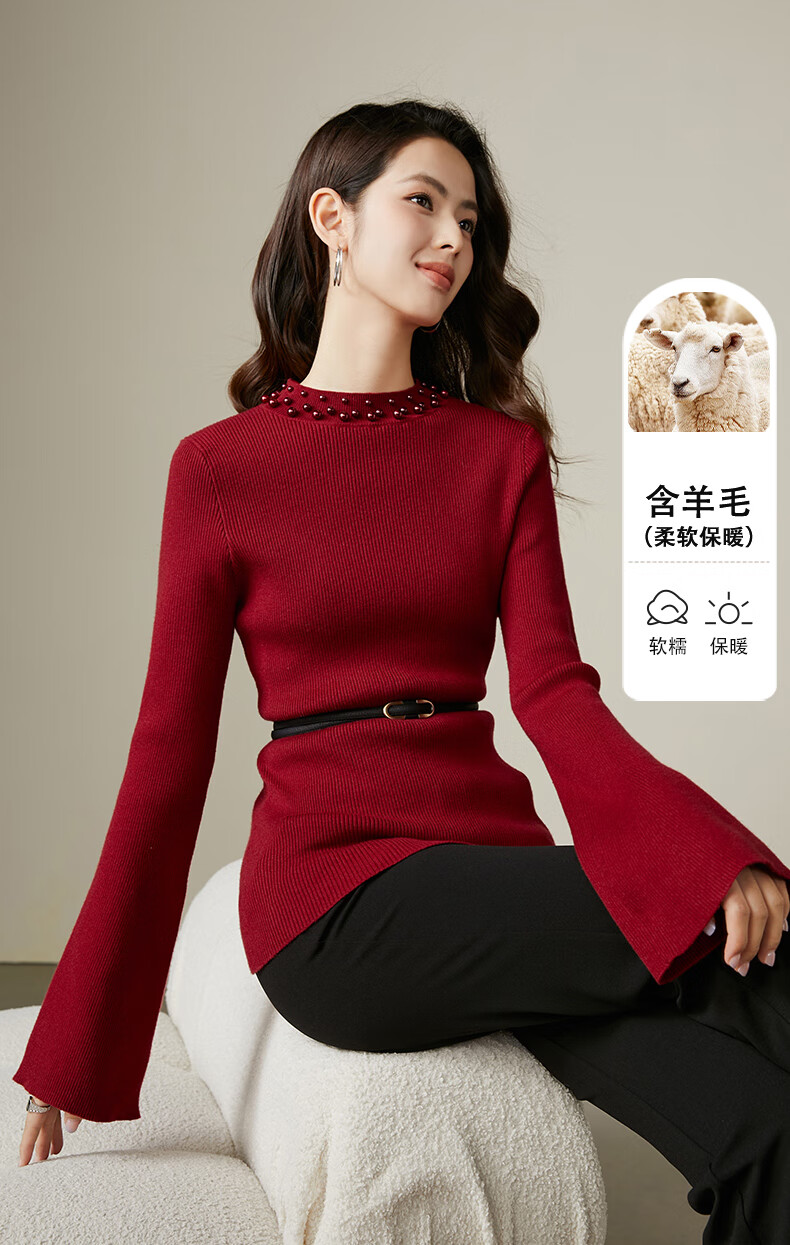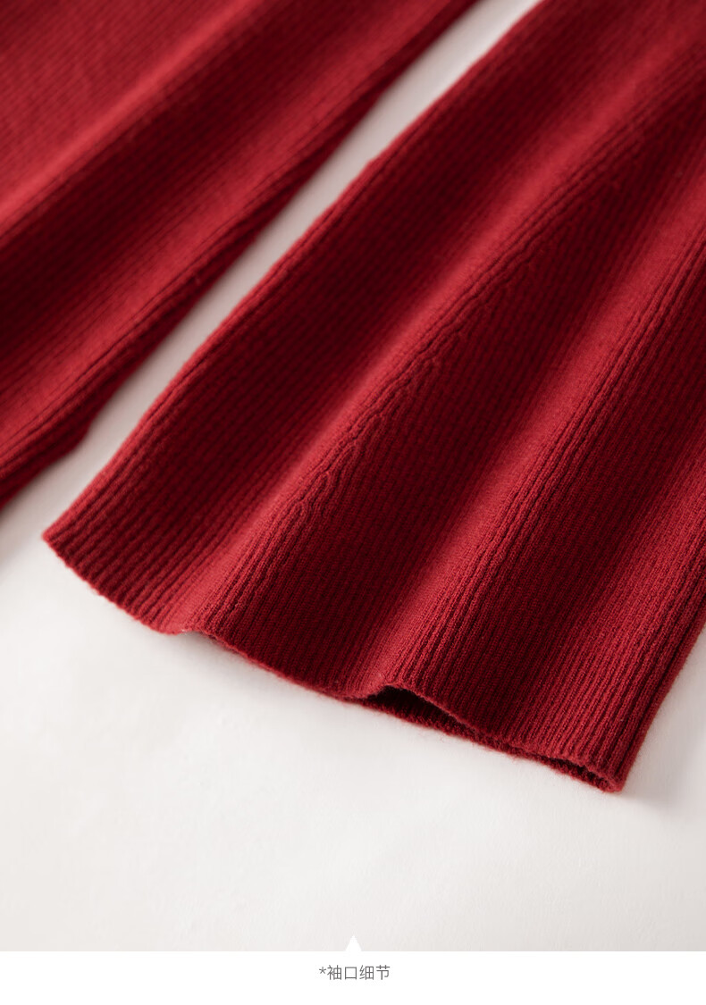晚白【新品】骐骥红冬款时尚含羊毛柔软舒适针织衫【不含腰带】 红色 S