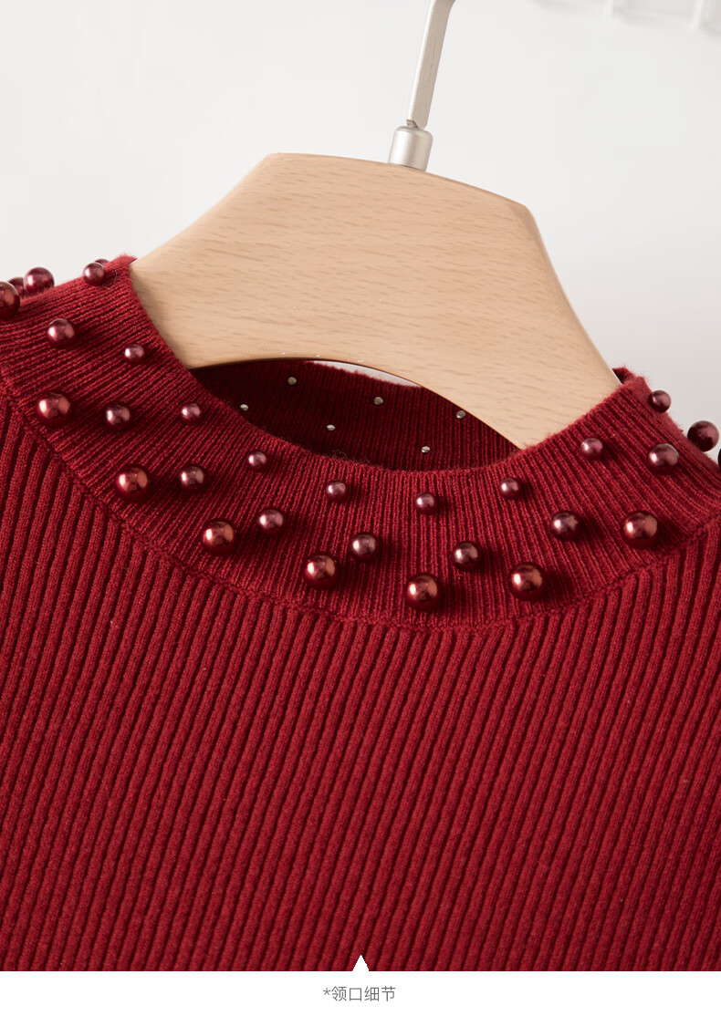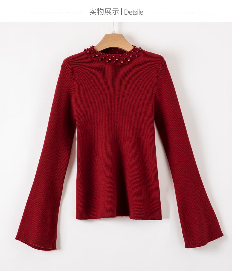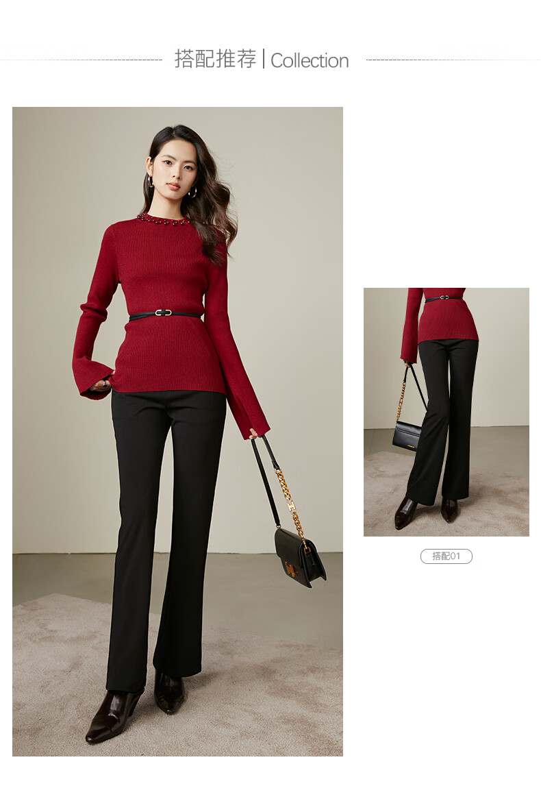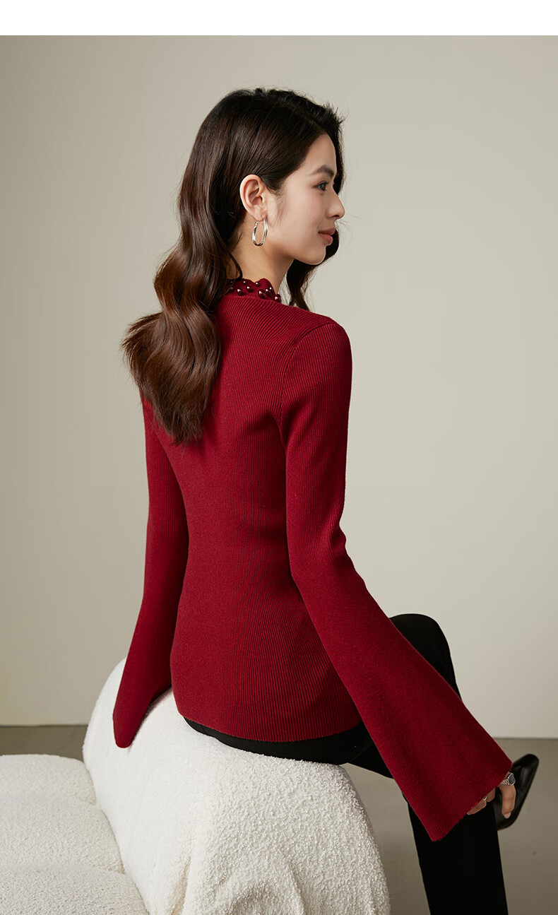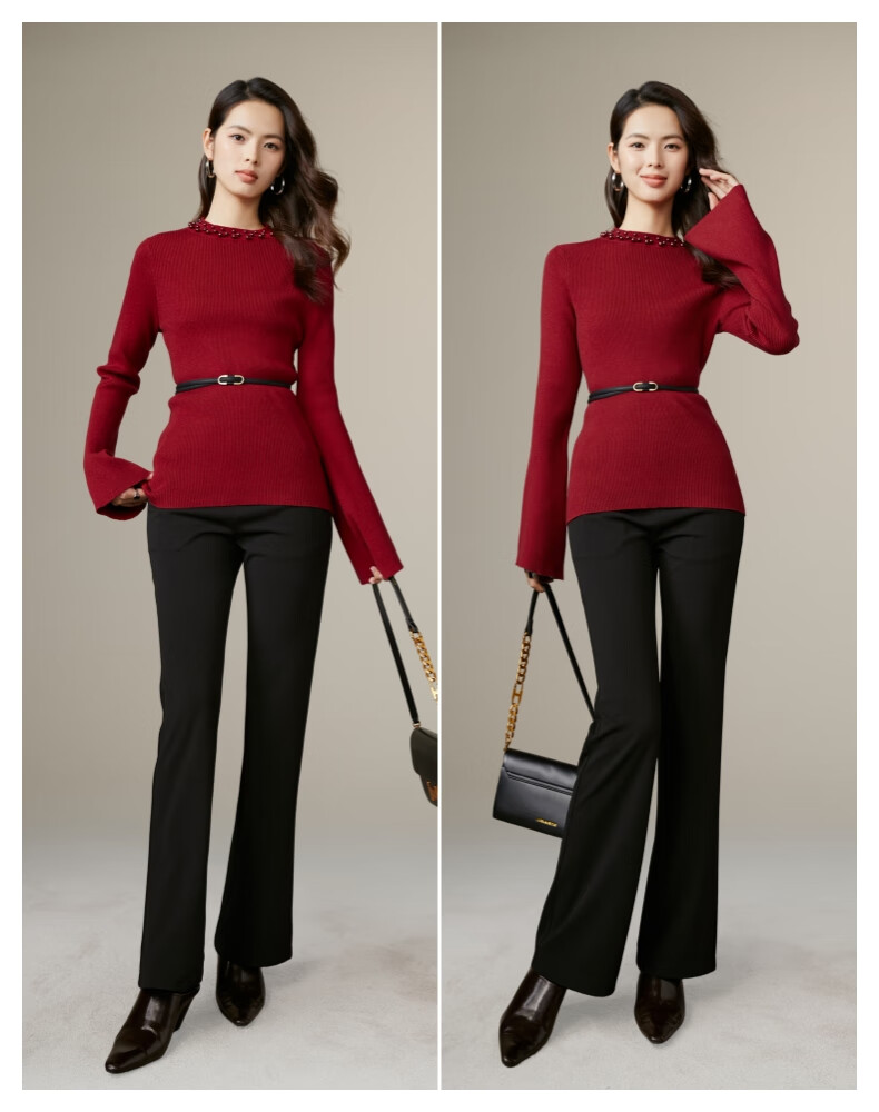 晚白【新品】骐骥红冬款时尚含羊毛柔软舒适针织衫【不含腰带】 红色 S