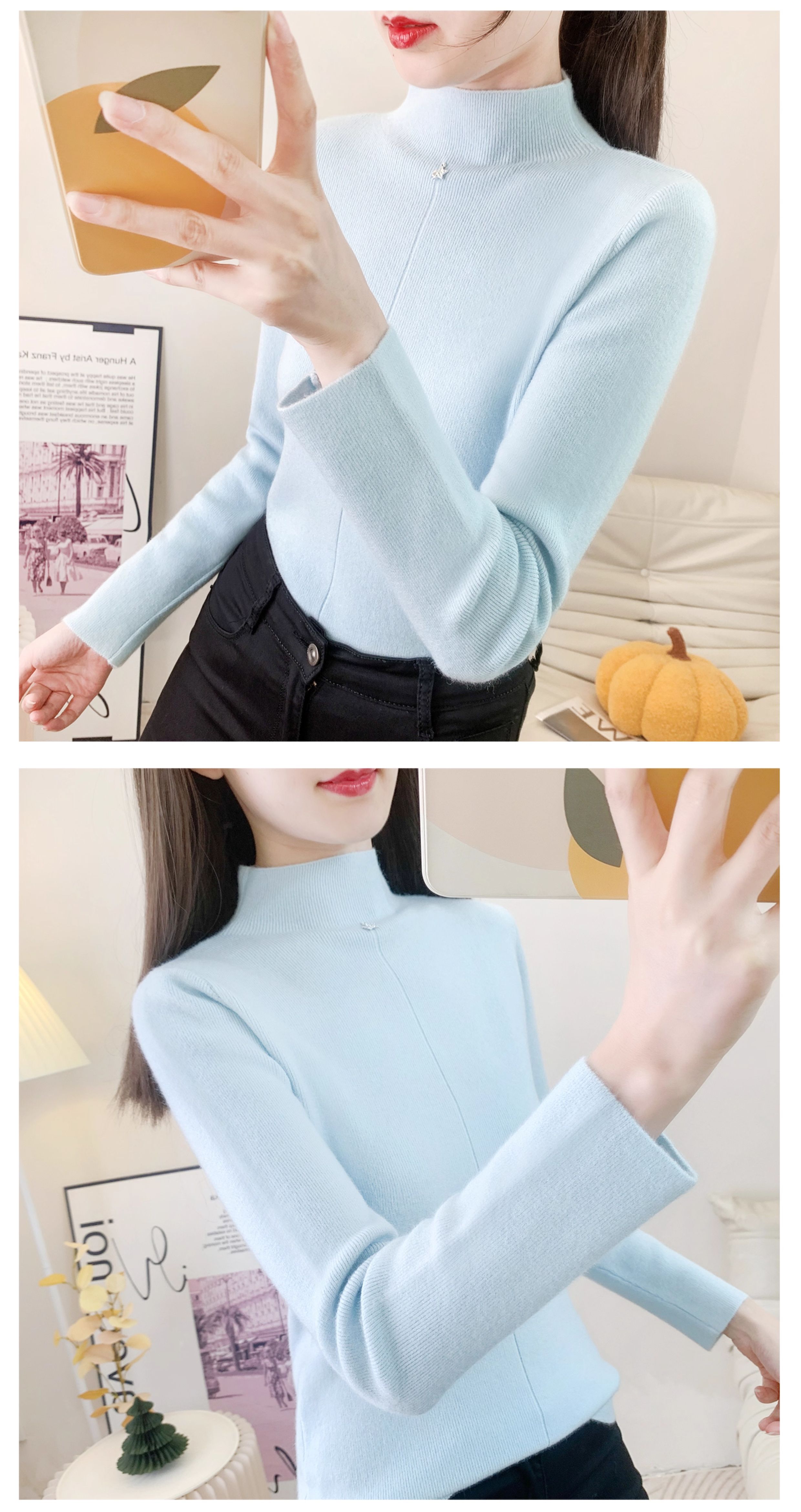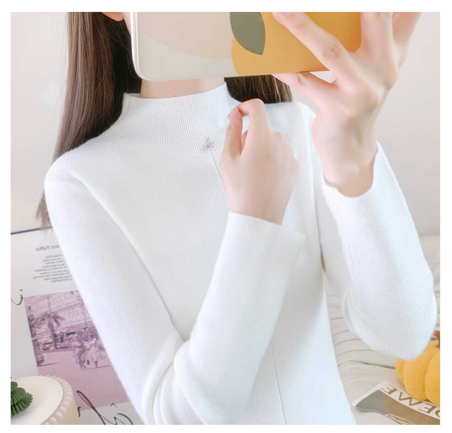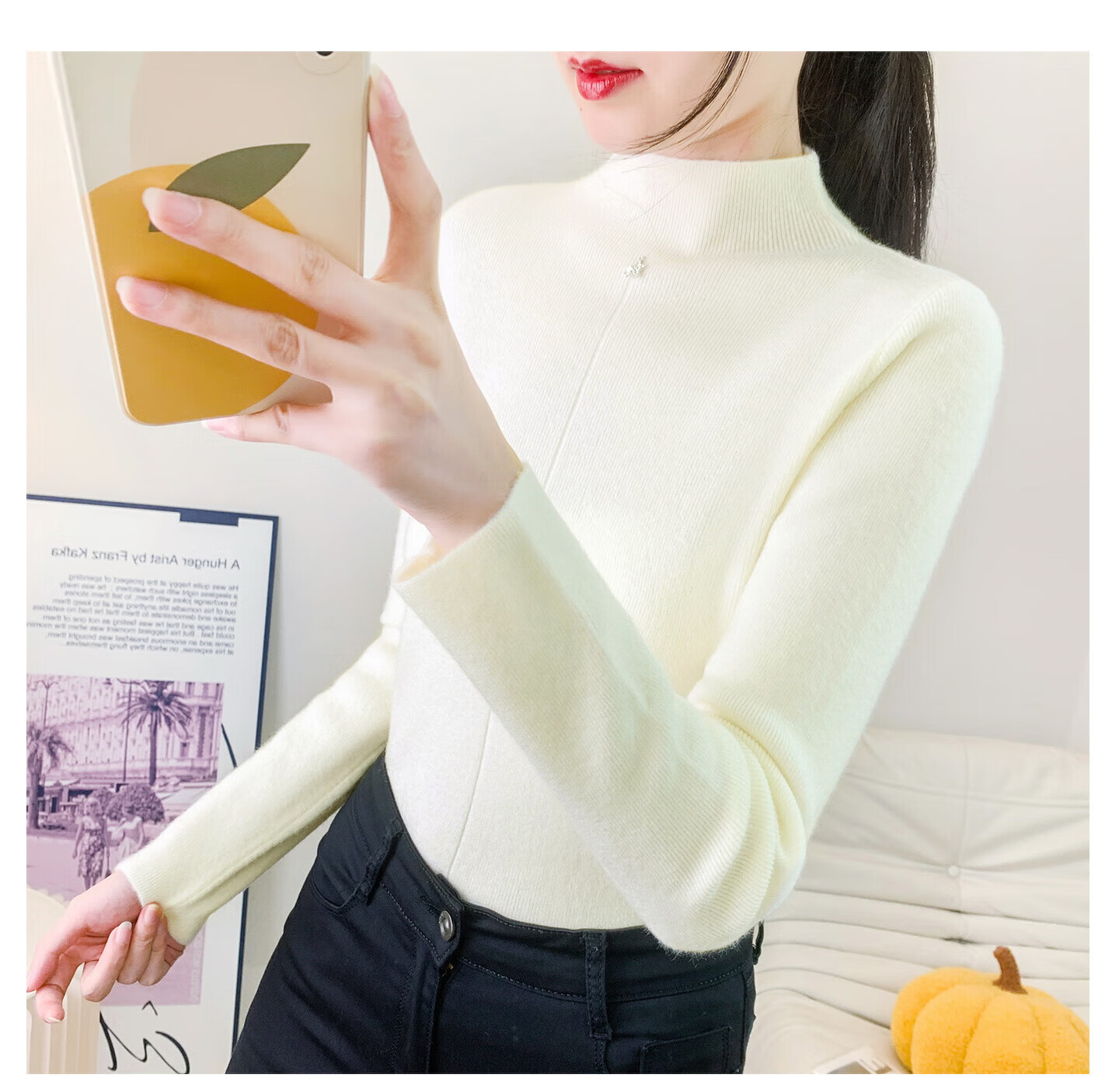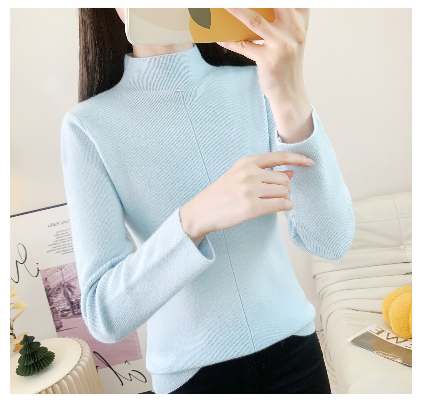 香影纯半高领毛衣打底衫2025新款女秋冬氛围感穿搭上衣温柔风百搭针织衫 蓝色 S (建议95-105斤)