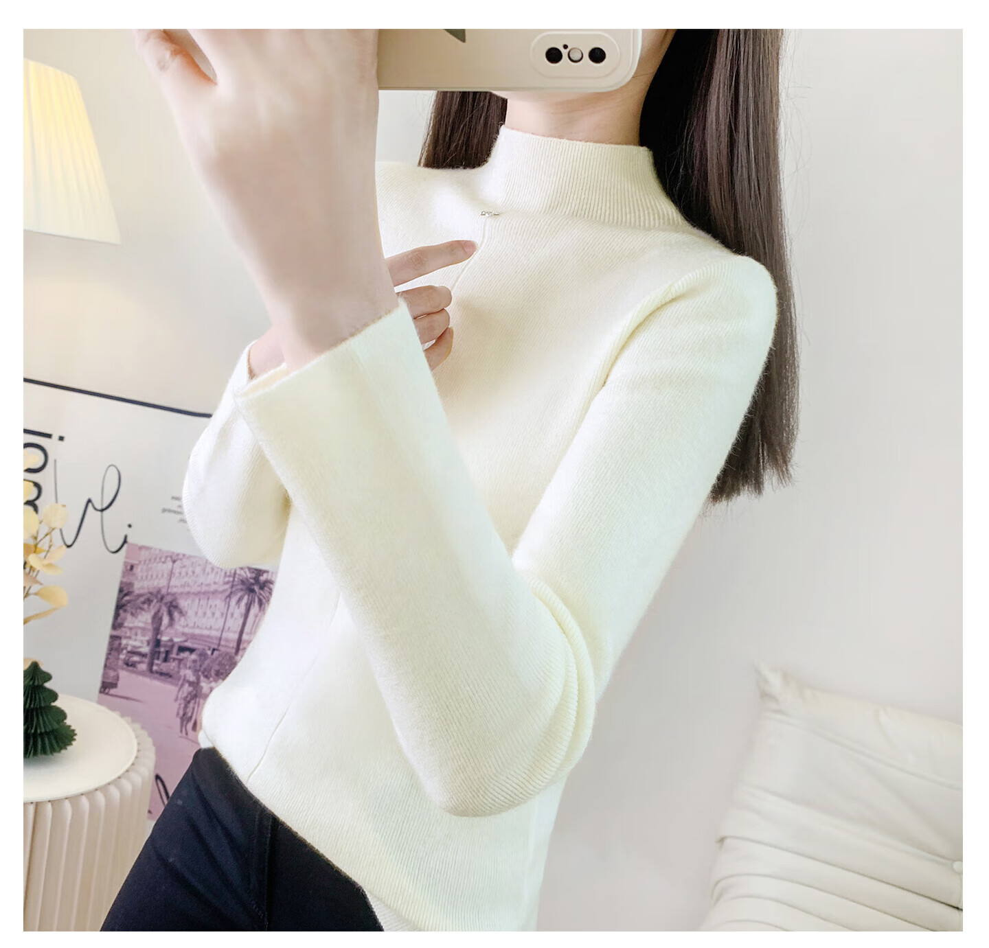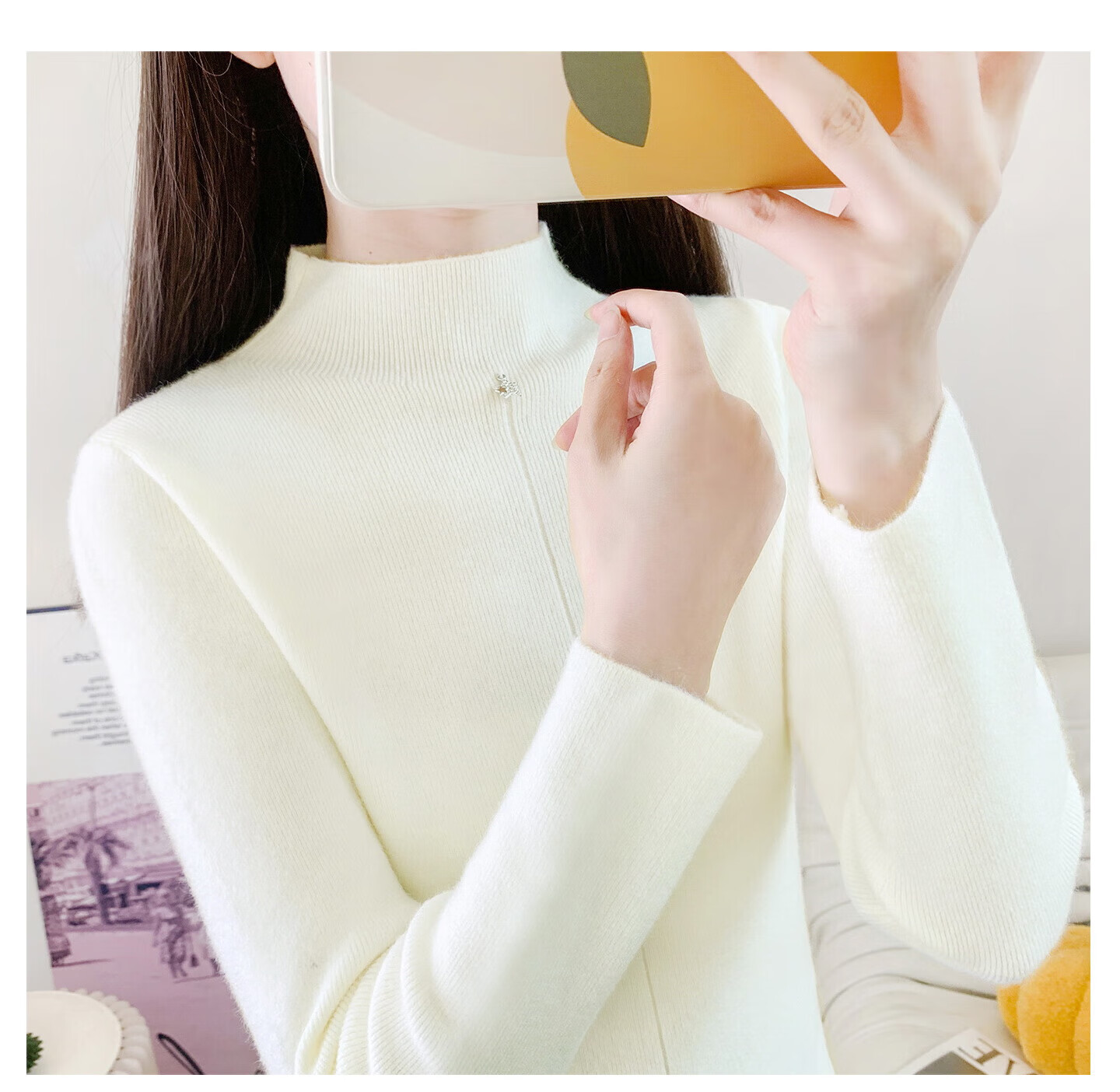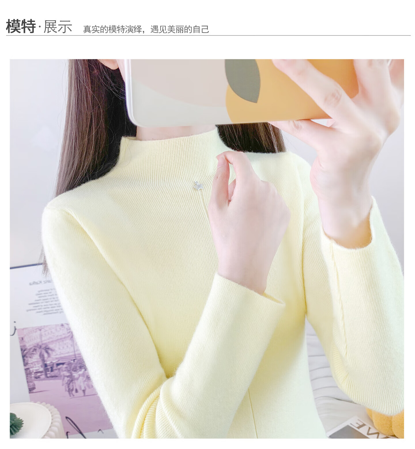 香影纯半高领毛衣打底衫2025新款女秋冬氛围感穿搭上衣温柔风百搭针织衫 蓝色 S (建议95-105斤)