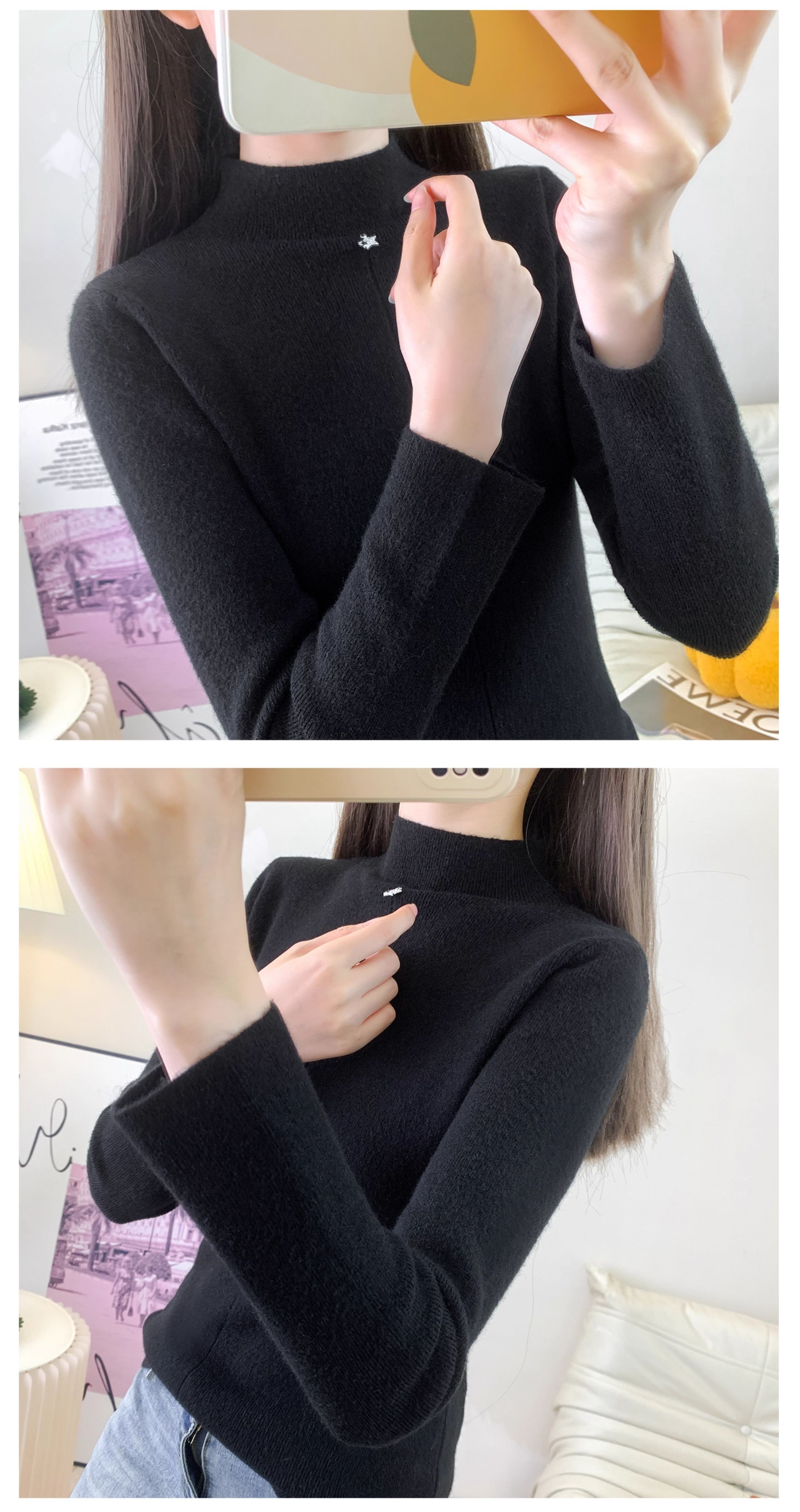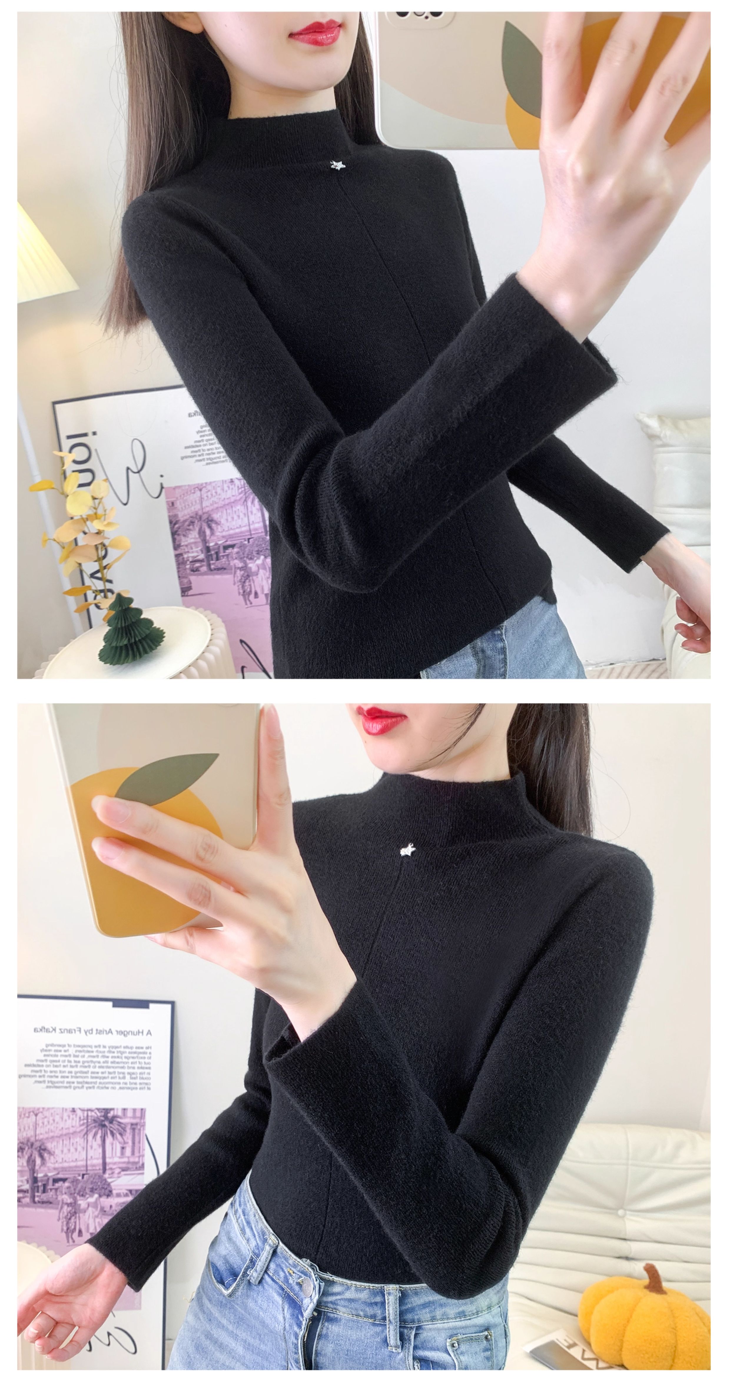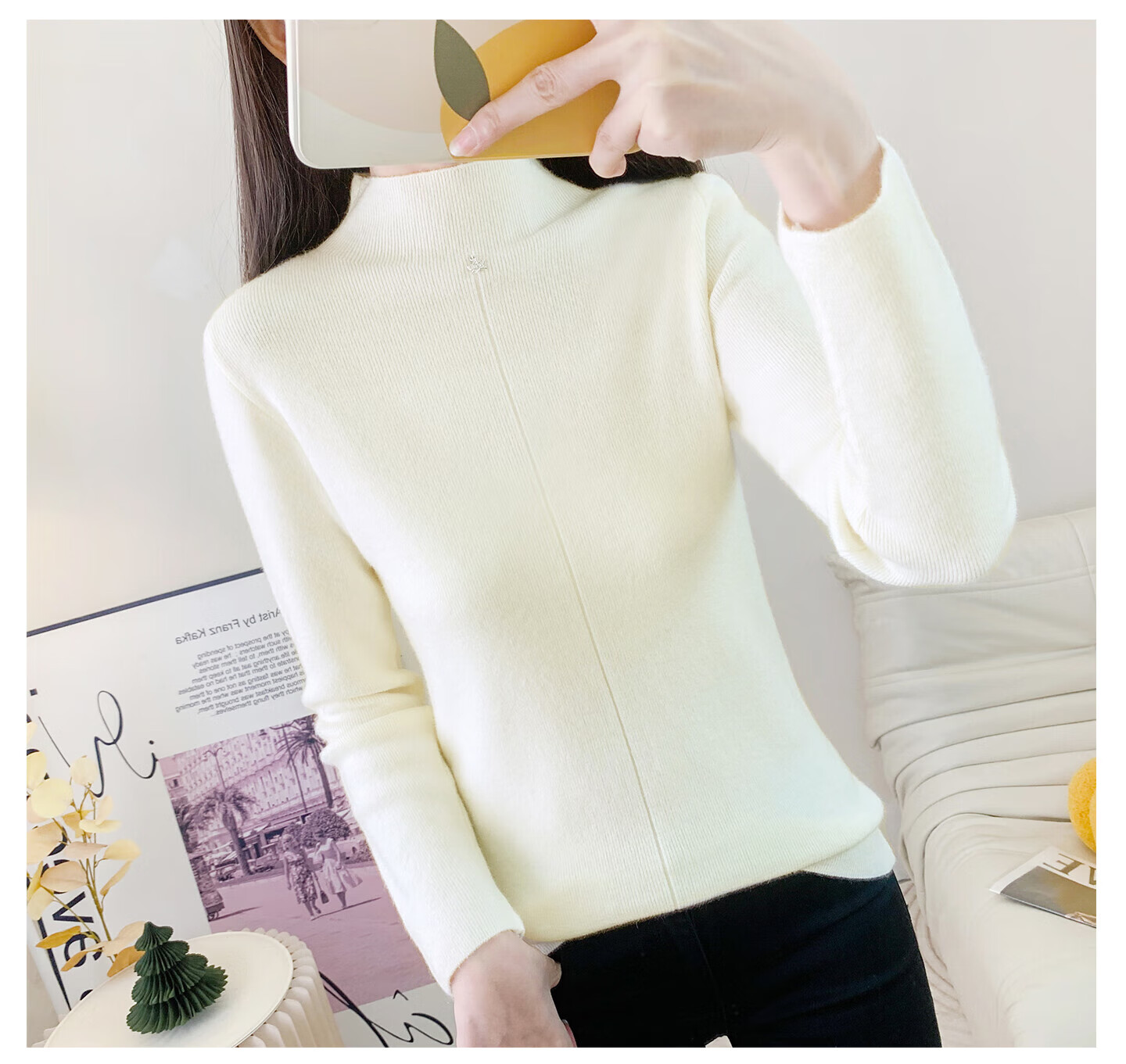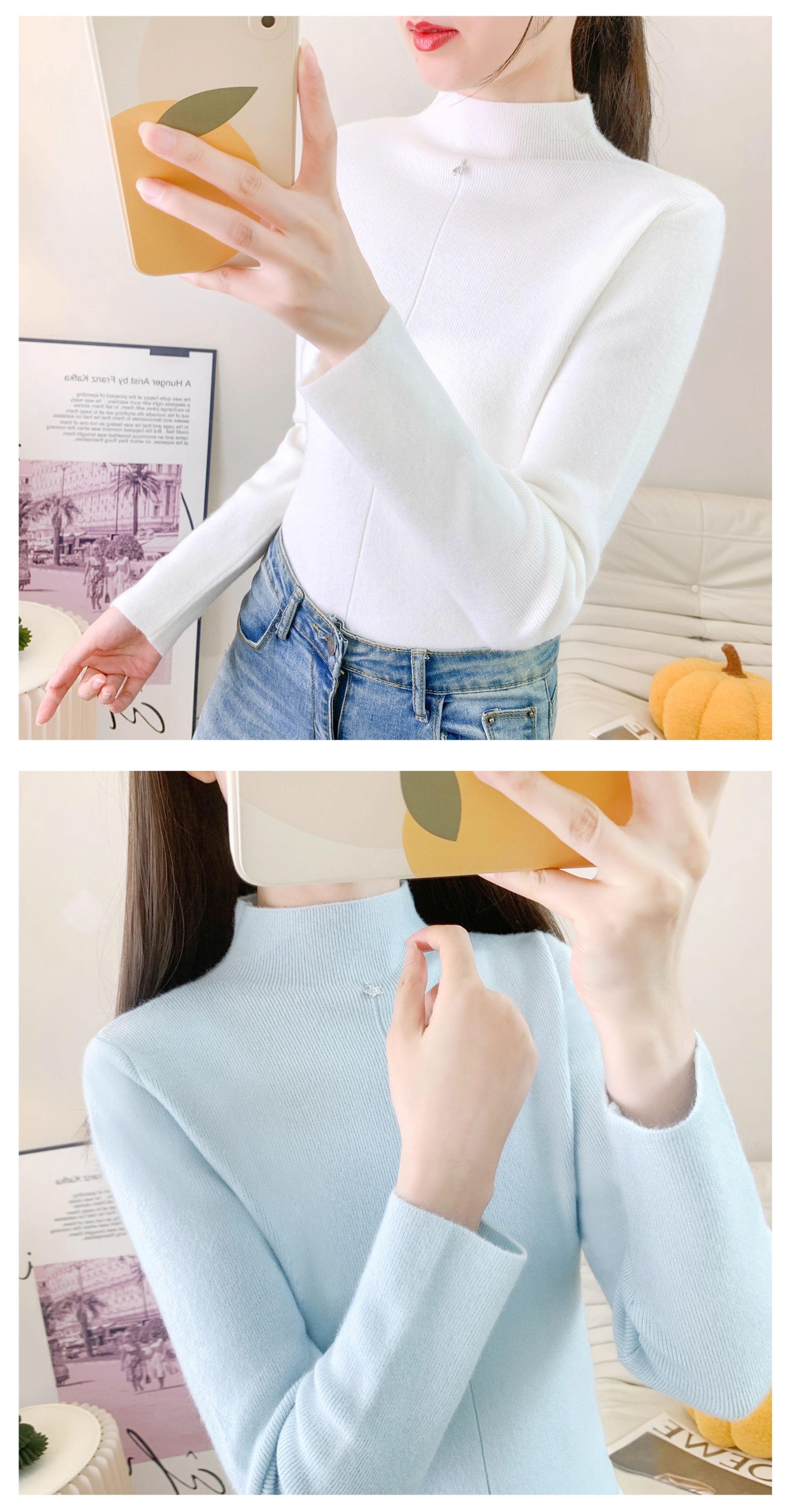 香影纯半高领毛衣打底衫2025新款女秋冬氛围感穿搭上衣温柔风百搭针织衫 蓝色 S (建议95-105斤)