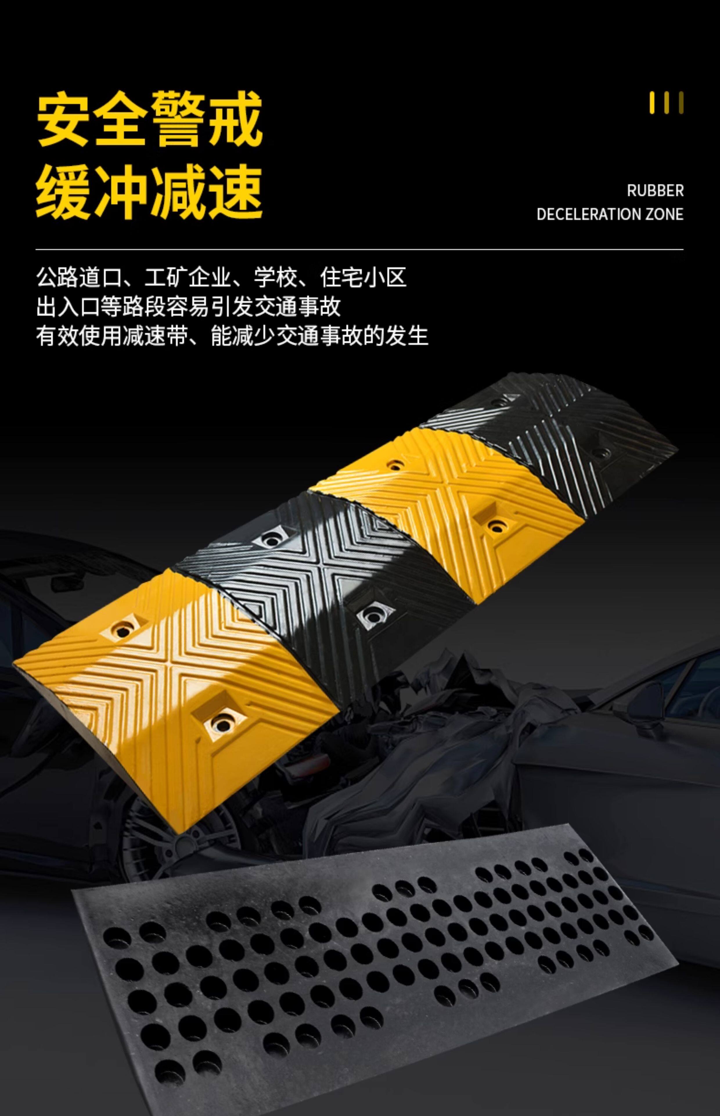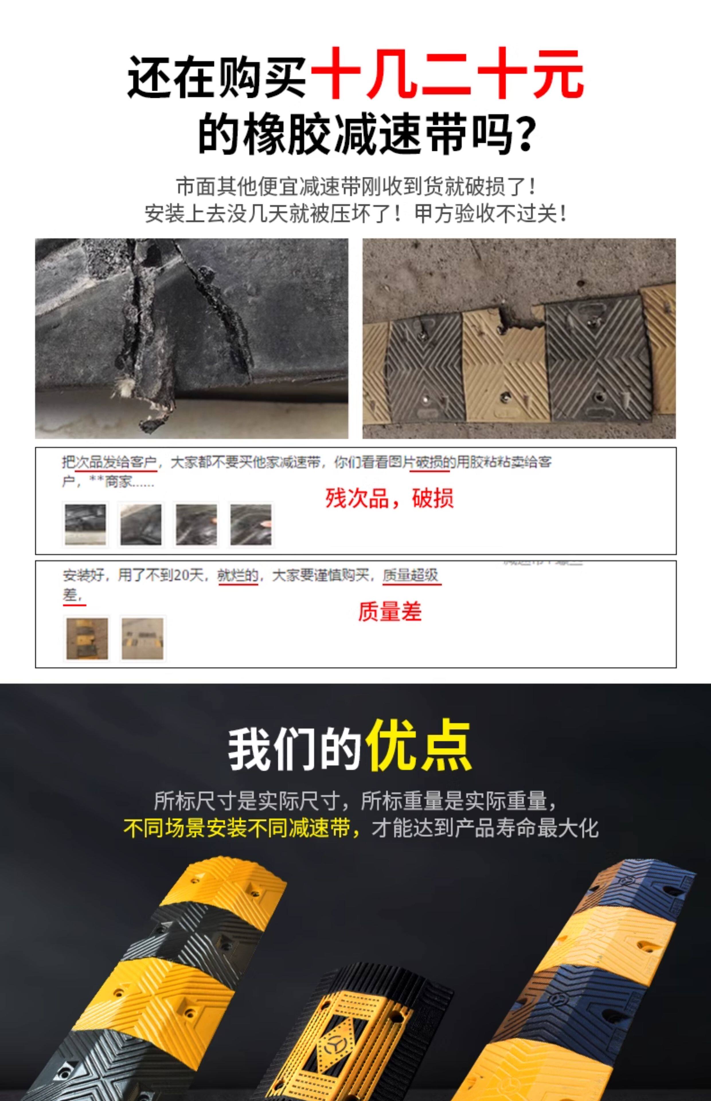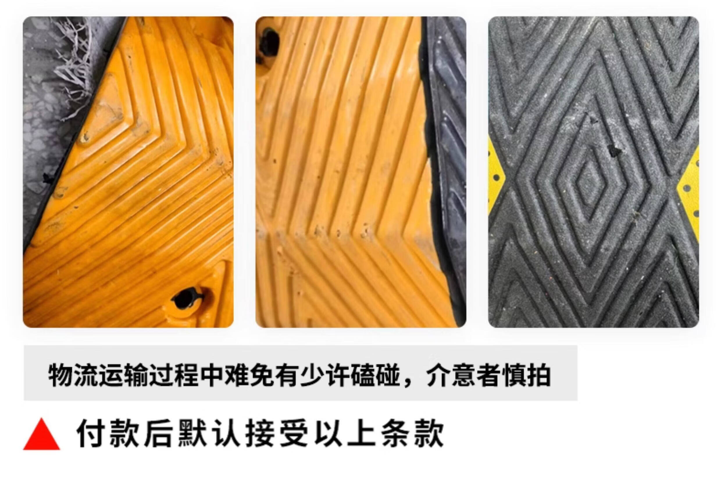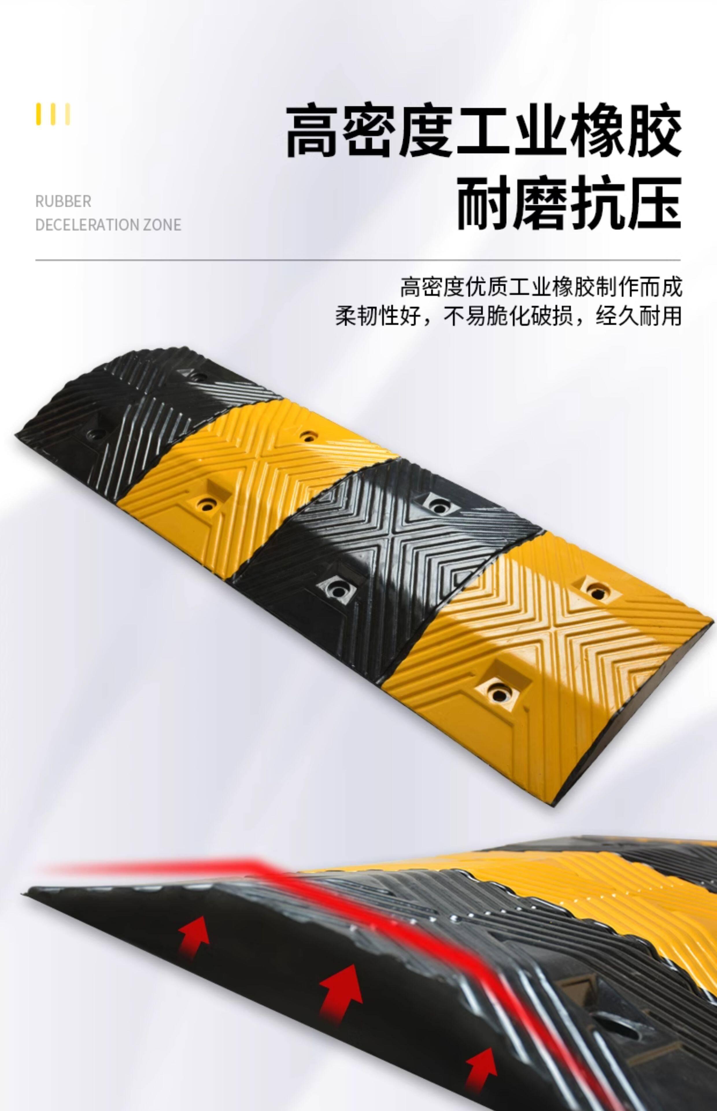 路喜加厚橡胶减速带橡塑缓冲带公路道路减速板汽车限速垄地下车库加油站地面路障 橡胶人字形100*30*3CM【小区入口首选】
