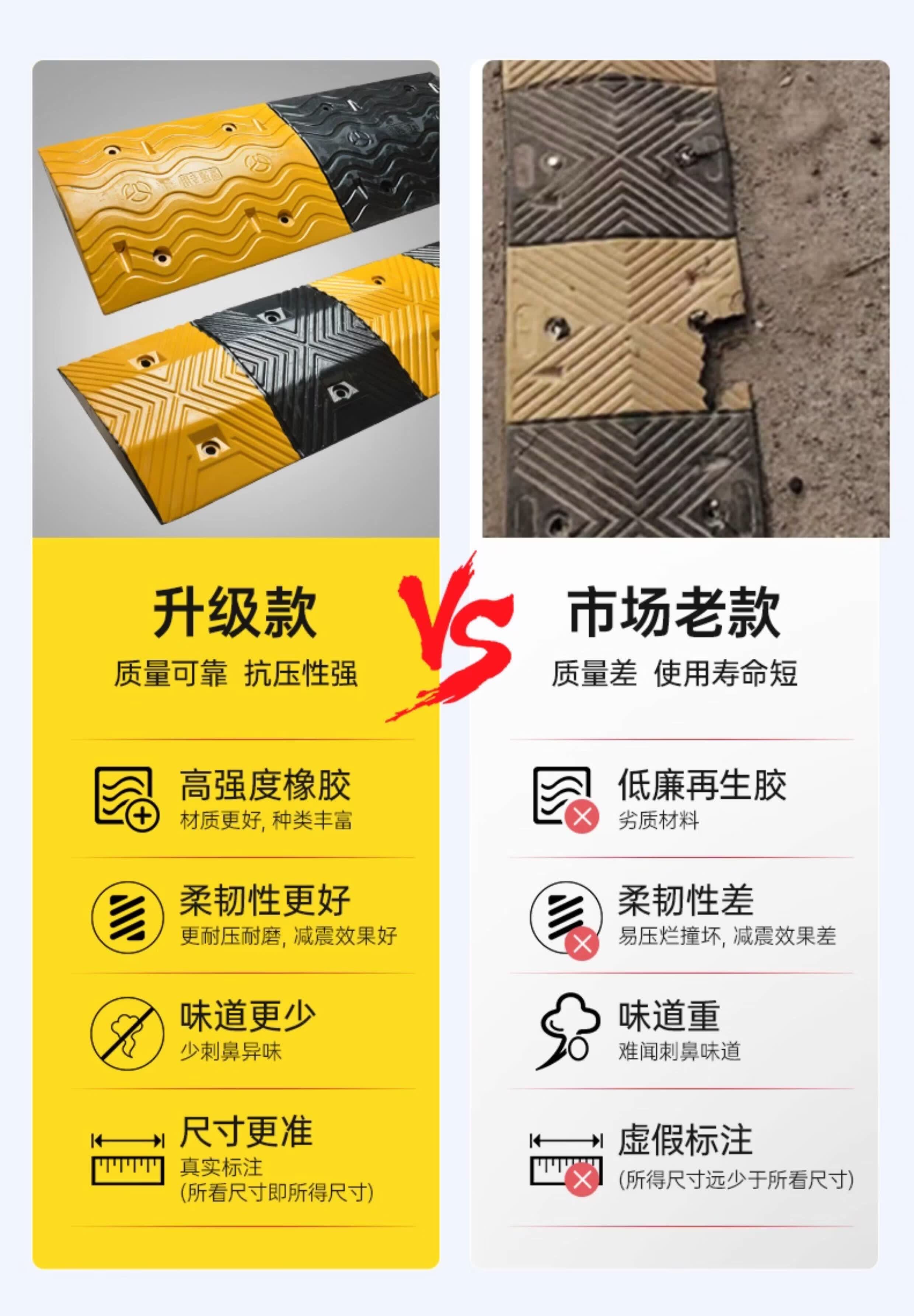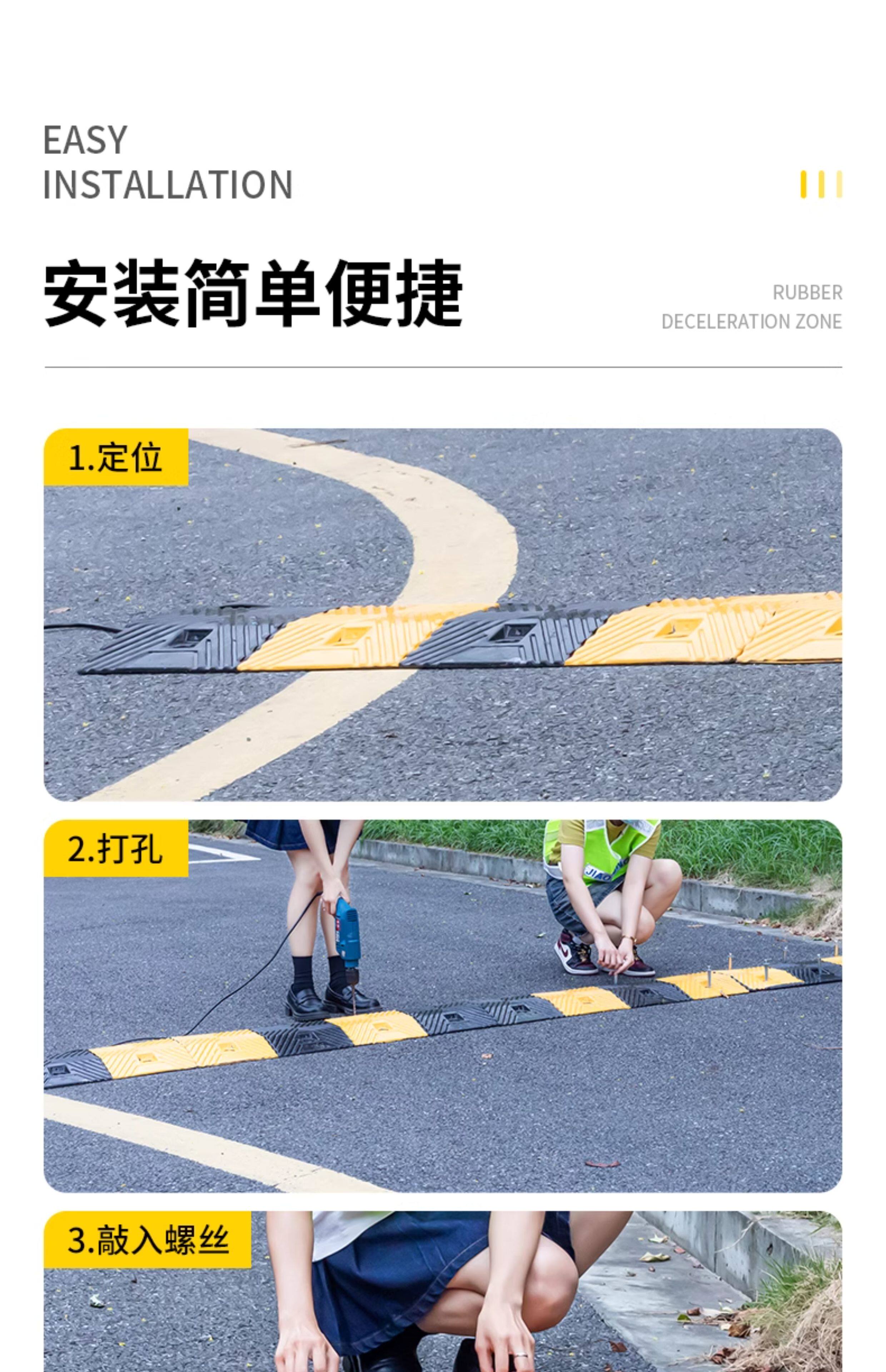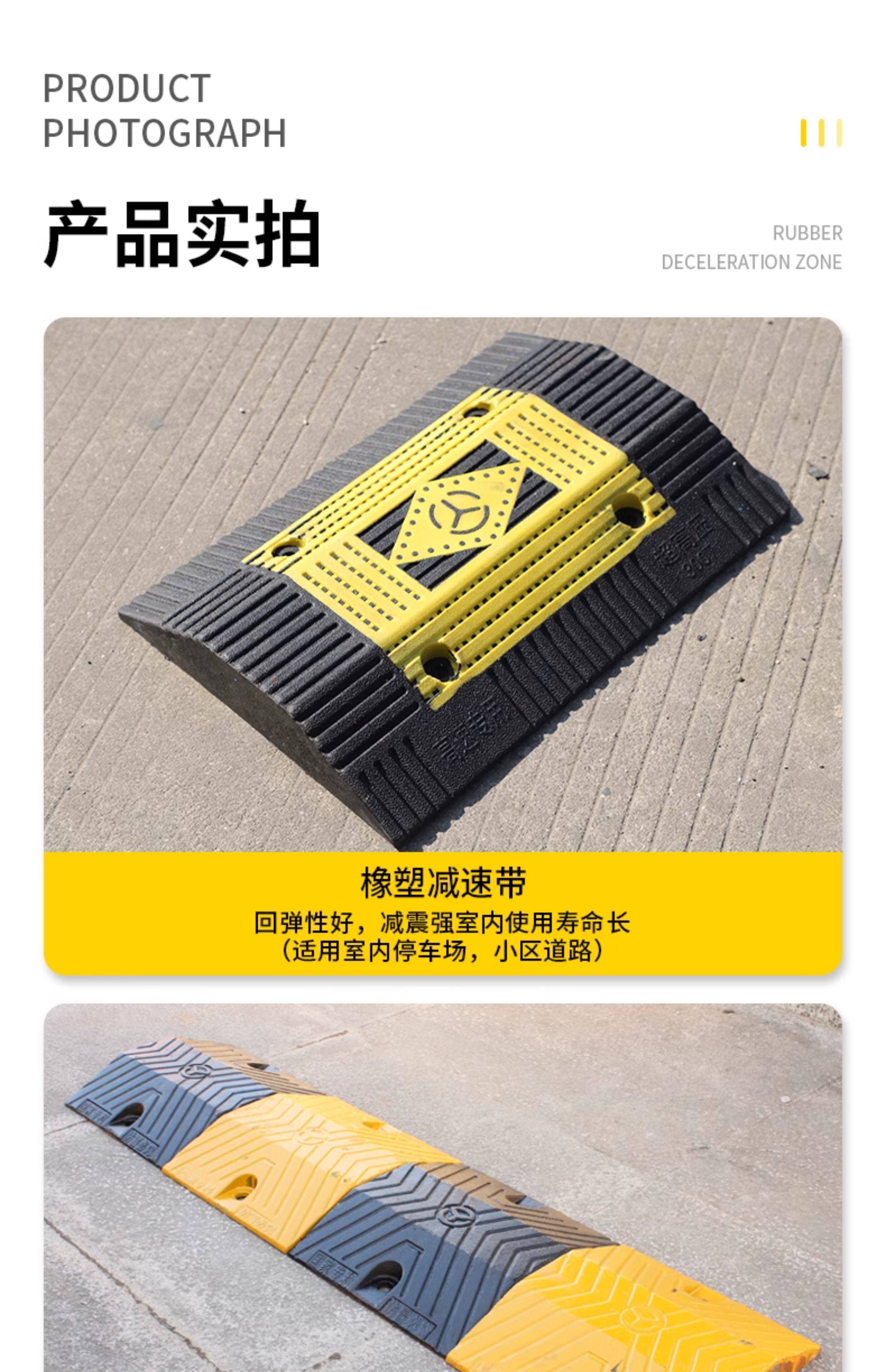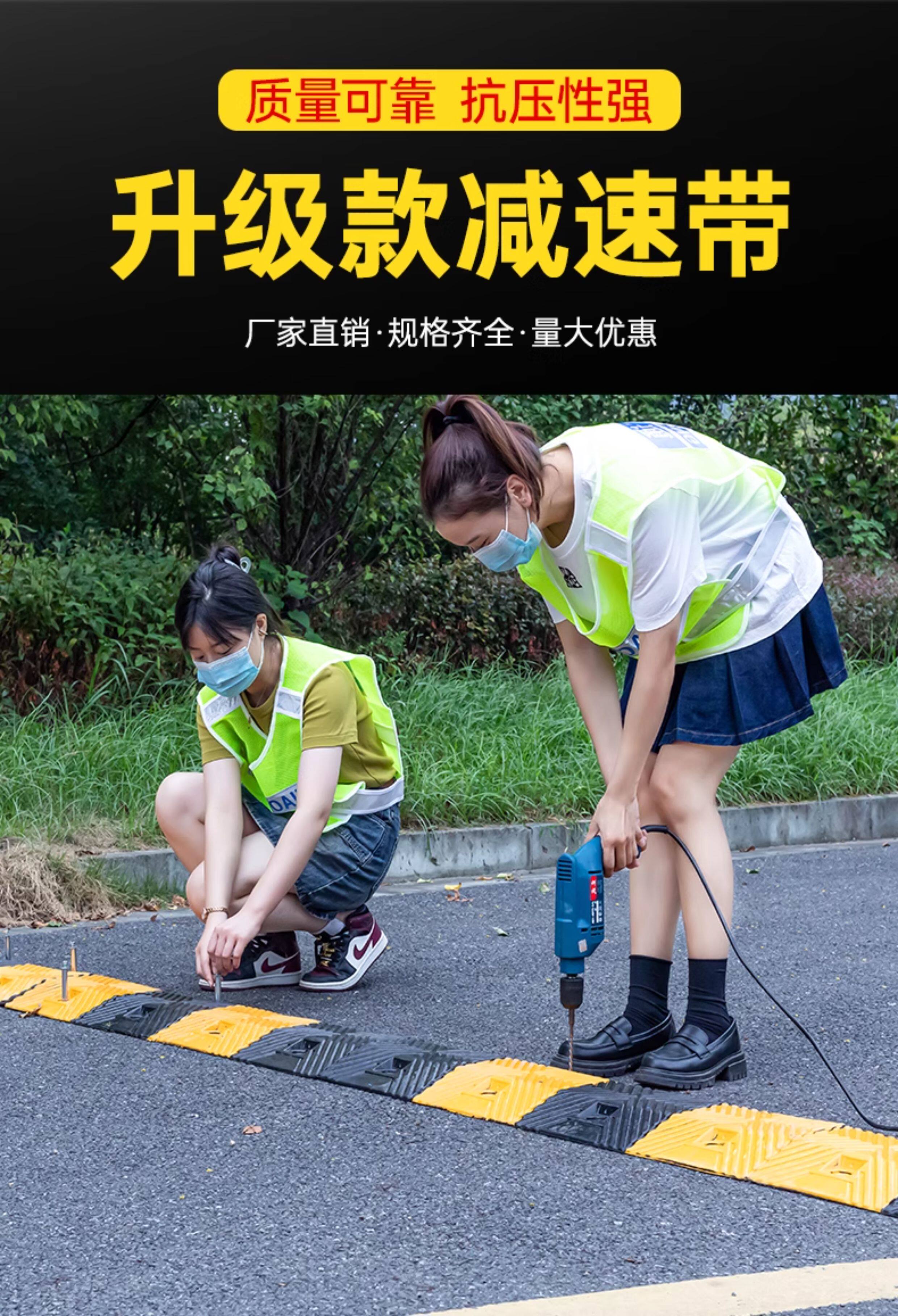 路喜加厚橡胶减速带橡塑缓冲带公路道路减速板汽车限速垄地下车库加油站地面路障 橡胶人字形100*30*3CM【小区入口首选】