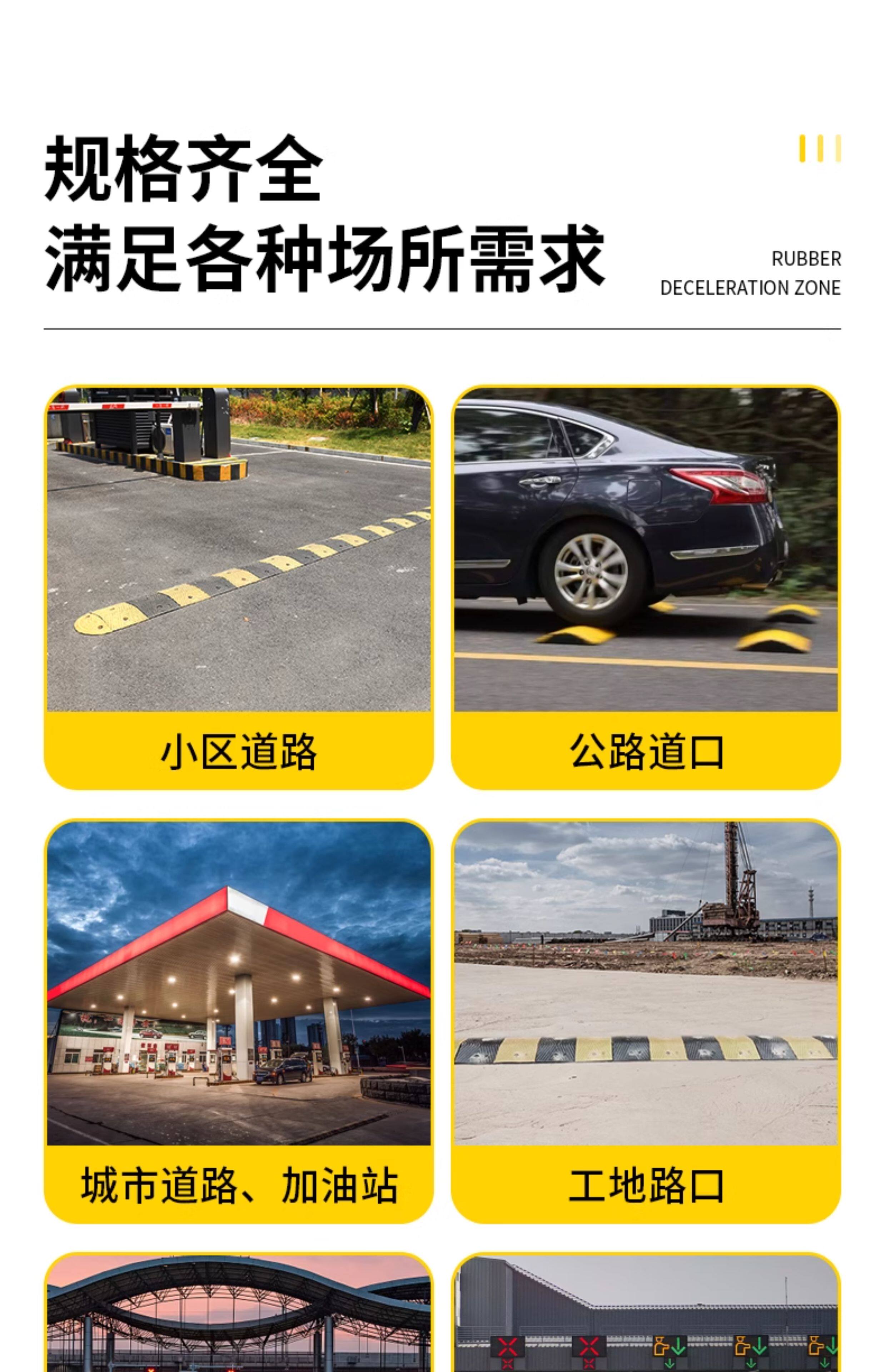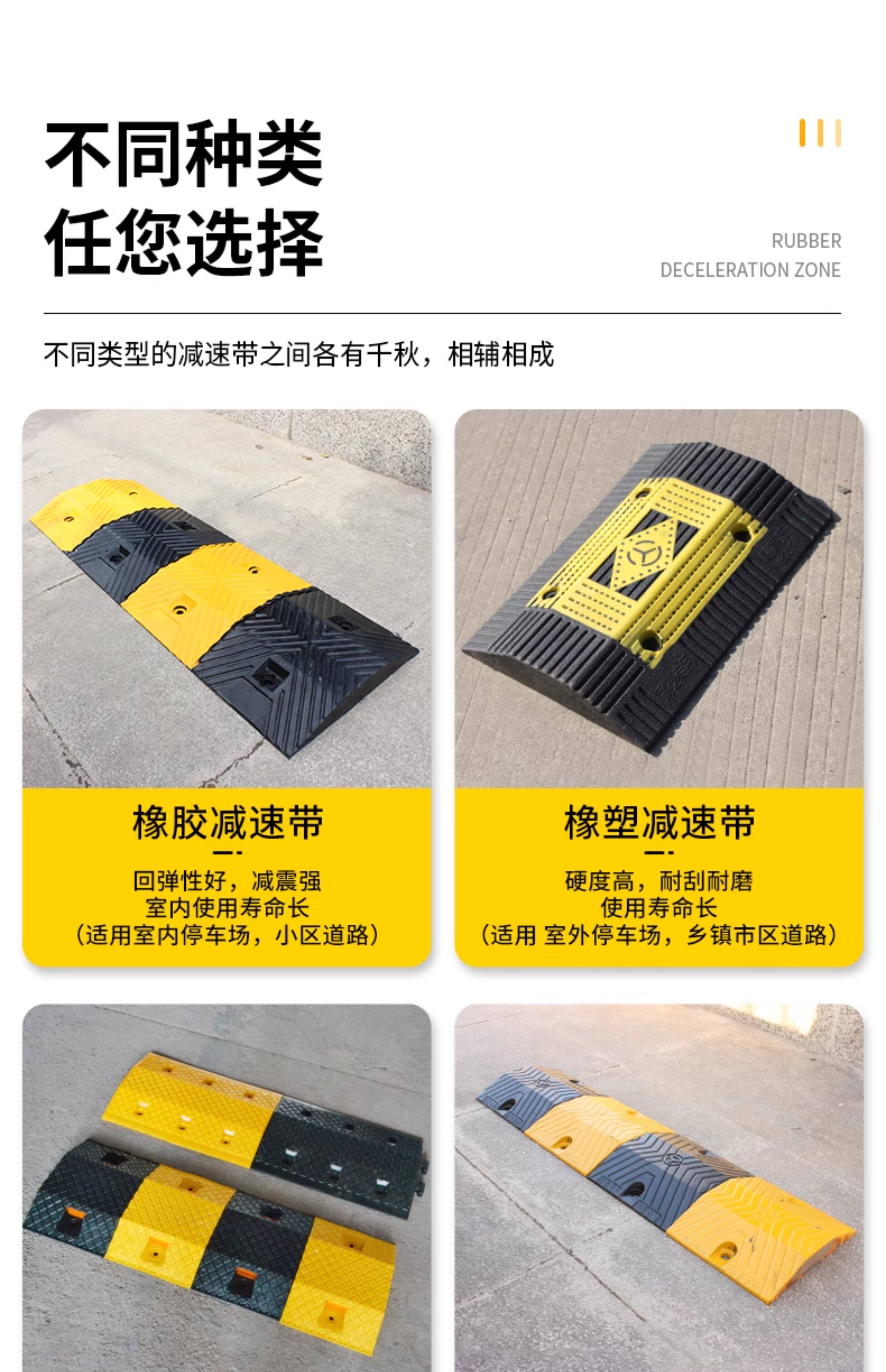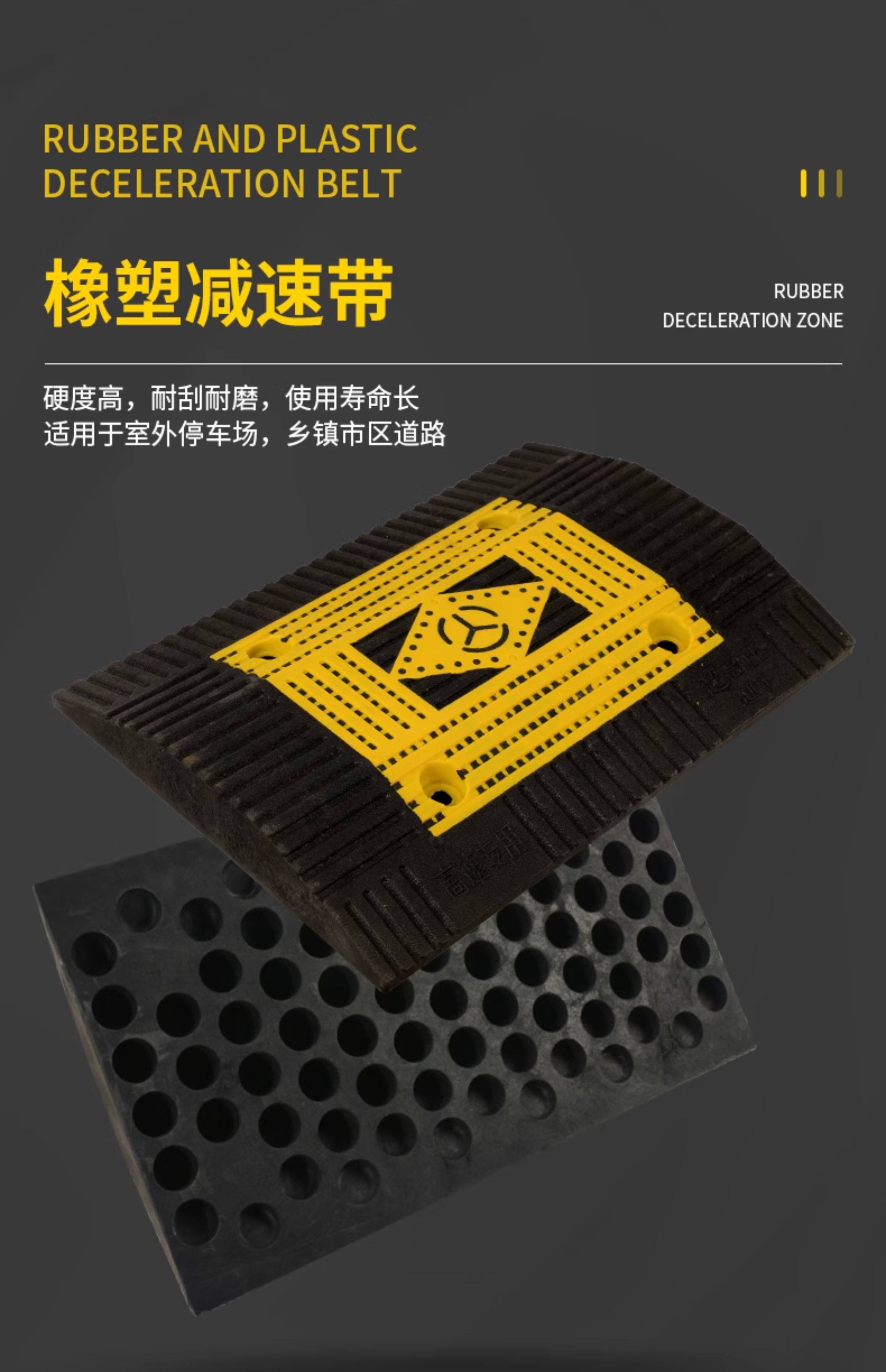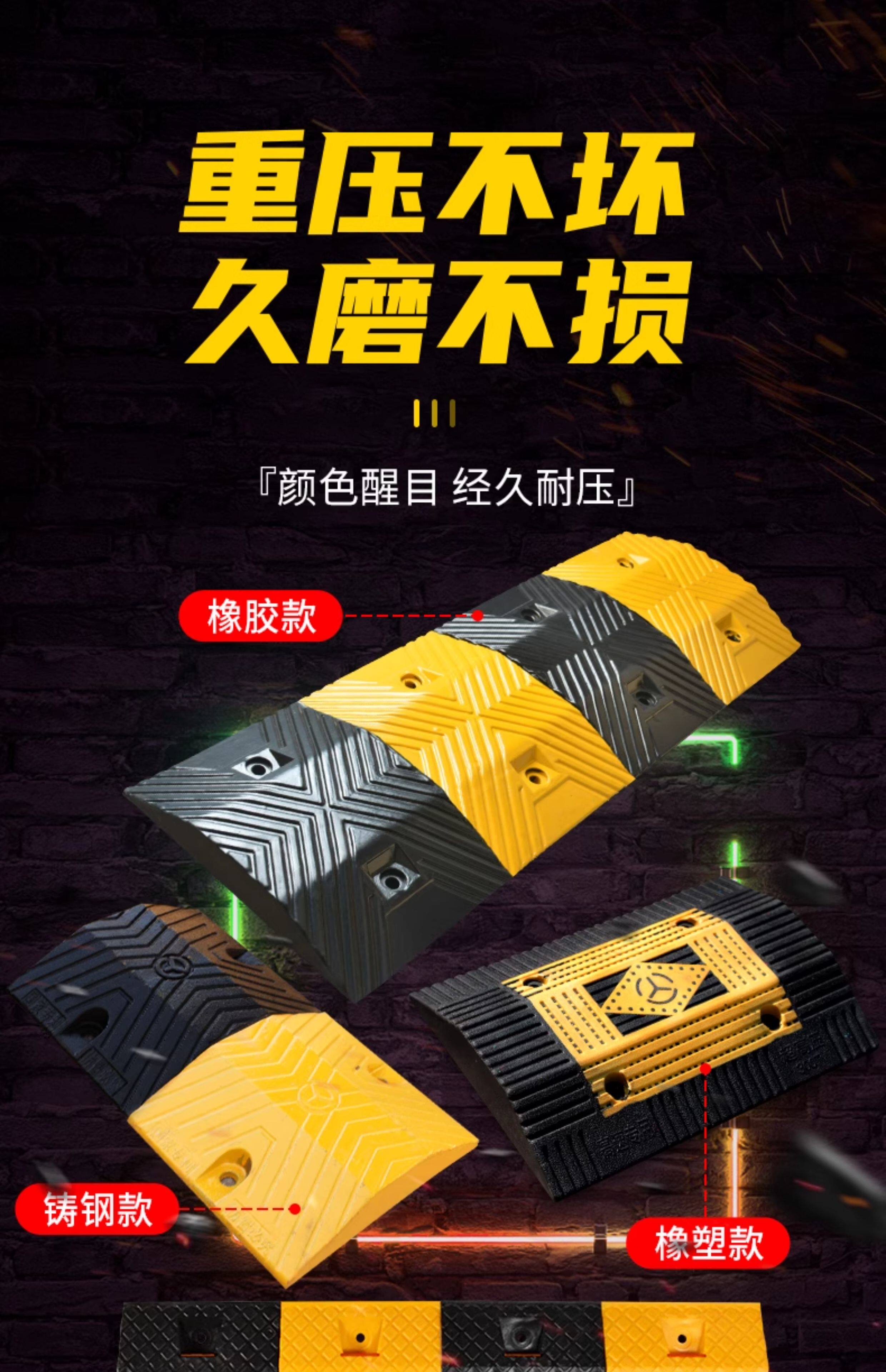 路喜加厚橡胶减速带橡塑缓冲带公路道路减速板汽车限速垄地下车库加油站地面路障 橡胶人字形100*30*3CM【小区入口首选】