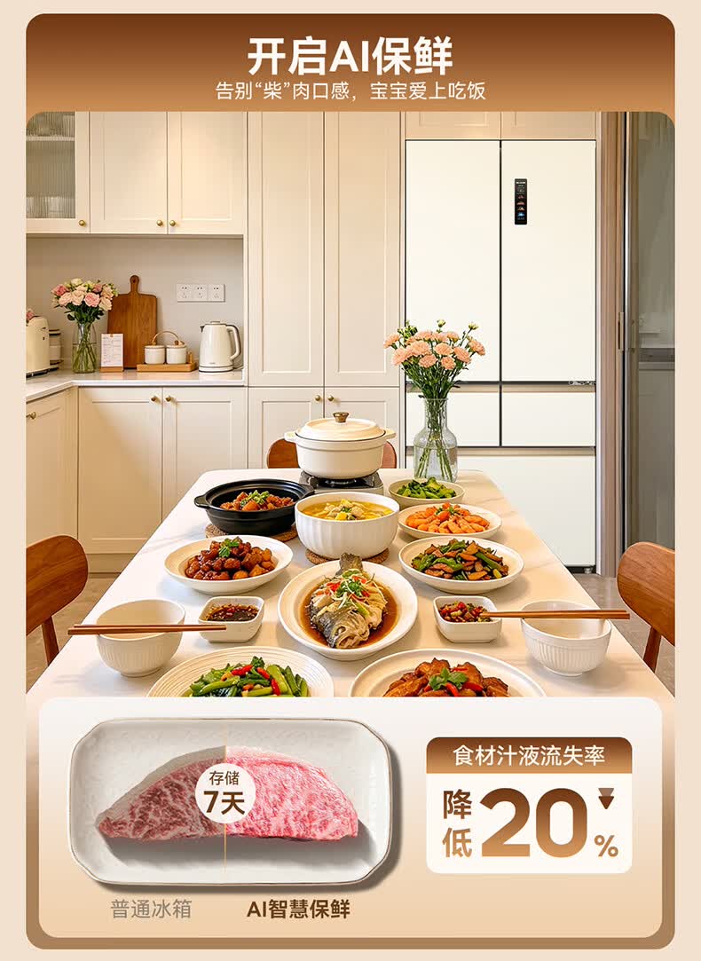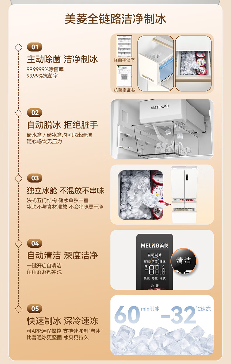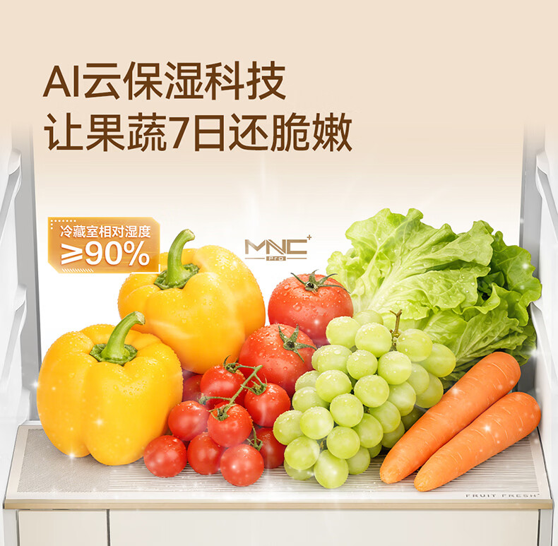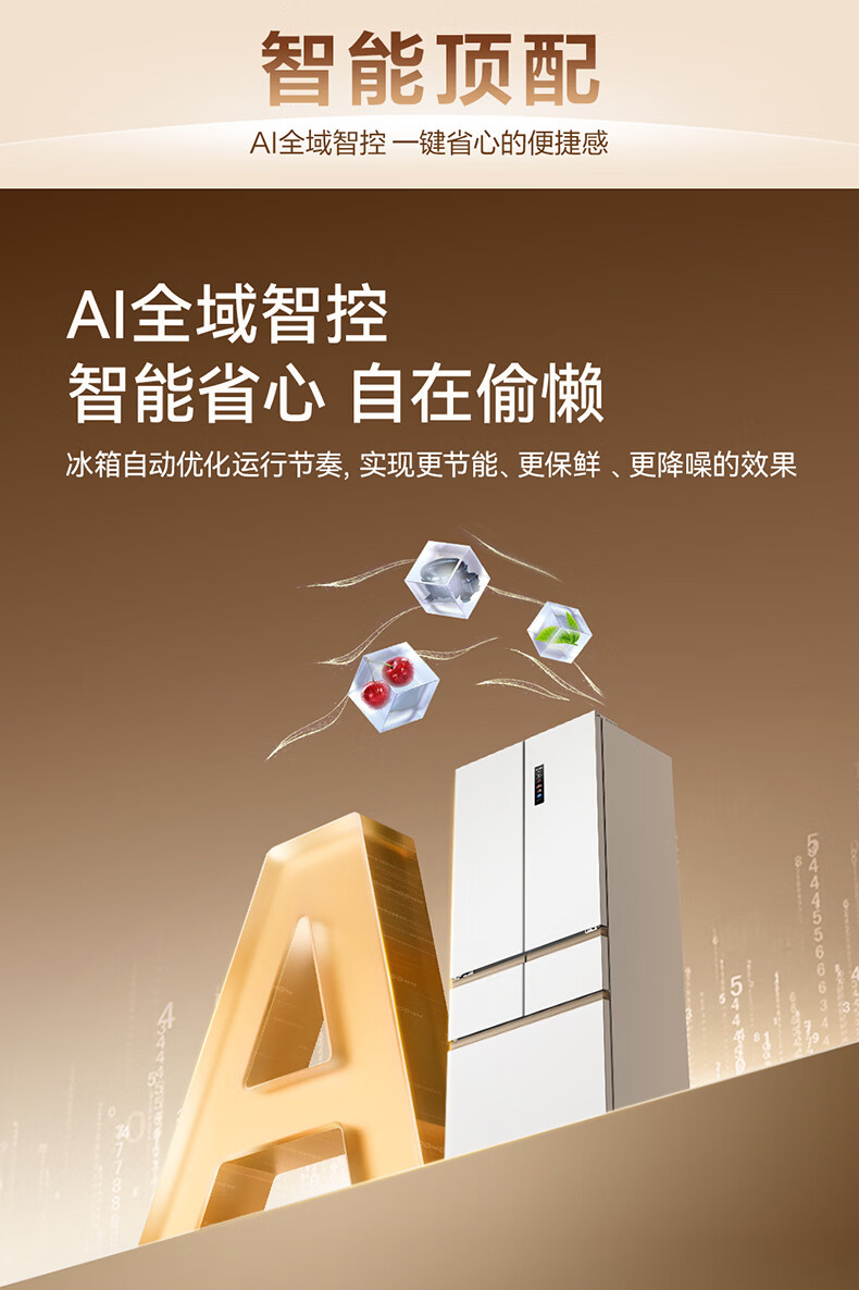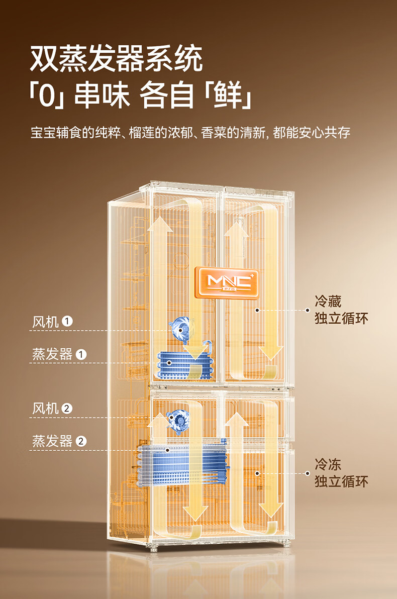 美菱小确杏520L法式多门冰箱双系统主动除菌自动制冰零平嵌入式一级能效风冷BCD-520WFPU9CIZX国家补贴 小确杏·机皇520