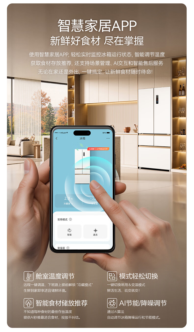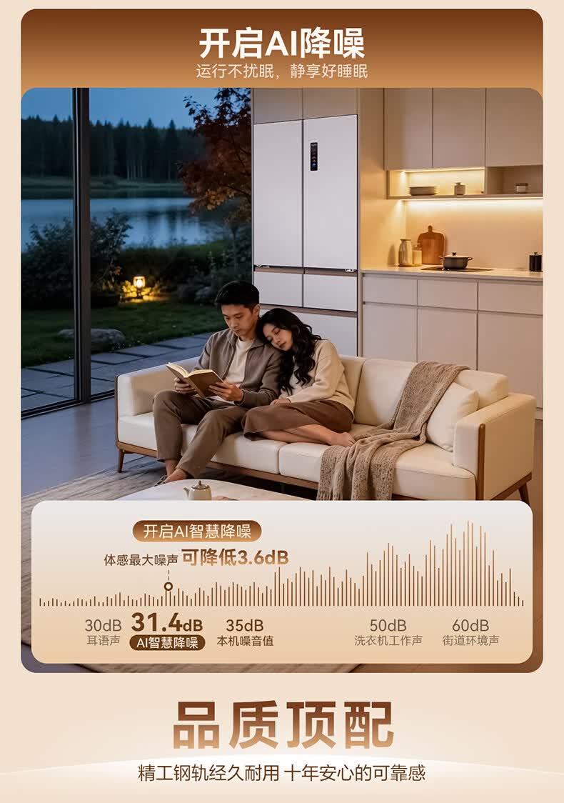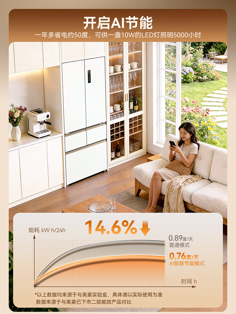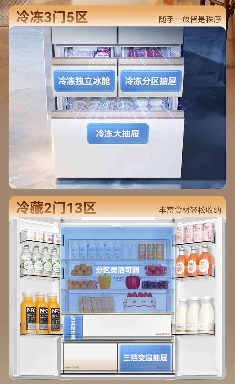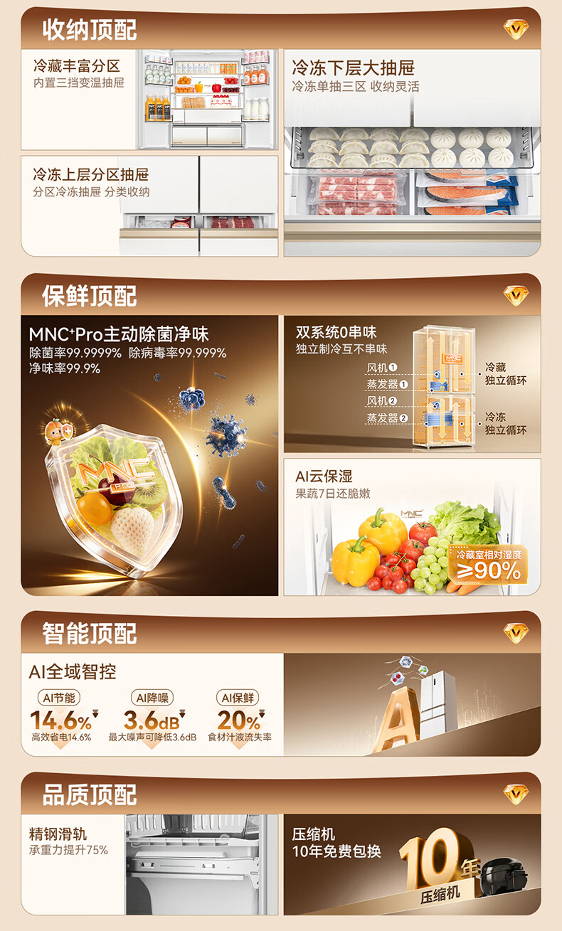 美菱小确杏520L法式多门冰箱双系统主动除菌自动制冰零平嵌入式一级能效风冷BCD-520WFPU9CIZX国家补贴 小确杏·机皇520