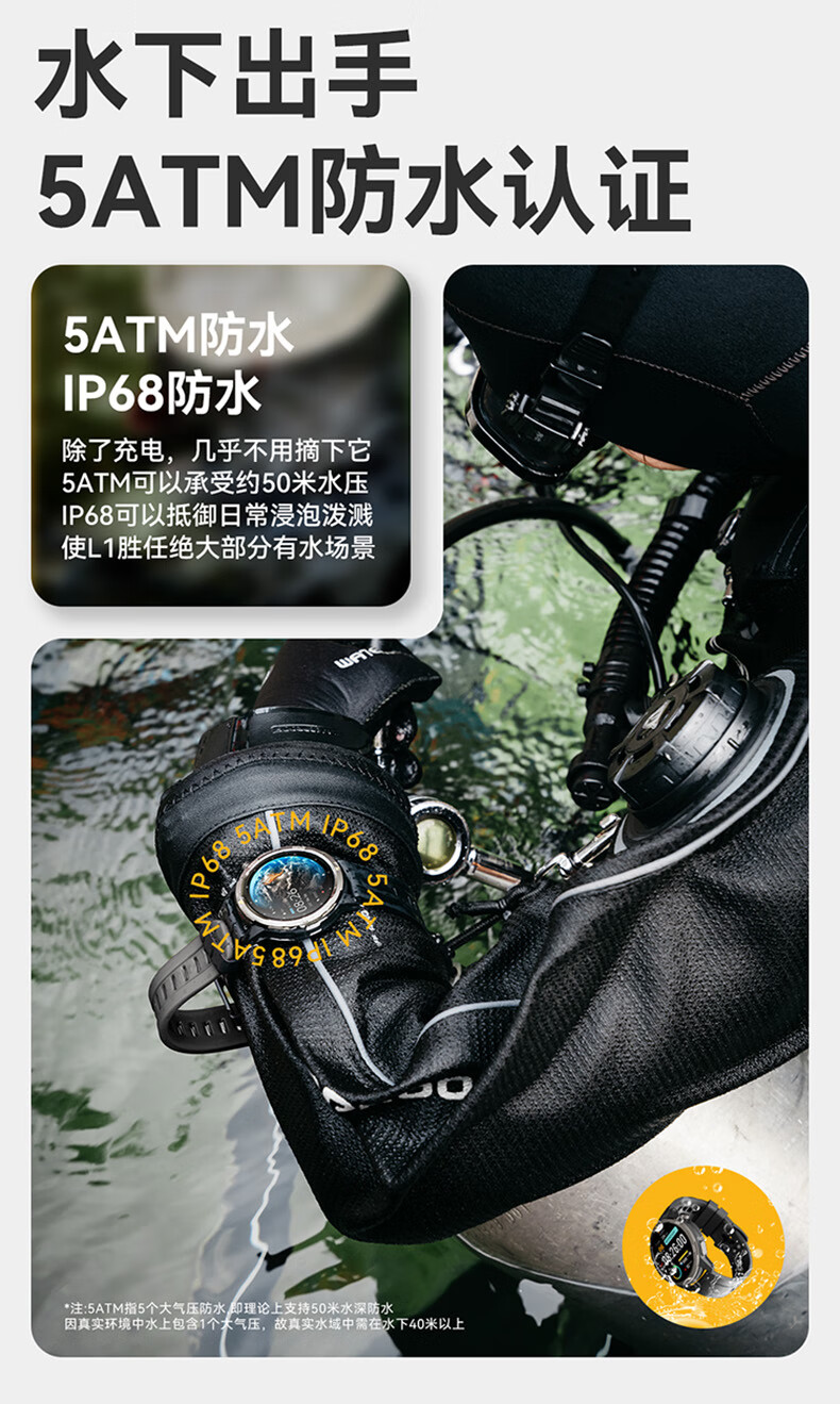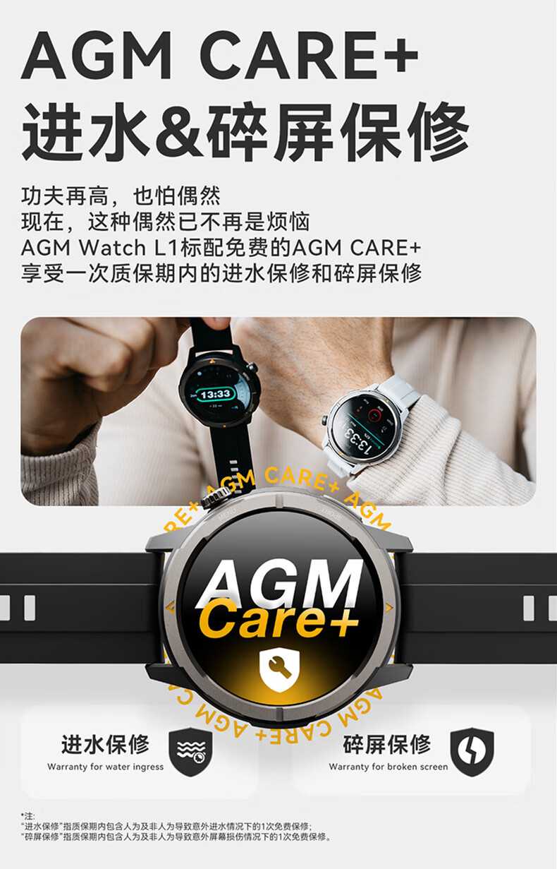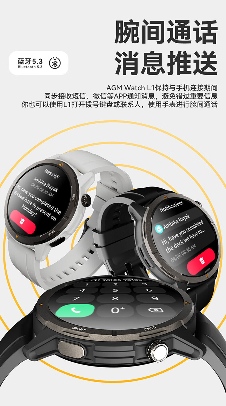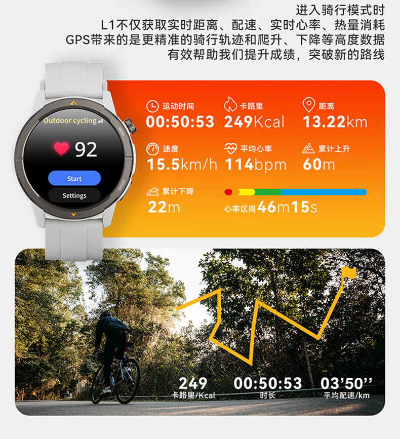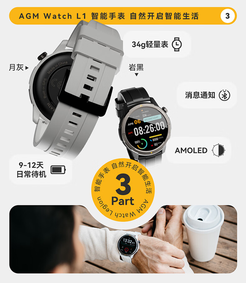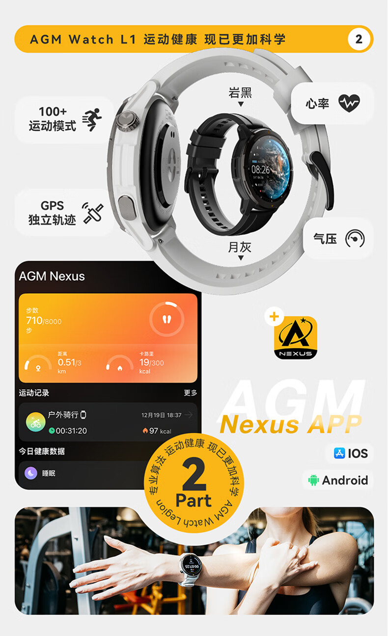 AGM Watch L1 专业运动跑步智能手表马拉松骑行登山GPS配速心率公里数监测50米防水男女通用智能手环 灰色 L1