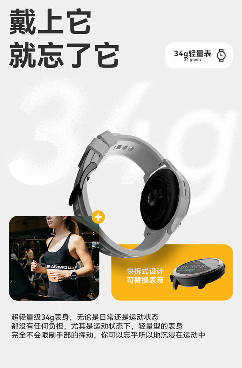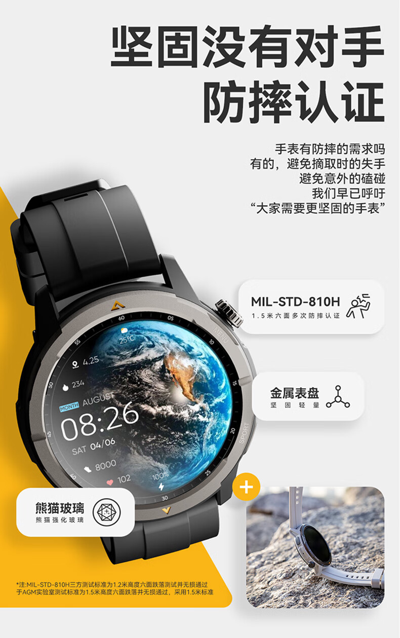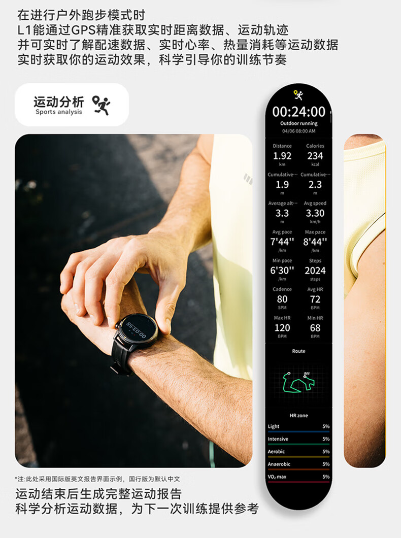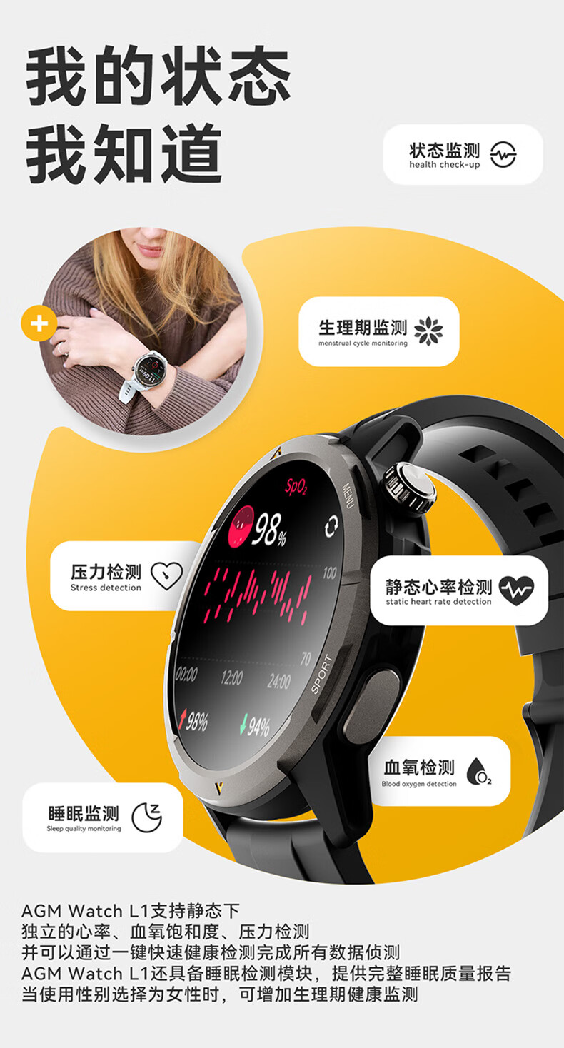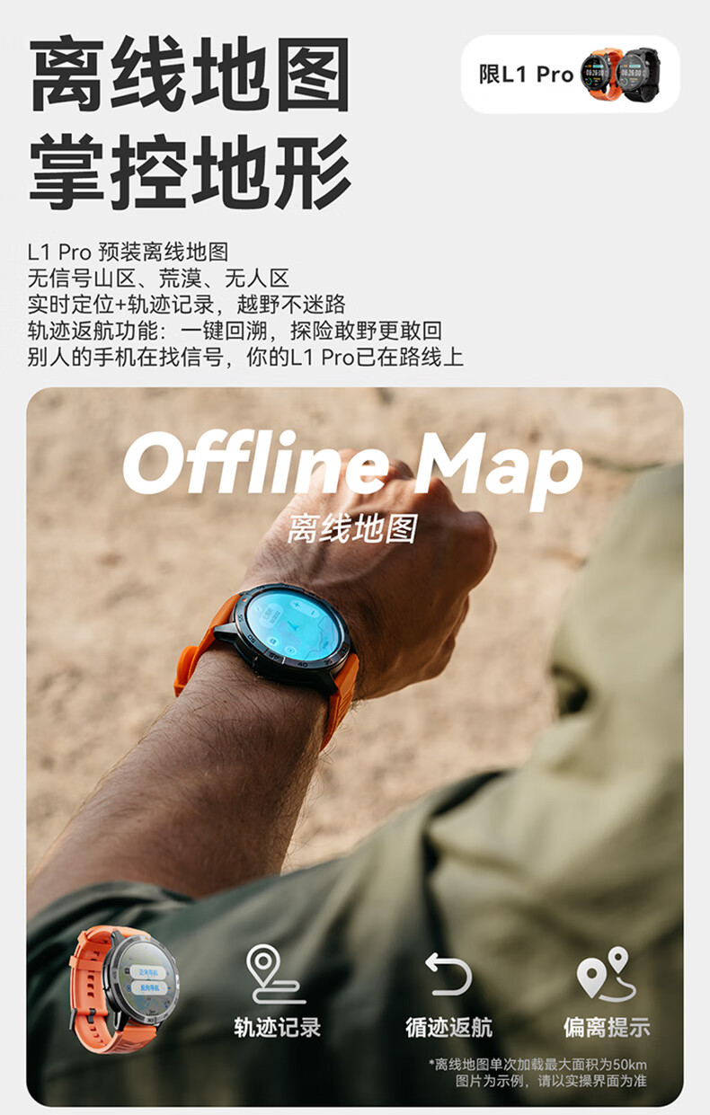 AGM Watch L1 专业运动跑步智能手表马拉松骑行登山GPS配速心率公里数监测50米防水男女通用智能手环 灰色 L1