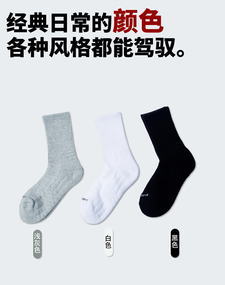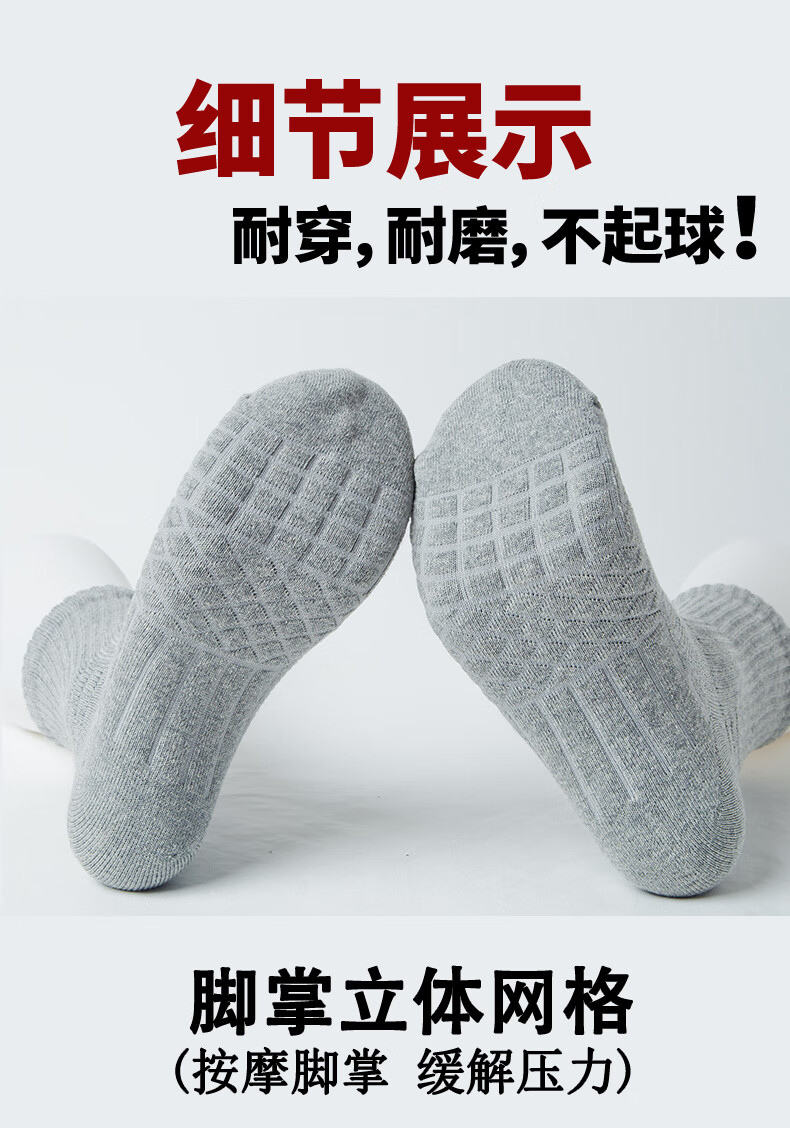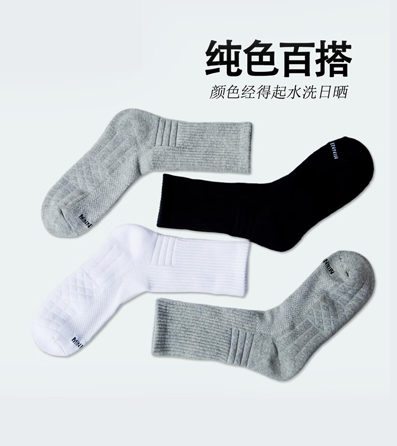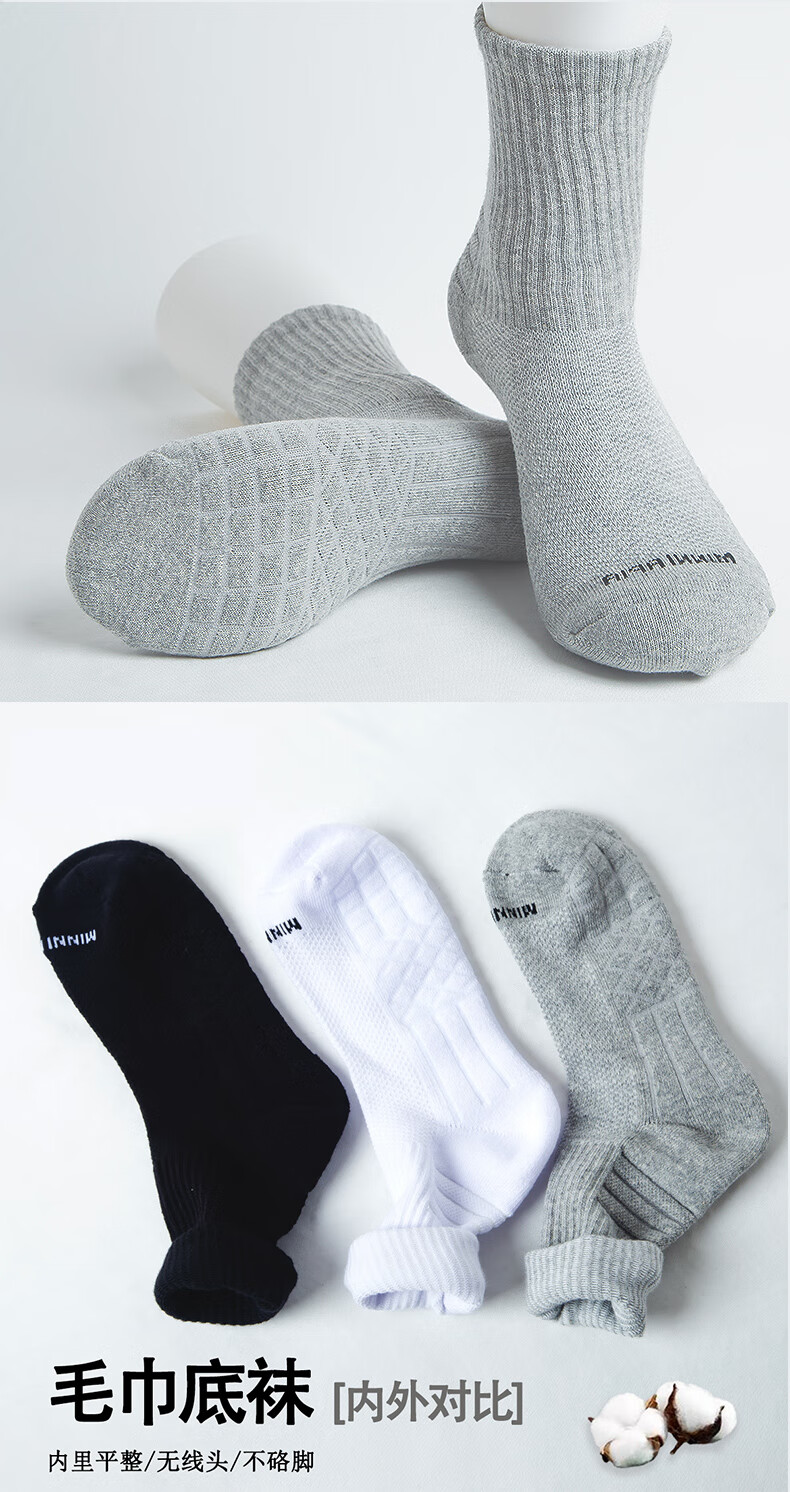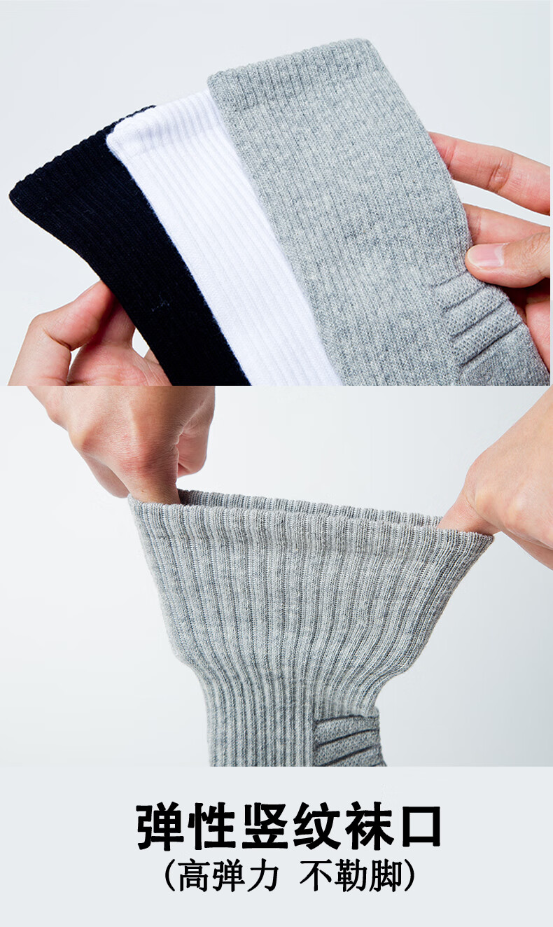棉拍男士袜子运动袜防臭袜棉袜透气防臭吸汗长筒篮球跑步中筒袜长筒袜 6双装【3白色+3灰色】