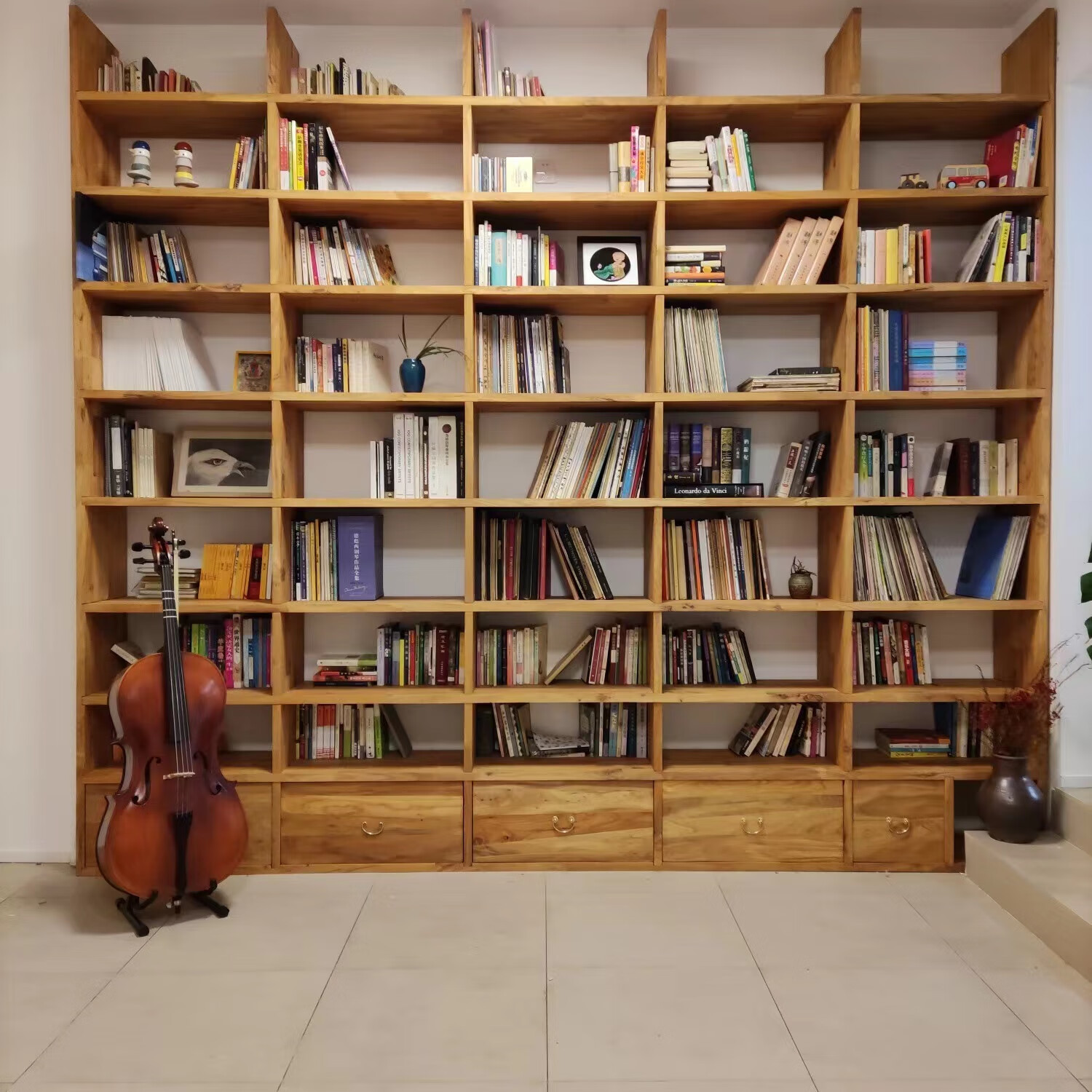 定制老榆木书架满墙大书架定做实木书柜格子架整墙落地多层置物架 3cm厚老榆木板每平定制