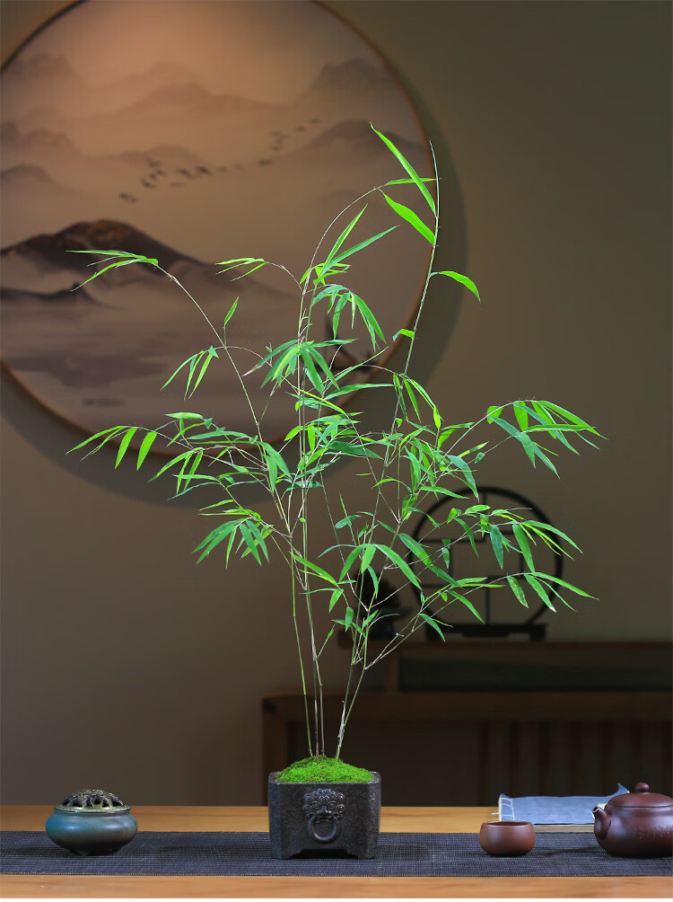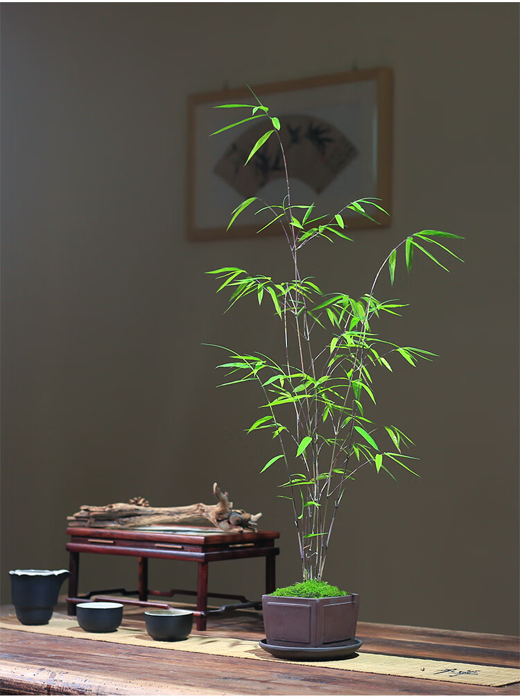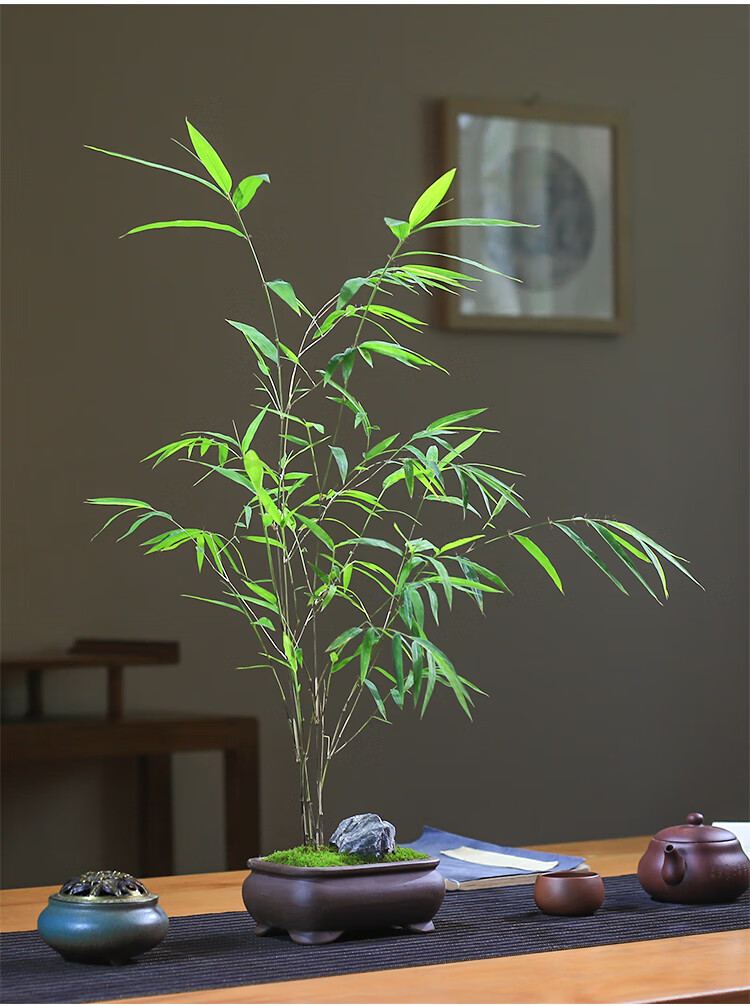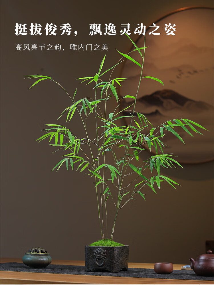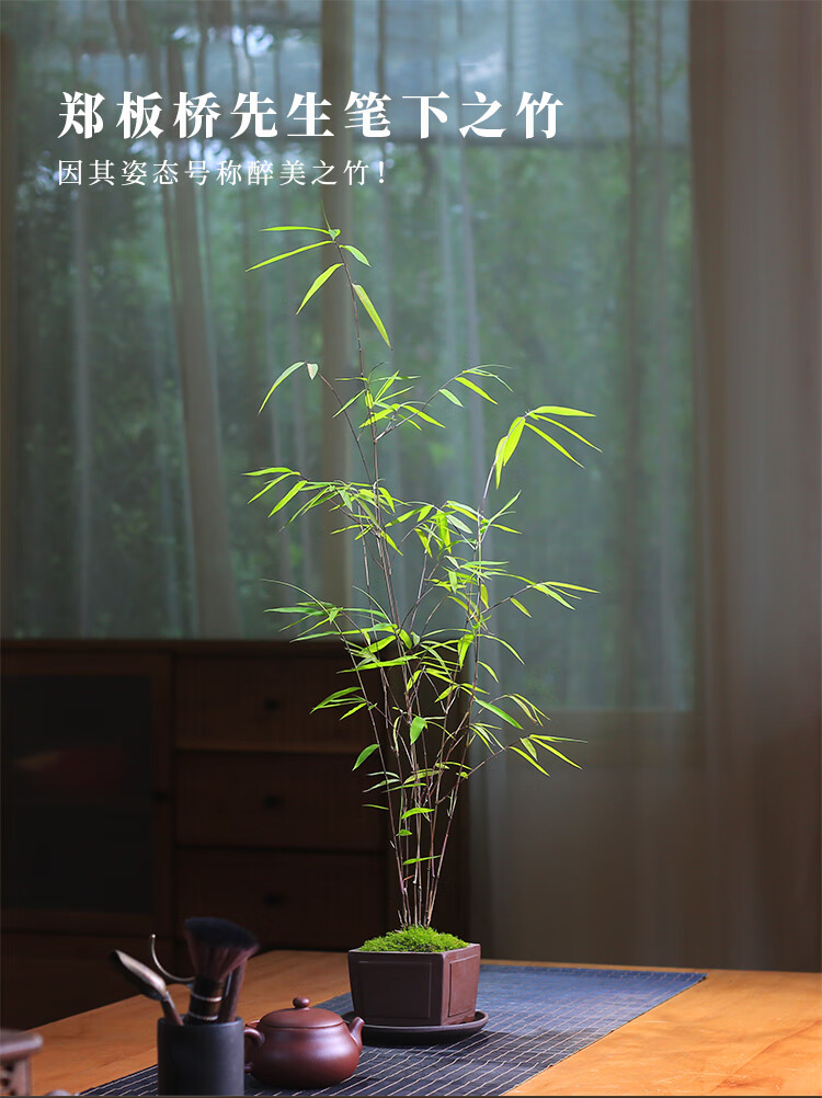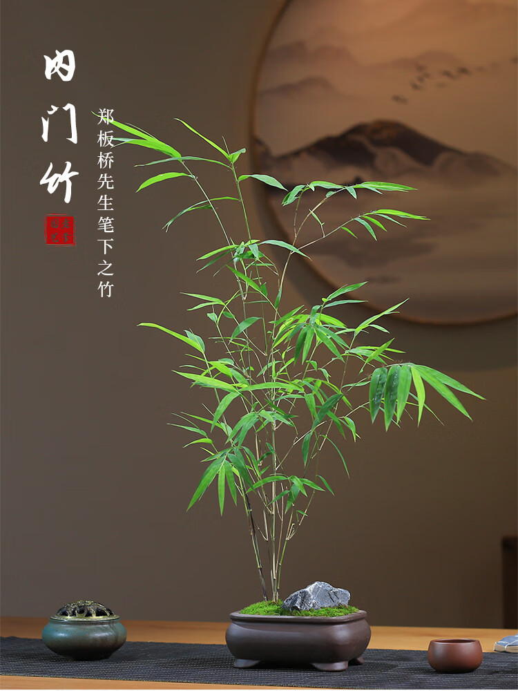 精品内门竹盆栽名贵门内竹室内庭院绿植四季常青好养易活竹子盆景 紫砂四方盆+内门竹+接水盘