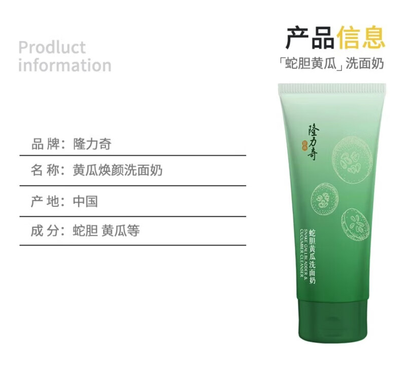 隆力奇黄瓜焕颜洗面奶男女深层清洁毛孔 100ml