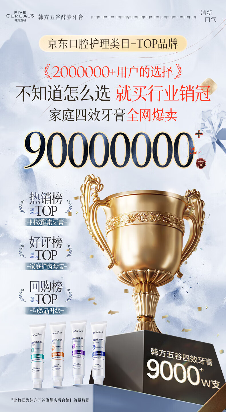 韩方五谷酵素美白牙膏牙亮口臭清新口气去烟渍抑菌结石去渍黄牙垢金榜第一