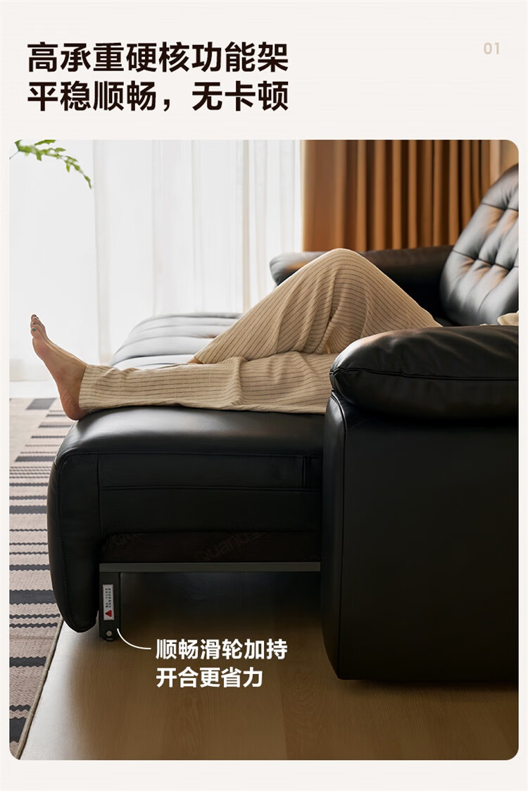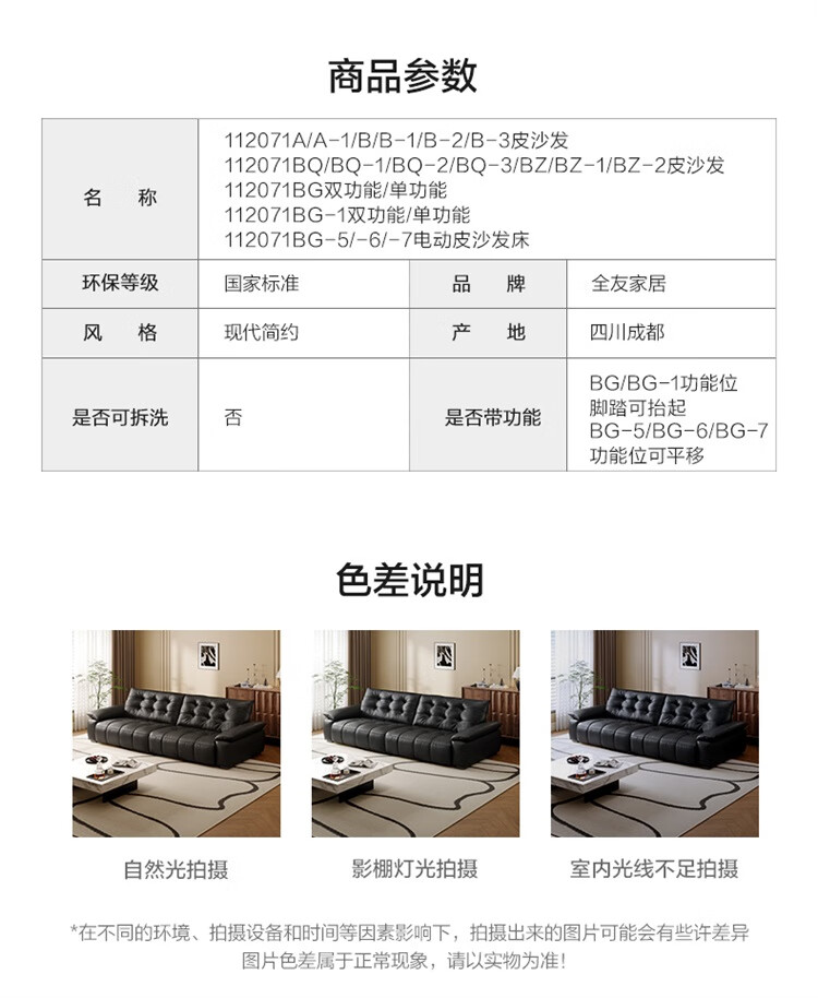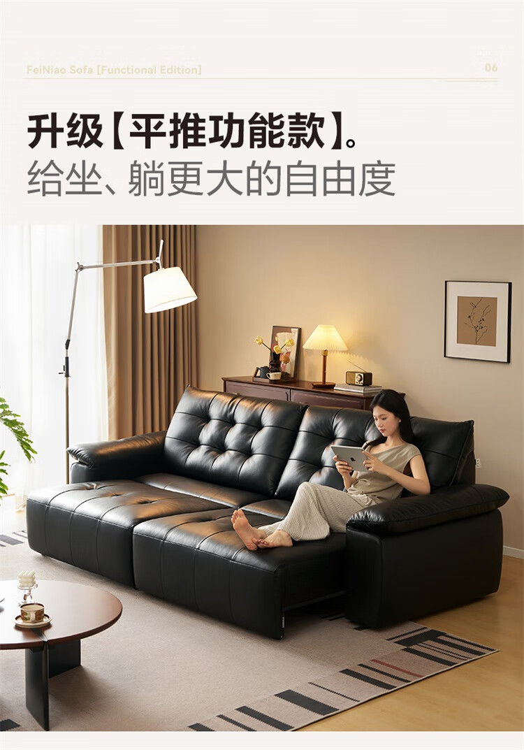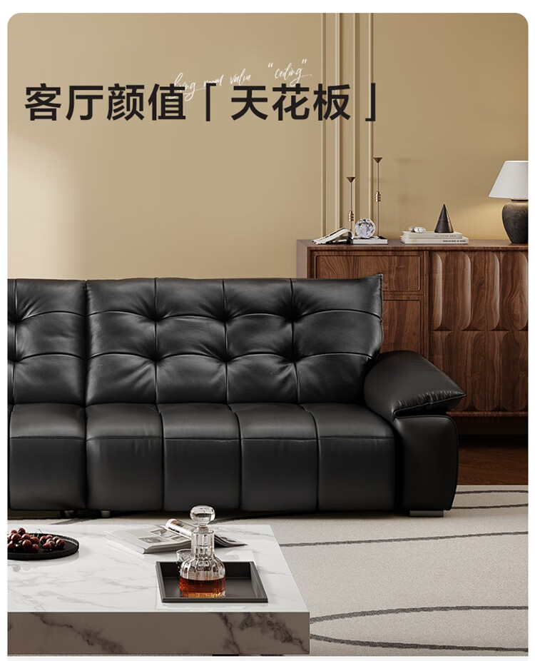 全友家居复古风高端真皮沙发客厅家用大黑牛皮艺中小户型直排飞鸟沙发