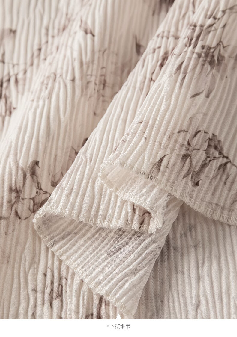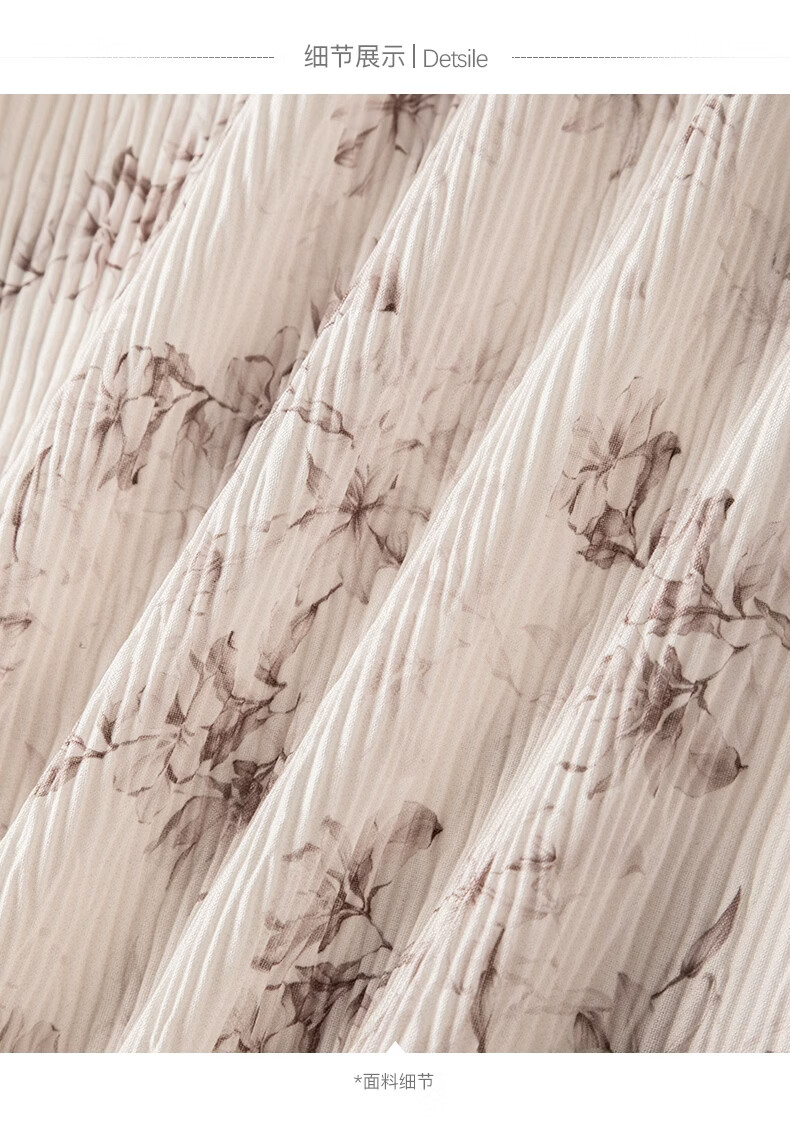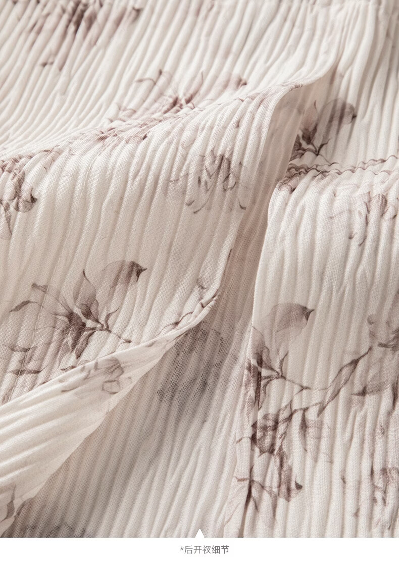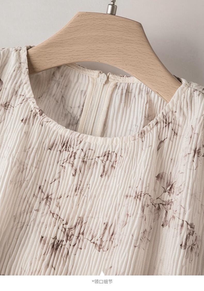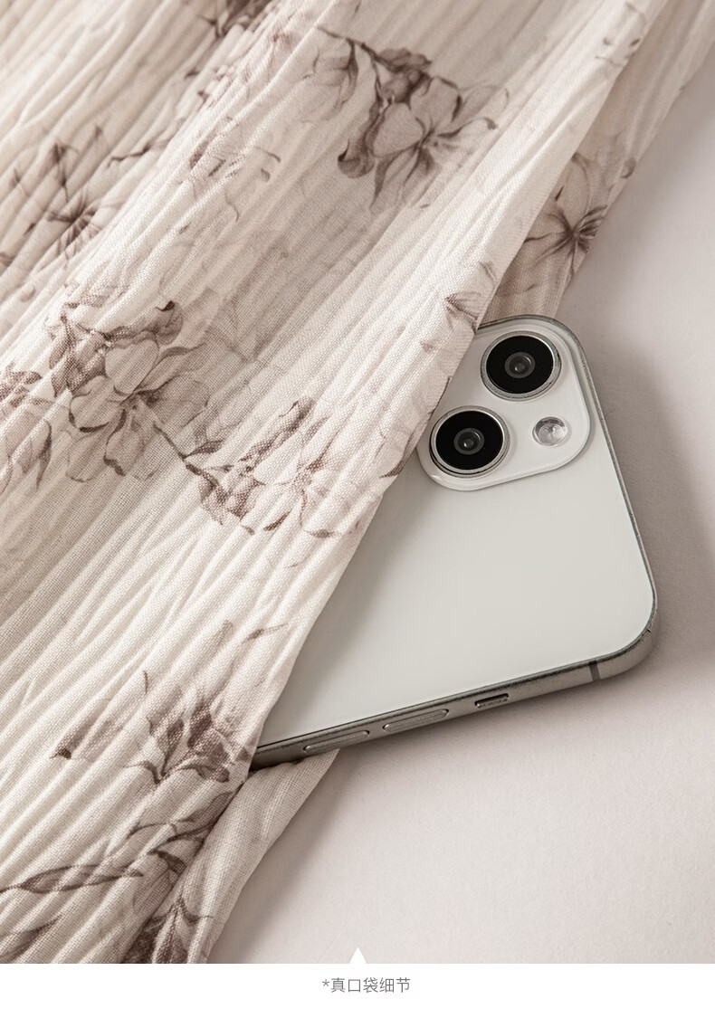 晚白【新品】2026年春款时尚印花裙子轻薄透气褶皱宽松无袖连衣裙 杏色 XL