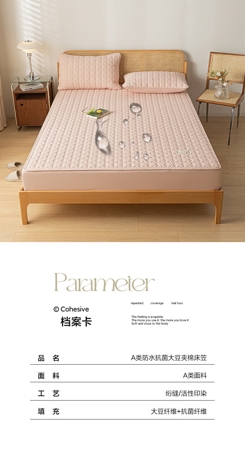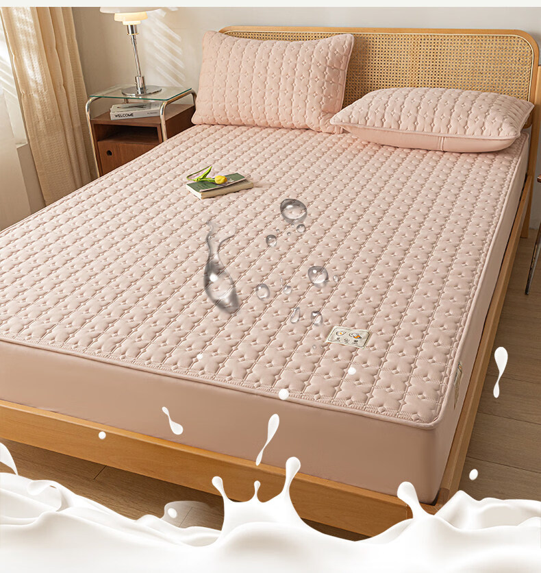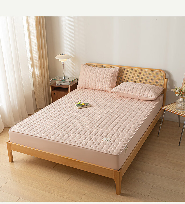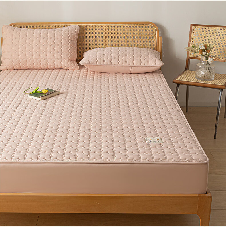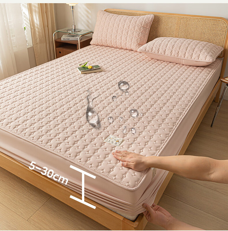 阿尔皮纳袋鼠A类防水夹棉床笠1.8米x2米单件全包床垫保护套床单套罩四季通用 梦幻-豆沙粉【A类面料+防水隔尿+可水洗】 床笠单件-90x190cm【适合5-25cm厚度床垫使用】