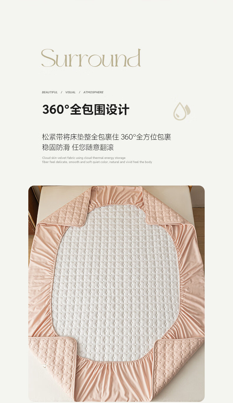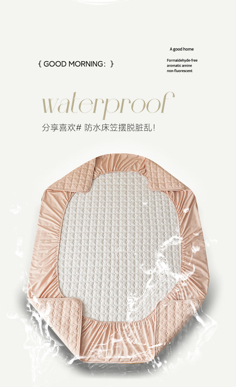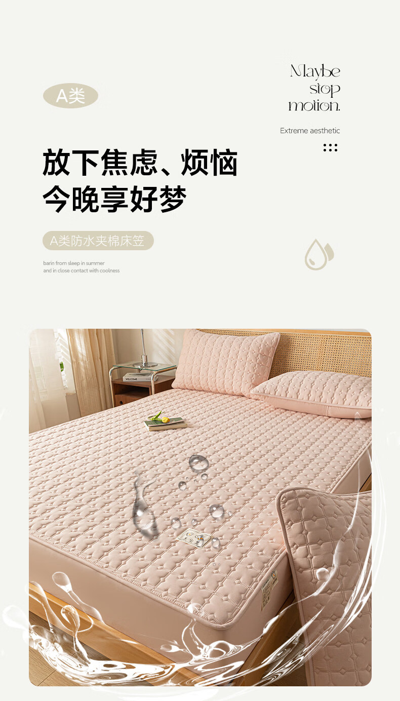 阿尔皮纳袋鼠A类防水夹棉床笠1.8米x2米单件全包床垫保护套床单套罩四季通用 梦幻-豆沙粉【A类面料+防水隔尿+可水洗】 床笠单件-90x190cm【适合5-25cm厚度床垫使用】
