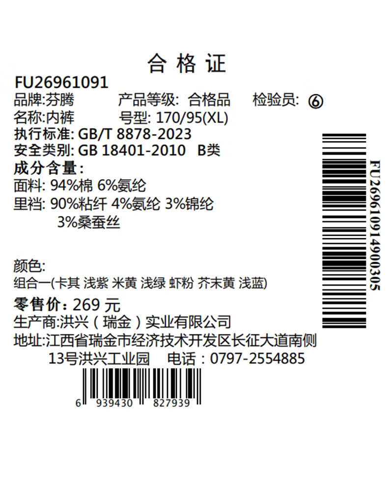 芬腾内裤女7条装10A抑菌[40支]纯色棉质独立包装简约百搭三角裤 组合一 7条 L